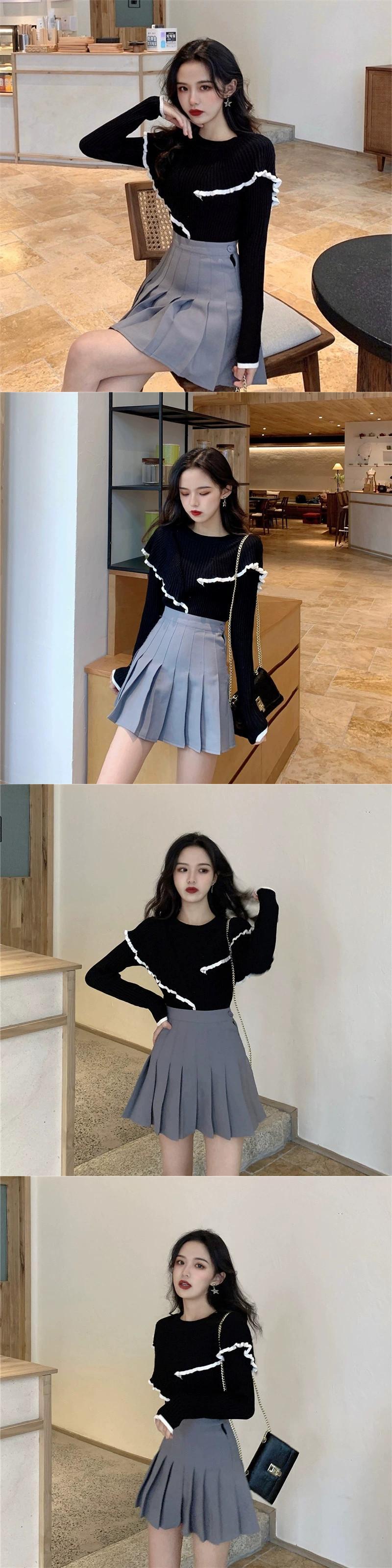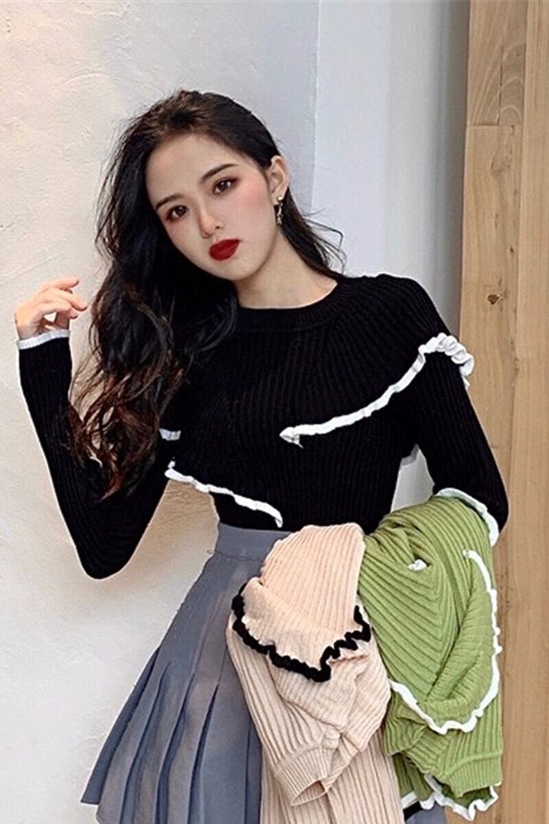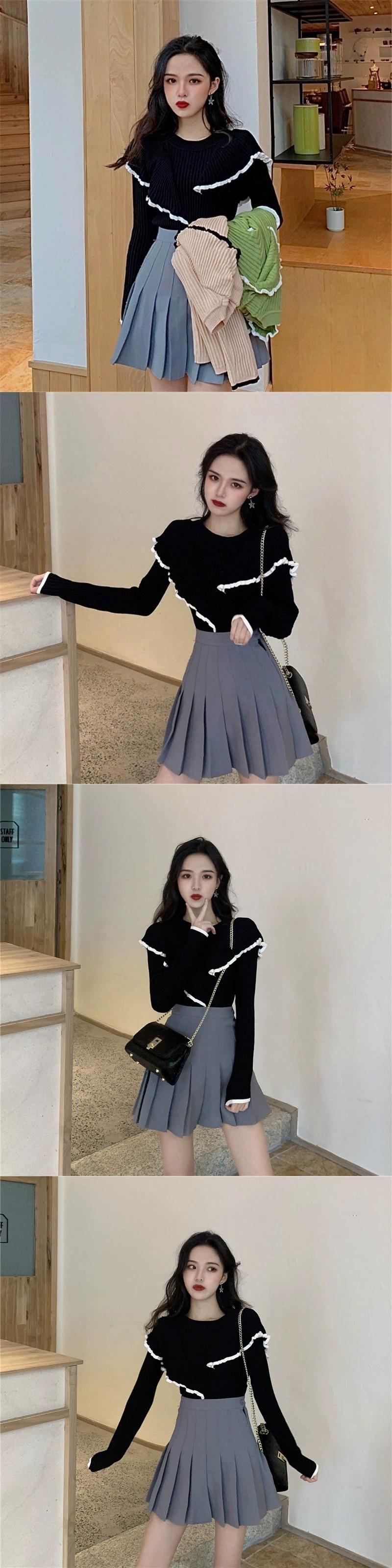 厚みのあるインナーニットボトムセーター、イヤリング付きレディース、秋と冬のハイエンドデザイン、スリム、長袖ブラックセーター ロング オータム 秋物 ウィンター 冬物 指輪 7460091784908230 | framboise21