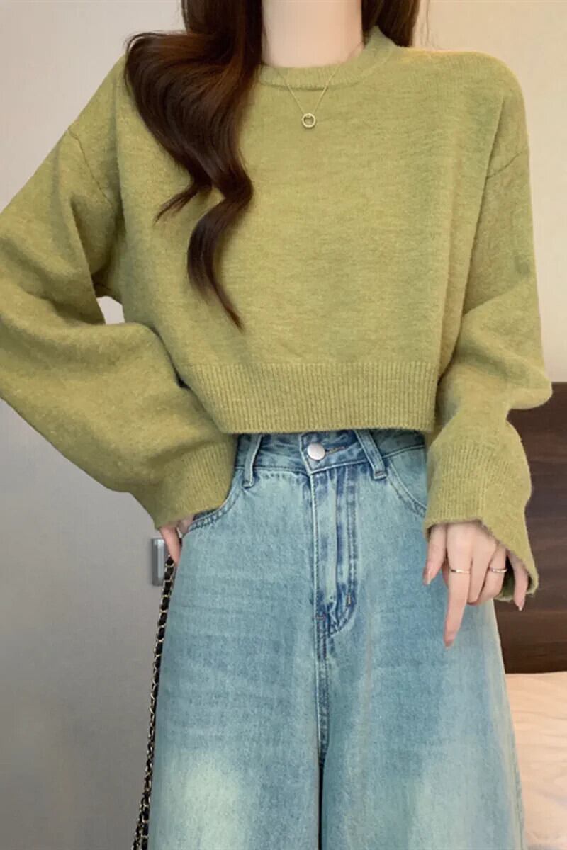 グリーン肥厚ショートセーター女性の秋と冬 2023 新しいルーズアウターウェア eign スタイル多用途プルオーバー長袖セーター ロング オータム 秋物 ウィンター 冬物 7460085438778291 | framboise21