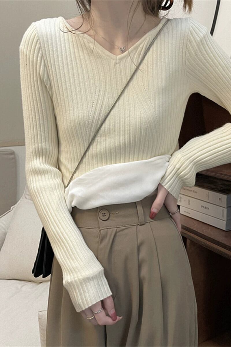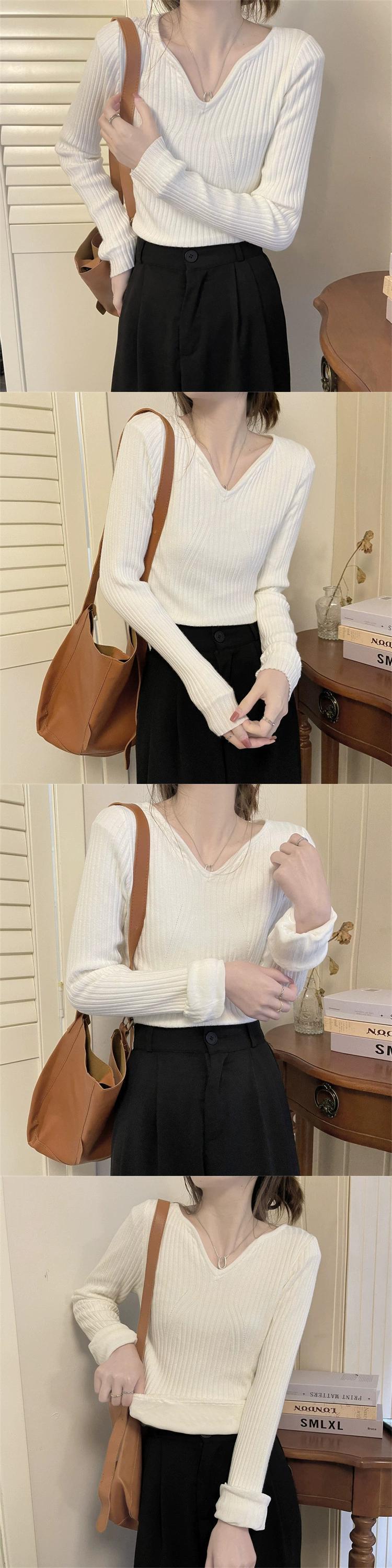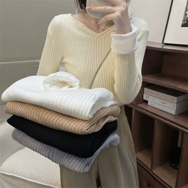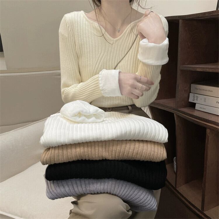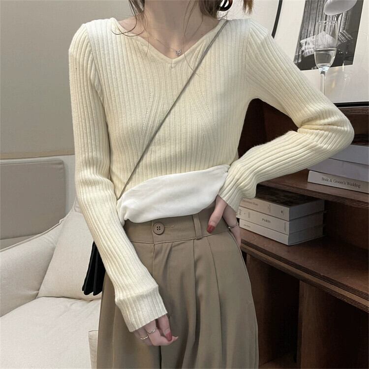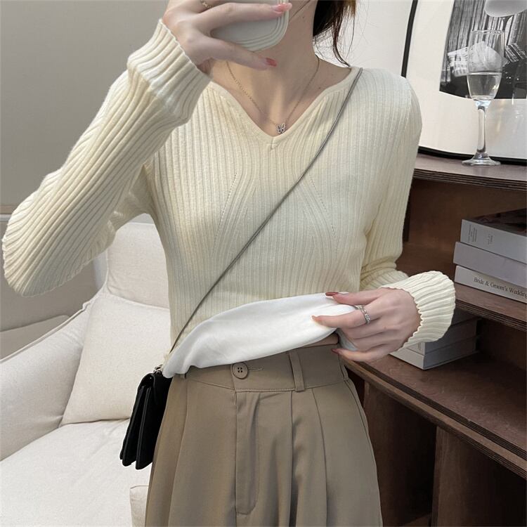 秋と冬の厚いベルベットの底シャツの女性、西洋風のインナーワンピースベルベットセーターのデザイン、スリムなVネックニットトップ オータム 秋物 ウィンター 冬物 7460053784820729 | framboise21