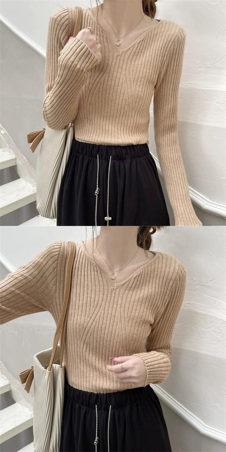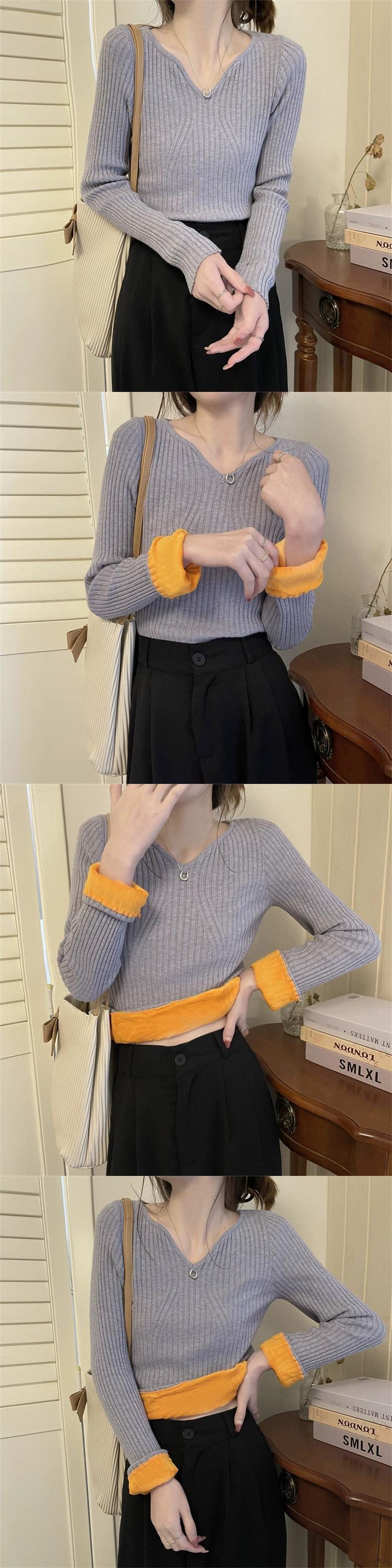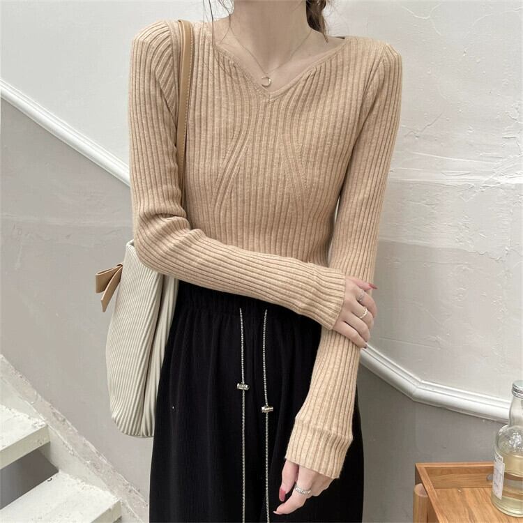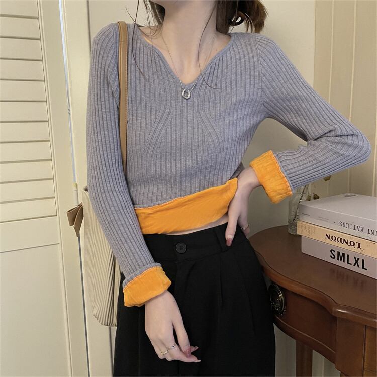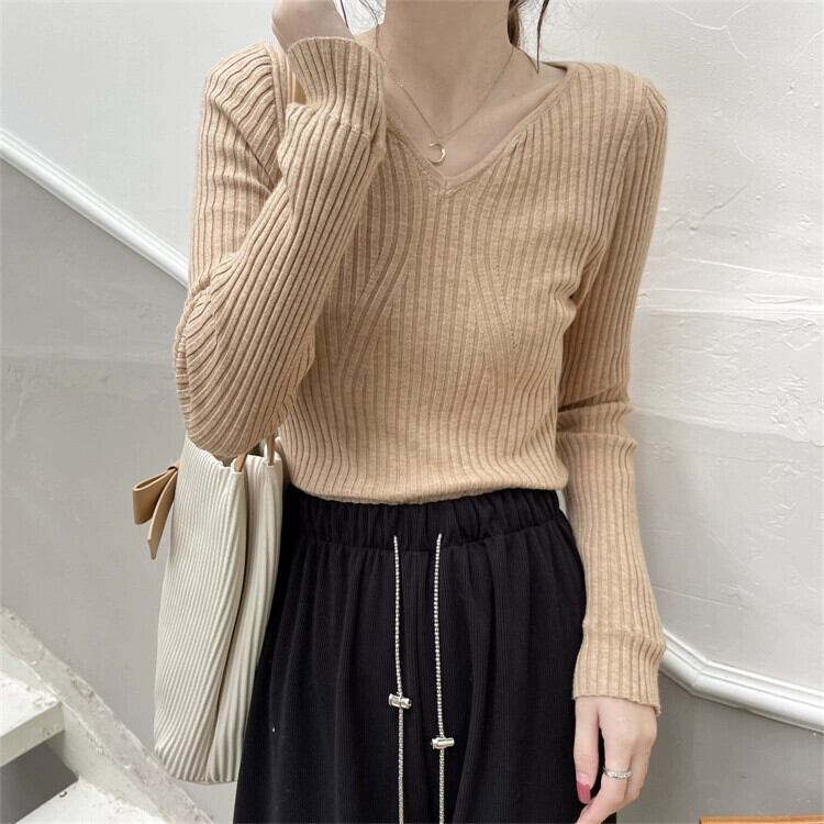 秋と冬の厚いベルベットの底シャツの女性、西洋風のインナーワンピースベルベットセーターのデザイン、スリムなVネックニットトップ オータム 秋物 ウィンター 冬物 7460053784820729 | framboise21