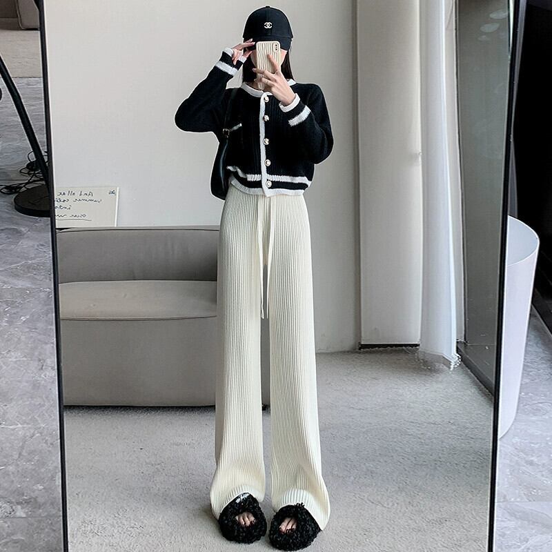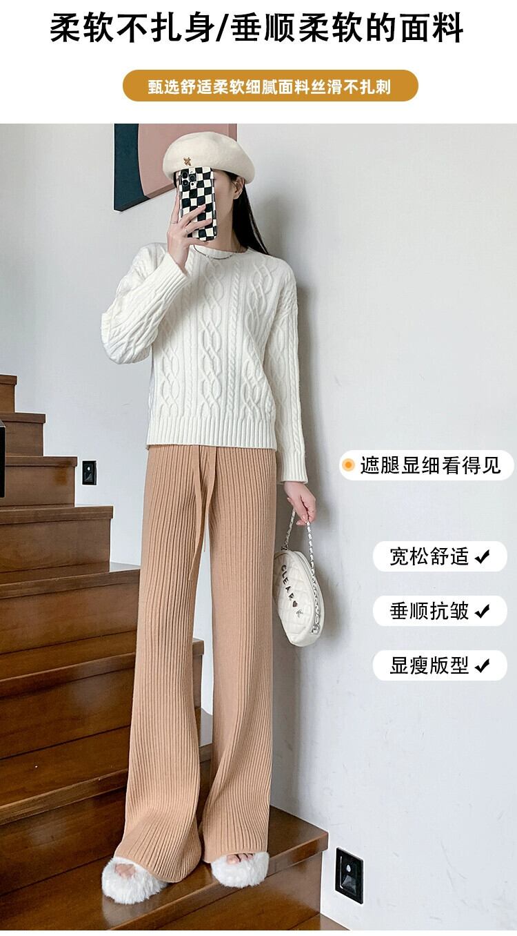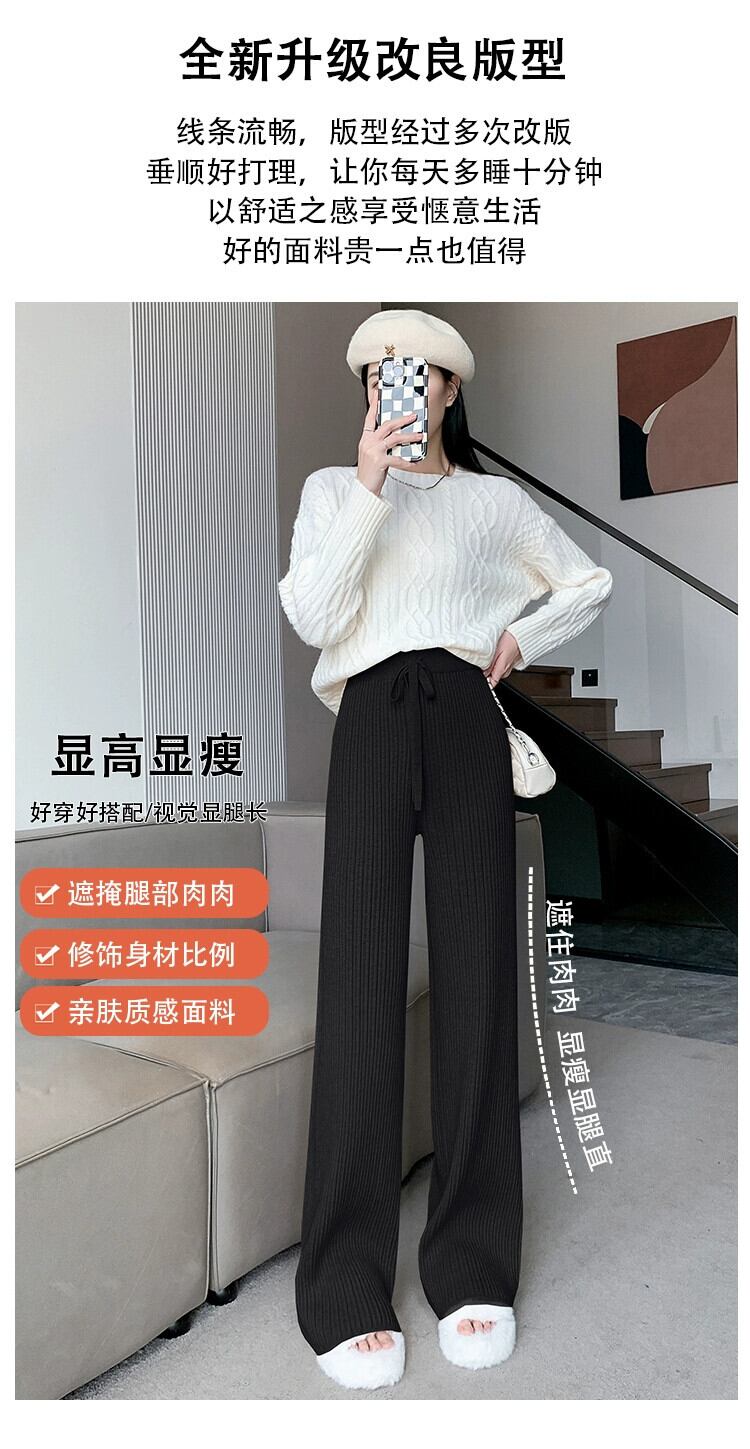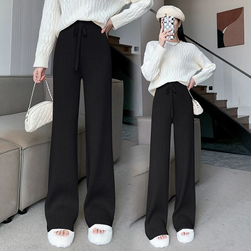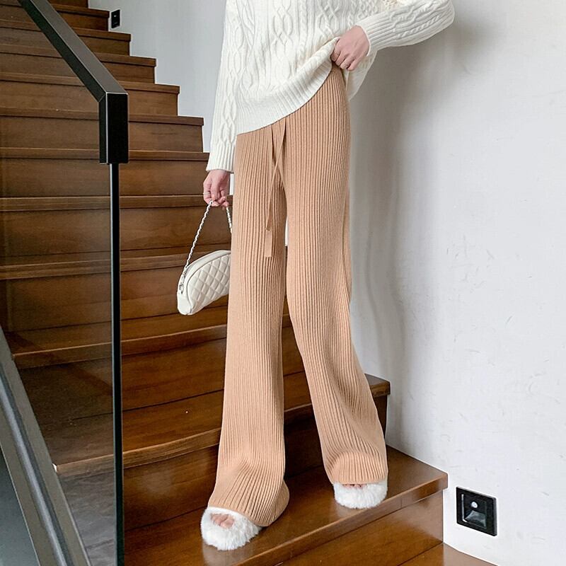 秋冬の小柄なニットワイドレッグパンツの女性、スリムフィットパンツ、ハイウエスト、多用途、ドレープのあるフロアレングスカジュアルパンツ オータム 秋物 ウィンター 冬物 7460036460382978 | framboise21
