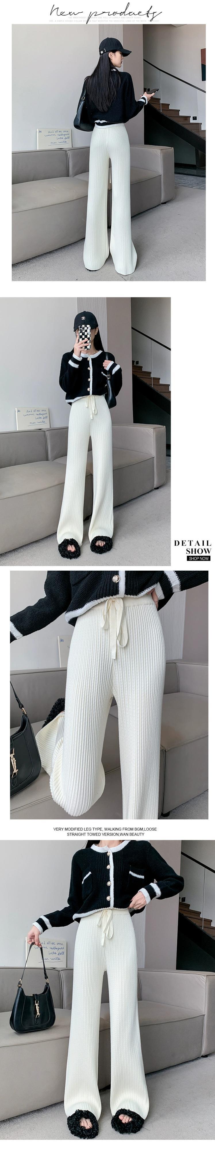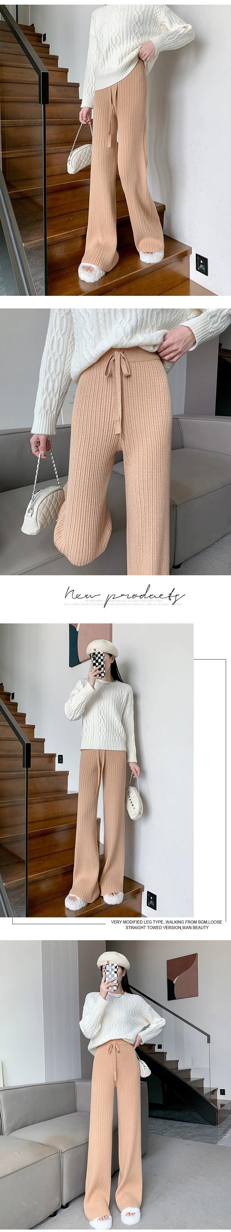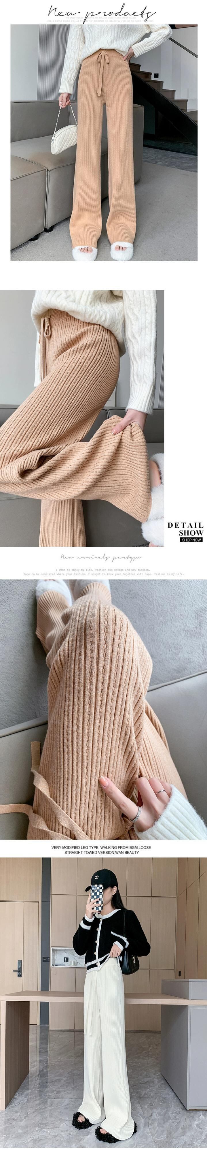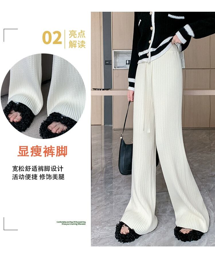 秋冬の小柄なニットワイドレッグパンツの女性、スリムフィットパンツ、ハイウエスト、多用途、ドレープのあるフロアレングスカジュアルパンツ オータム 秋物 ウィンター 冬物 7460036460382978 | framboise21