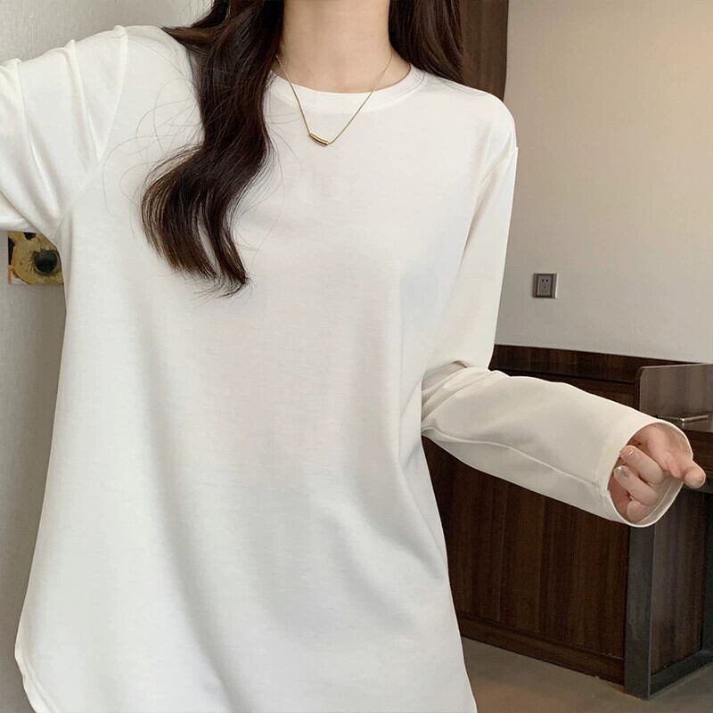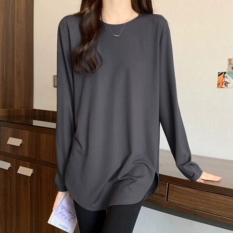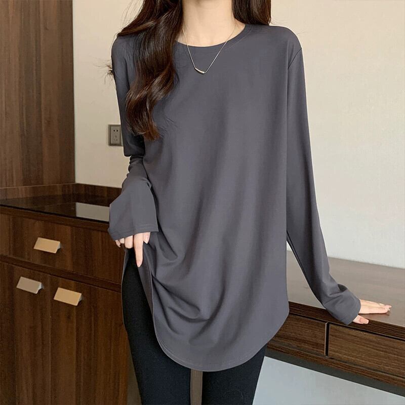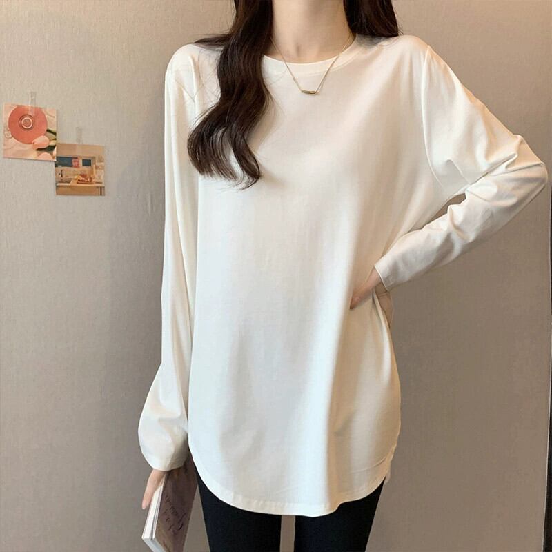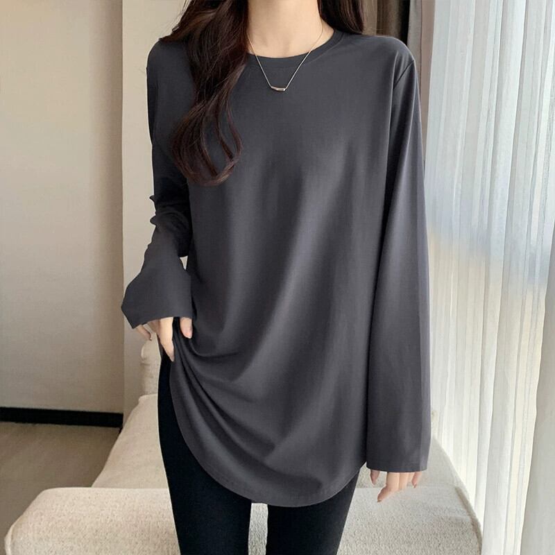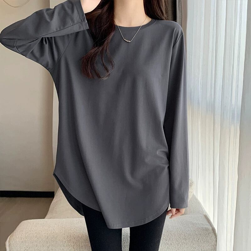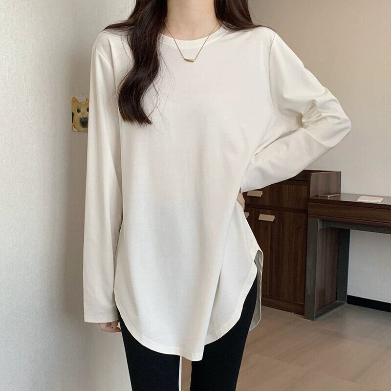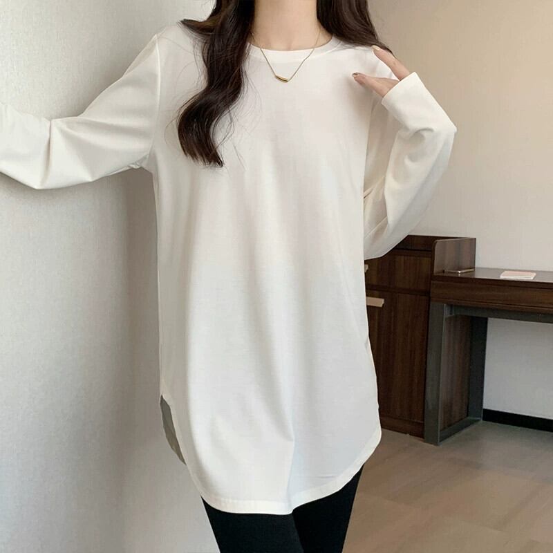 不規則なミドル丈のボトムスウェットシャツの女性、春と秋のスタイル、長袖Tシャツ、シャークパンツトップが付いたヨーロッパスタイルの大きいバージョン ロング スプリング 春物 オータム 秋物 ヨーロピアン 7460078898253194 | framboise21
