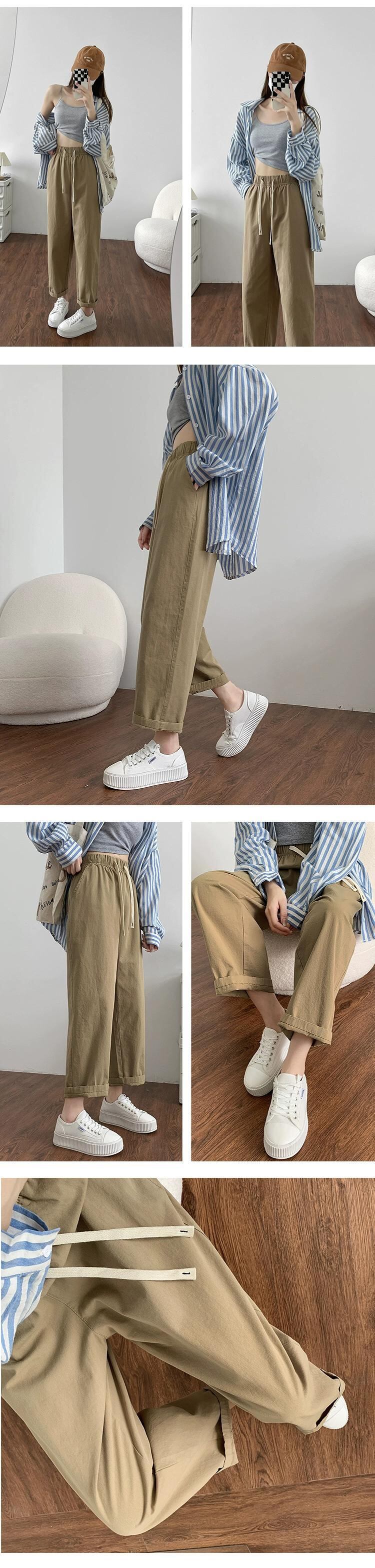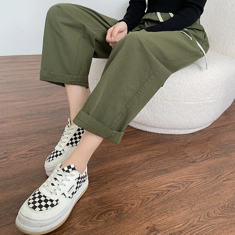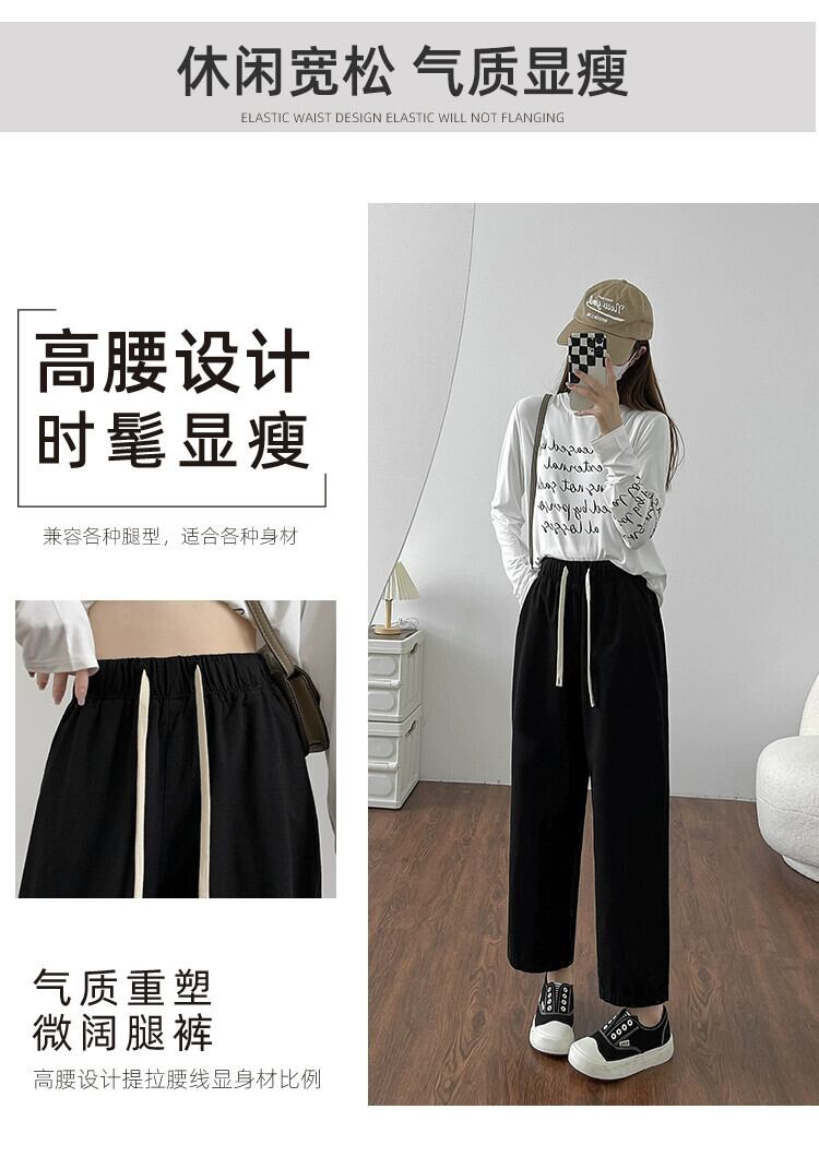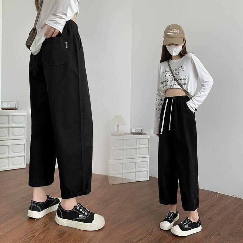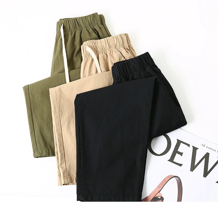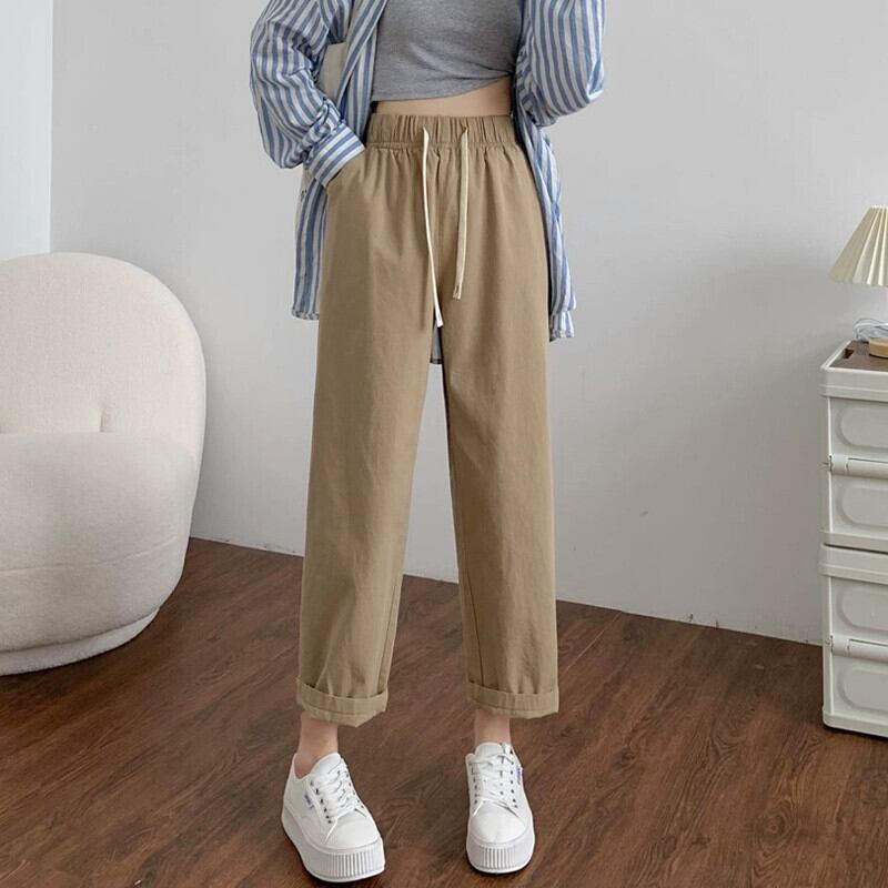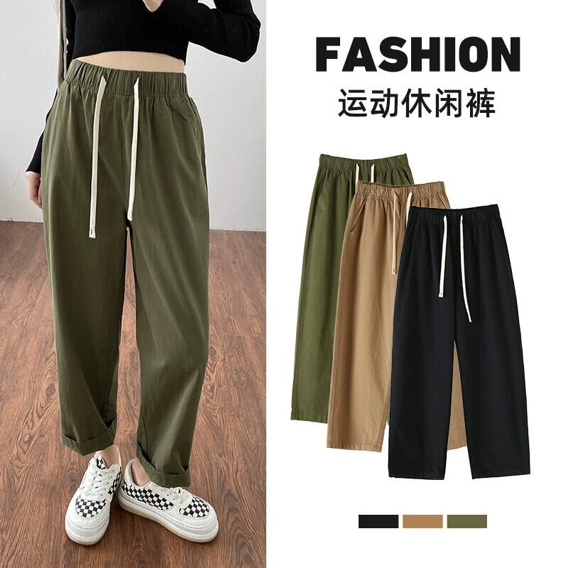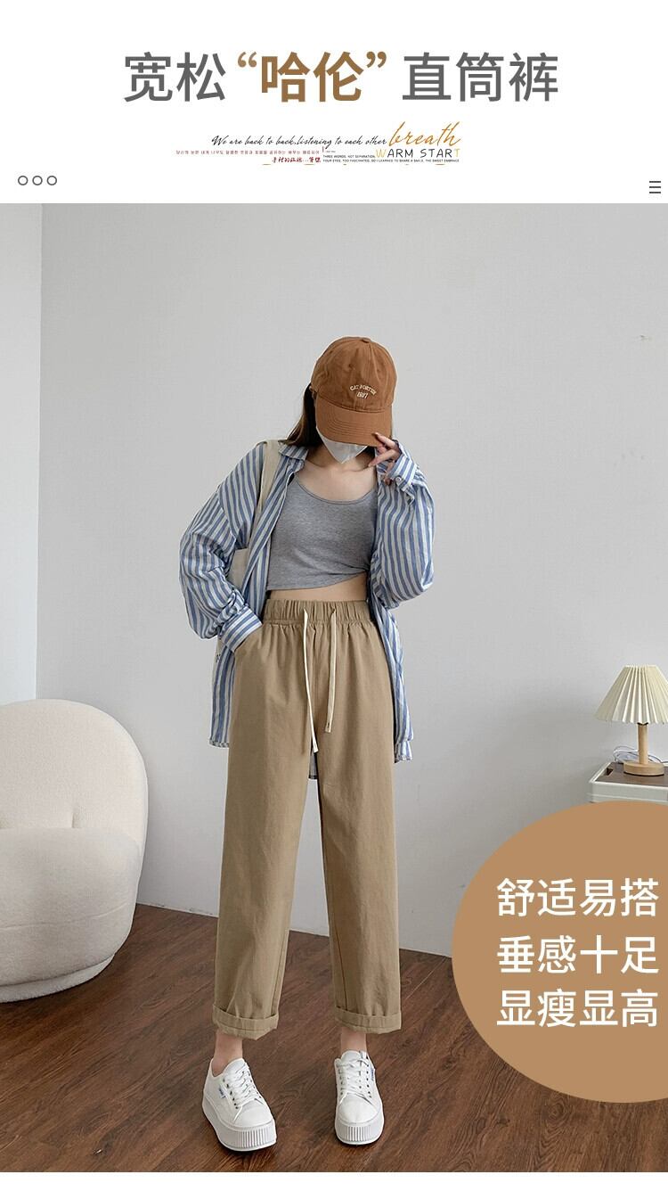 9 点ハーレムパンツ女性 2023 秋の新しいスタイルの小さなワイドレッグストレートパンツ弾性ウエストカーキカジュアルパンツ エラスティック 伸縮 オータム 秋物 74600806591345 | framboise21