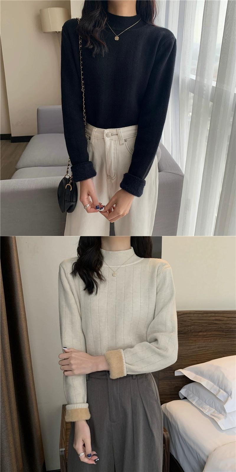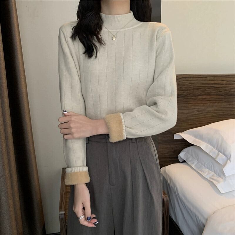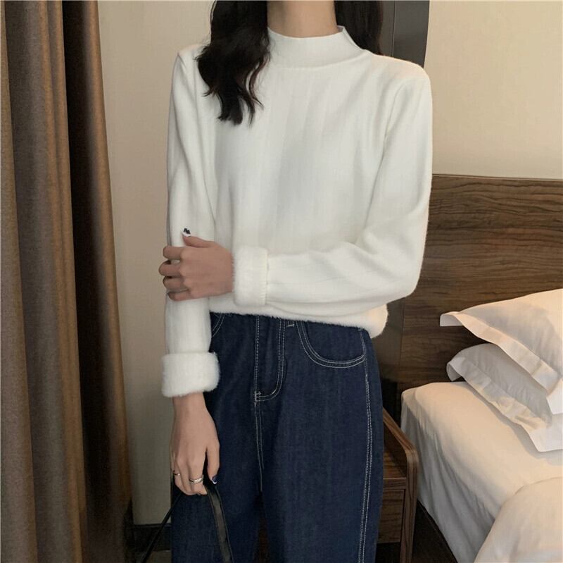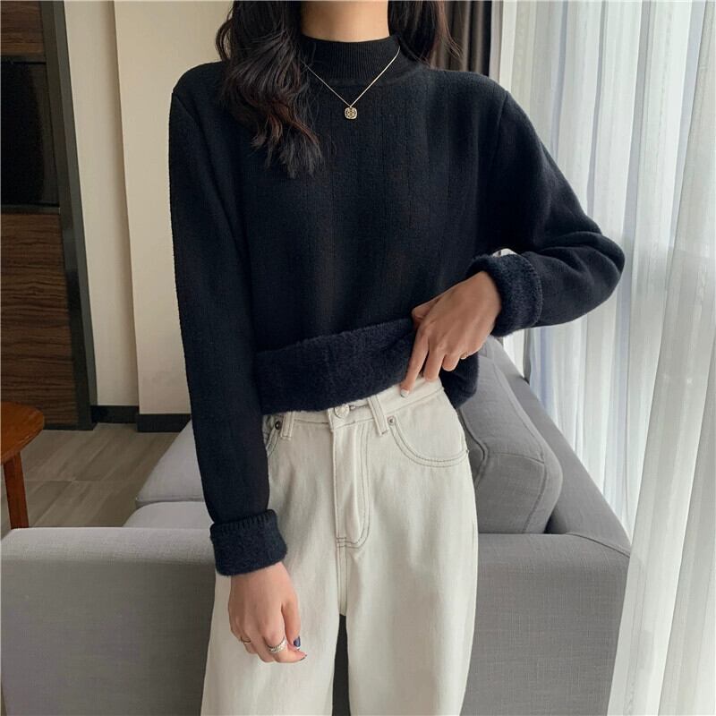 厚いベルベットハーフタートルネックサーマルボトミングシャツ女性の秋と冬の西洋スタイルのスリムフィットインナーワンピースベルベット長袖ニットセーター ロング オータム 秋物 ウィンター 冬物 7460073503891162 | framboise21