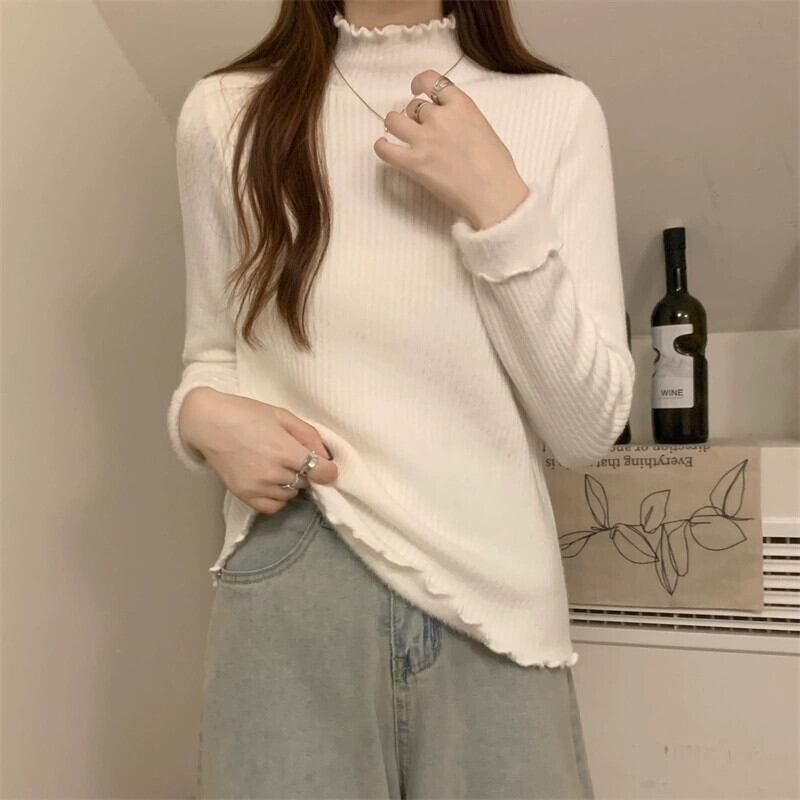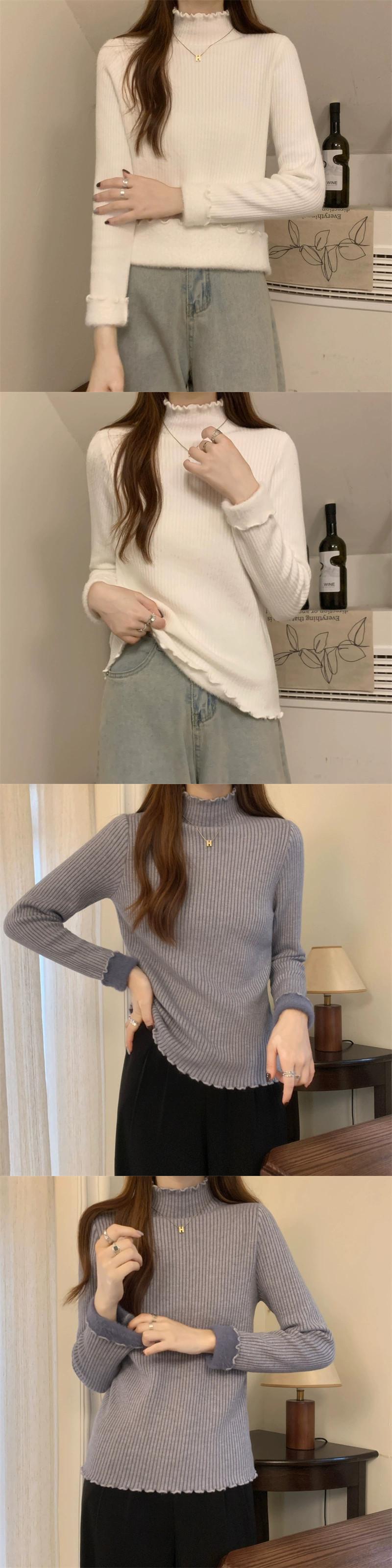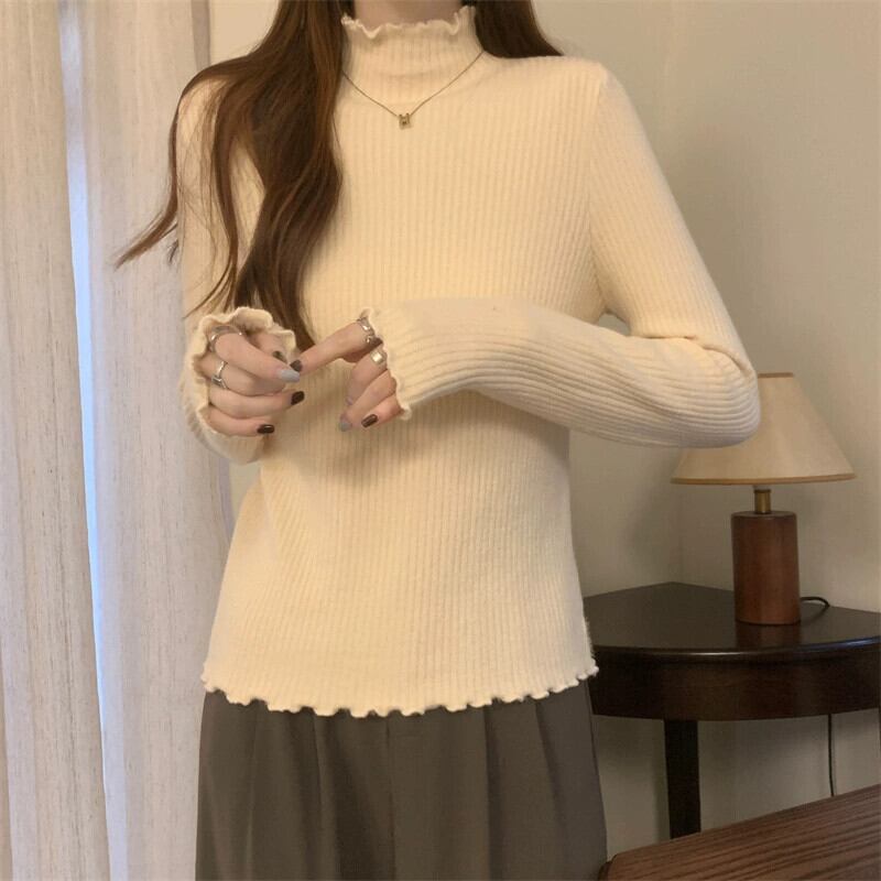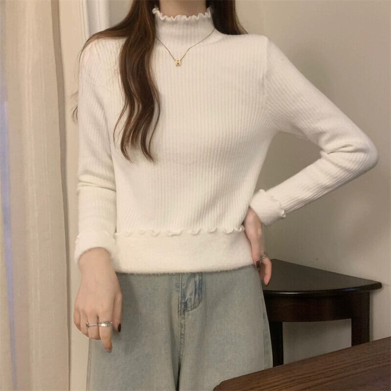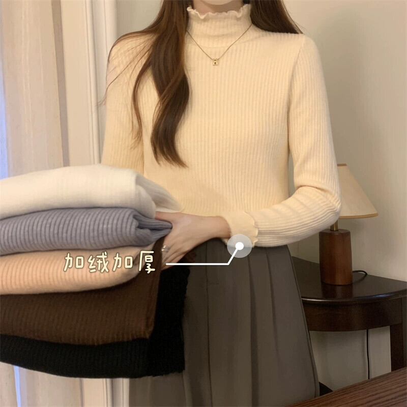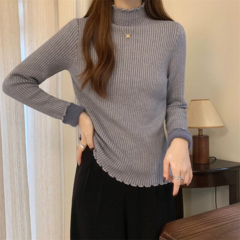 秋冬の厚みのあるベルベットハーフタートルネックボトムシャツレディース、内側はワンピースベルベットセーター、スリムでスタイリッシュな菌エッジセーター オータム 秋物 ウィンター 冬物 7460084793262301 | framboise21