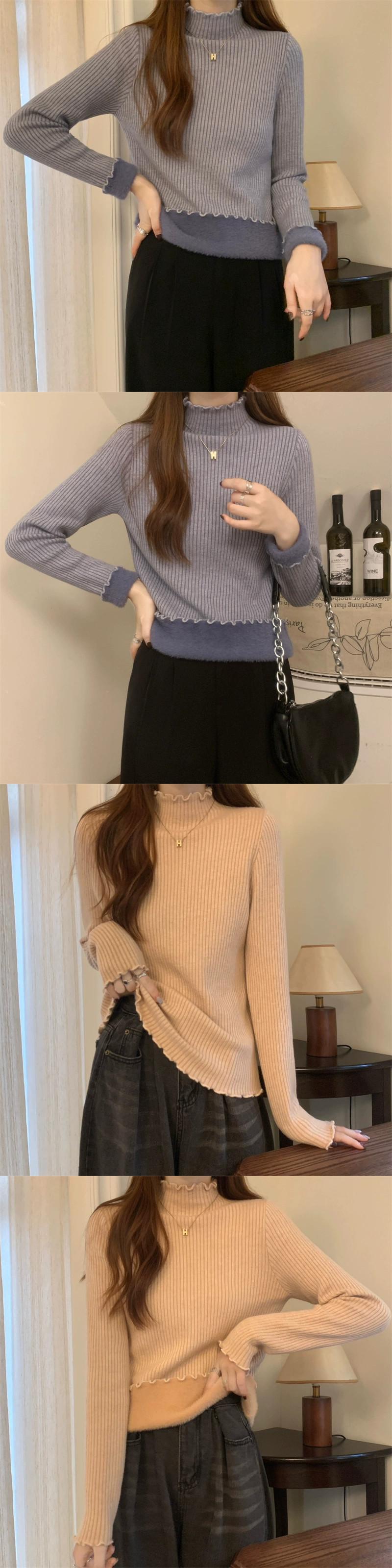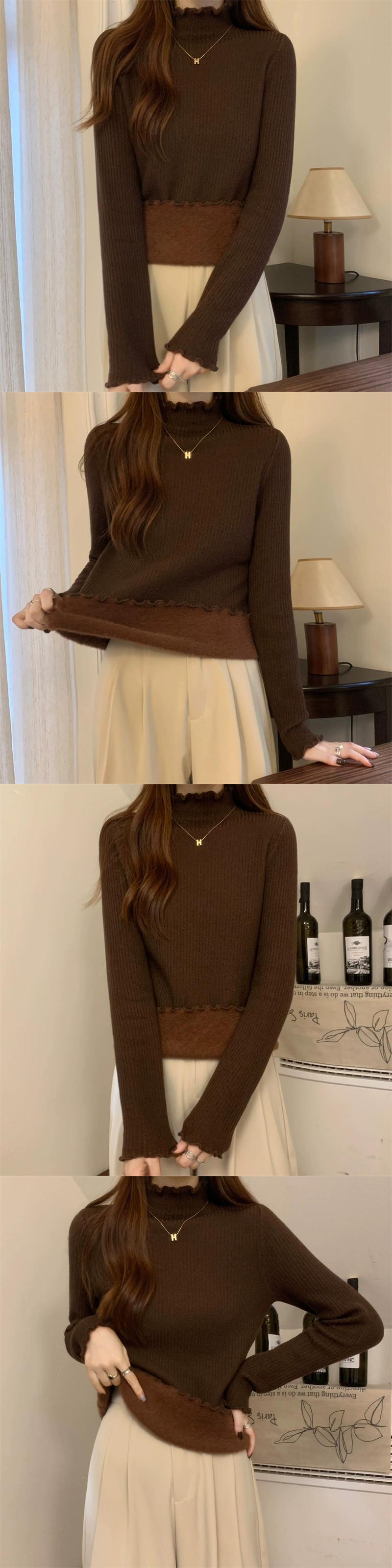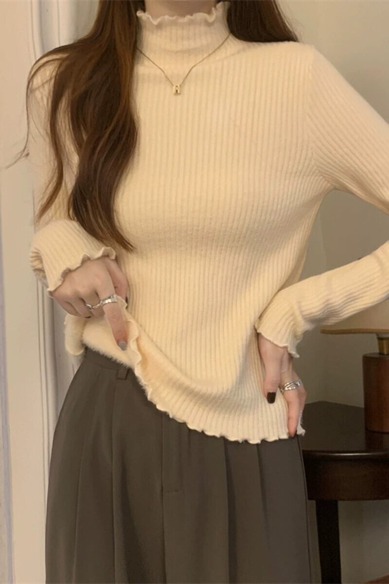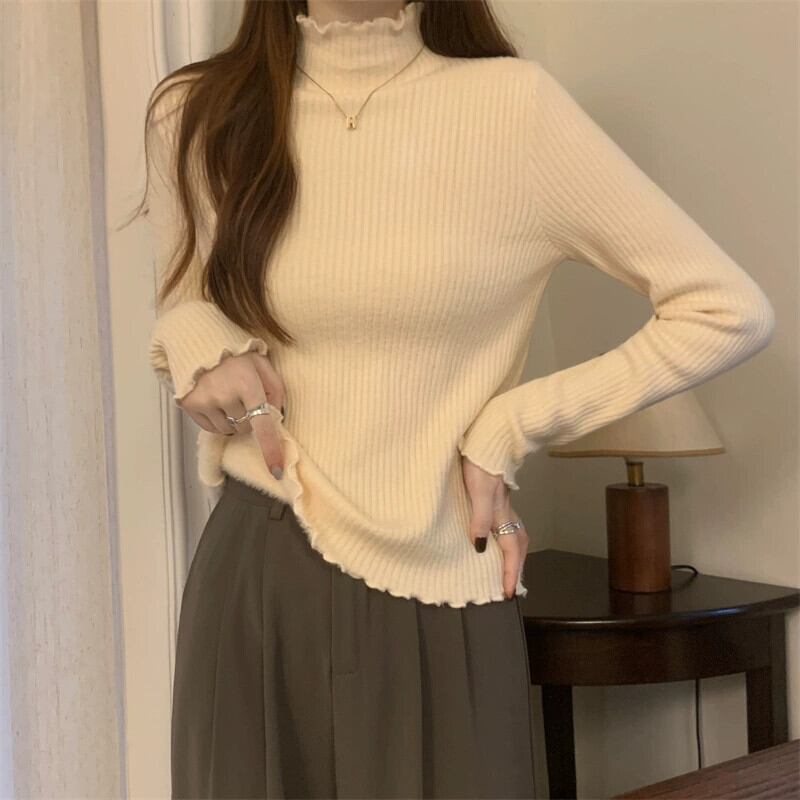秋冬の厚みのあるベルベットハーフタートルネックボトムシャツレディース、内側はワンピースベルベットセーター、スリムでスタイリッシュな菌エッジセーター オータム 秋物 ウィンター 冬物 7460084793262301 | framboise21