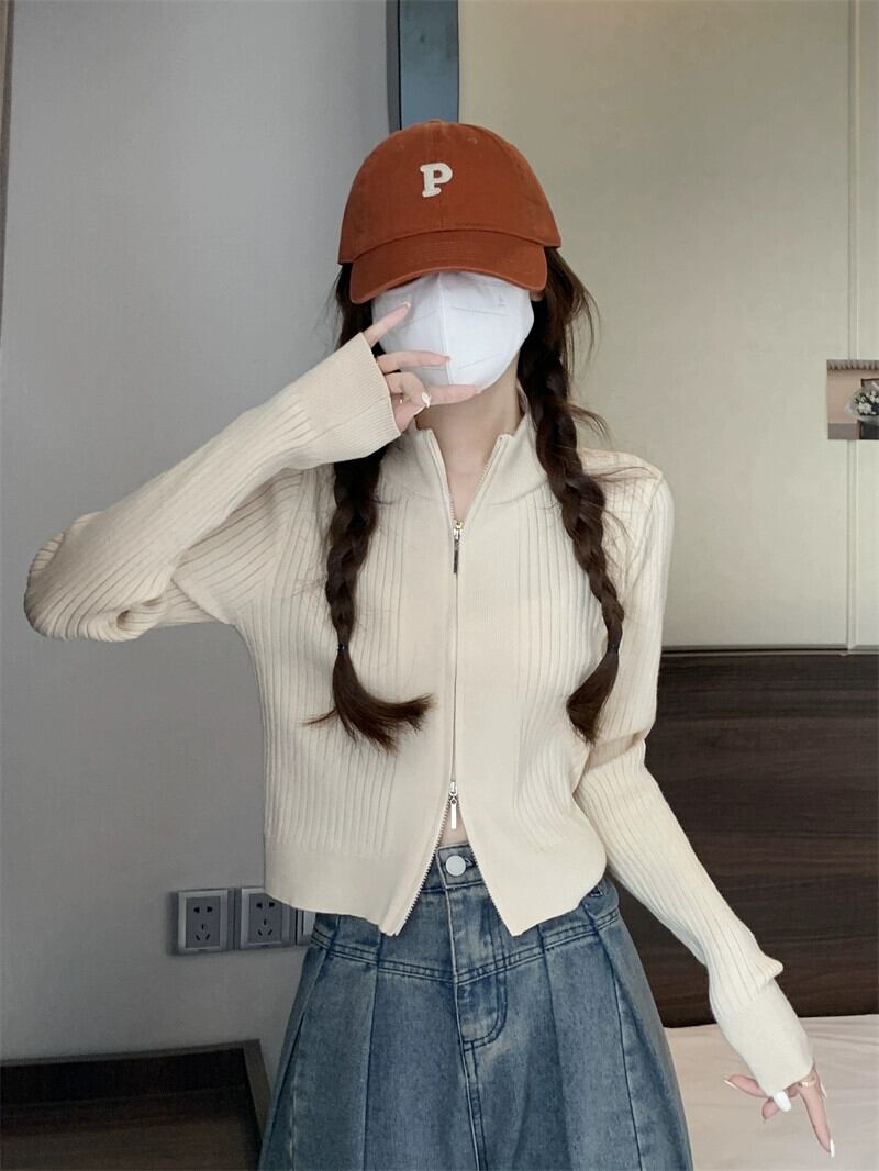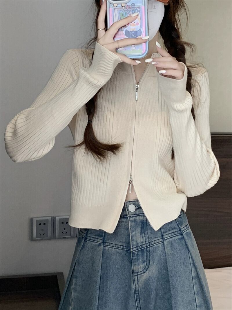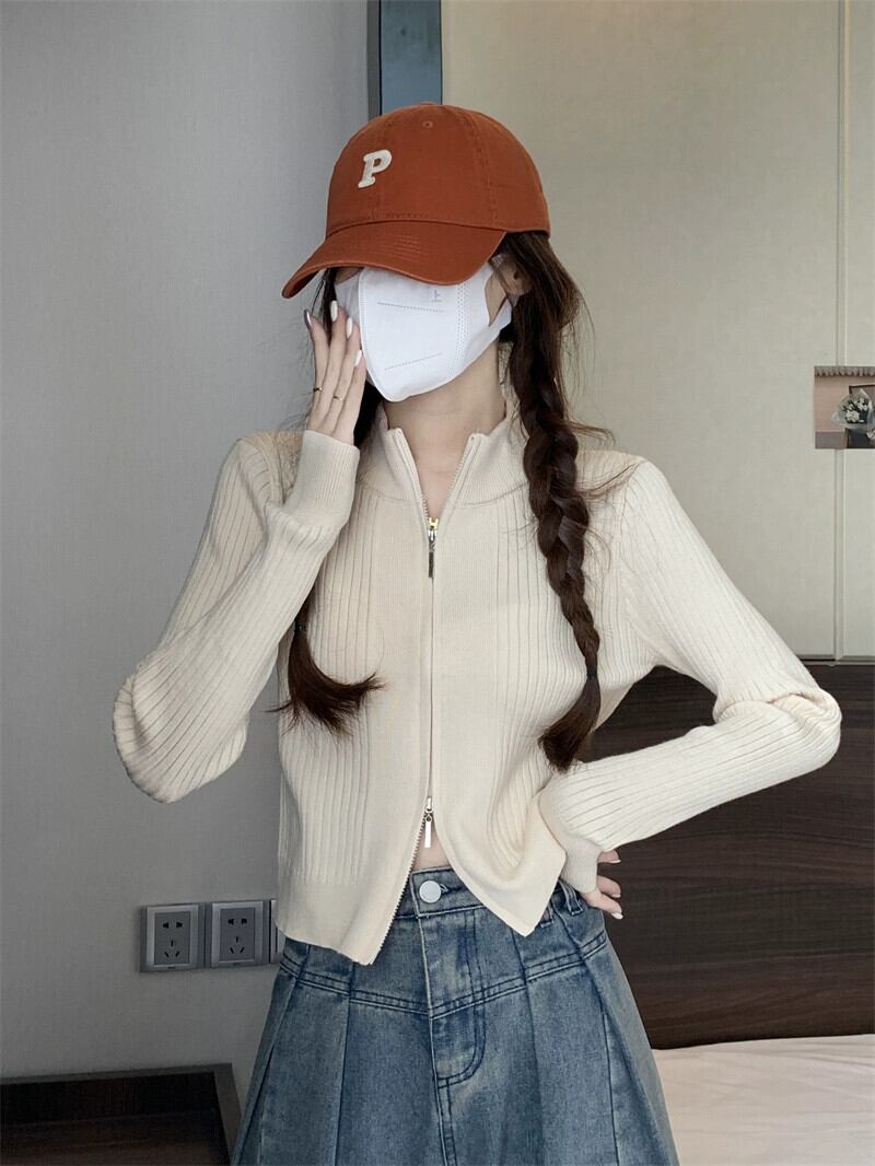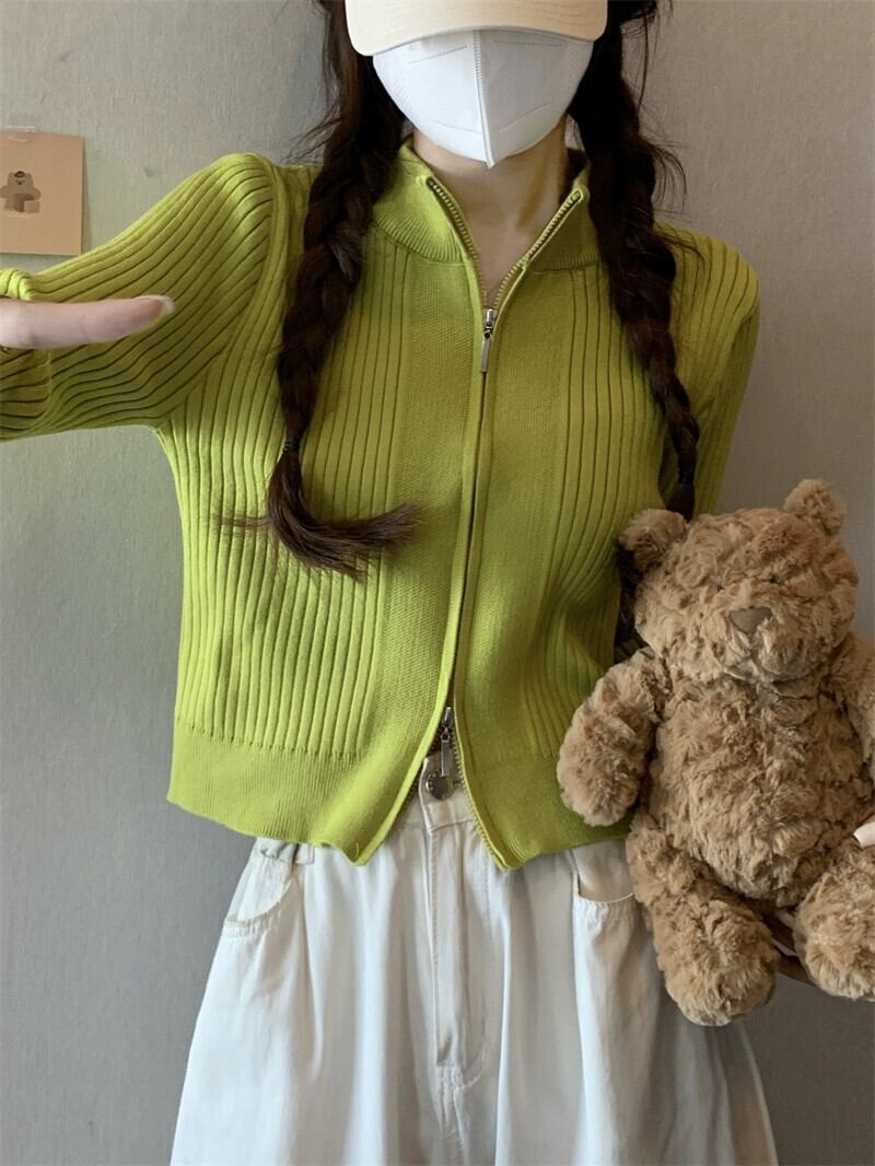 秋冬のジッパーショートハーフタートルネックニットカーディガンジャケットレディース、スリムフィットでスタイリッシュなアウターウェア、多用途の長袖セーター ロング オータム 秋物 ウィンター 冬物 7460021574946941 | framboise21