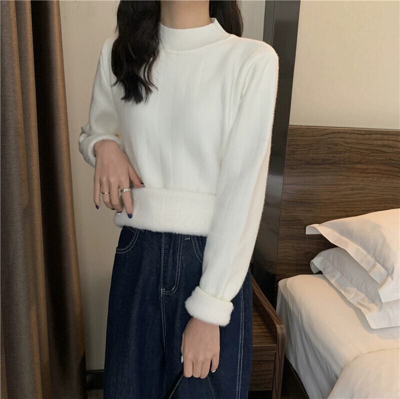 厚いベルベットハーフタートルネックボトリングシャツ女性の秋と冬のファッショナブルでスリムフィットのニットワンピースミンクベルベットセーター オータム 秋物 ウィンター 冬物 7460020181661850 | framboise21