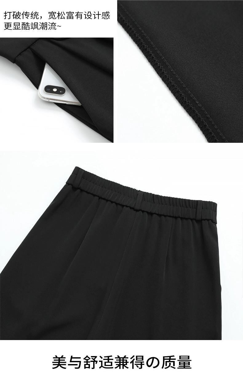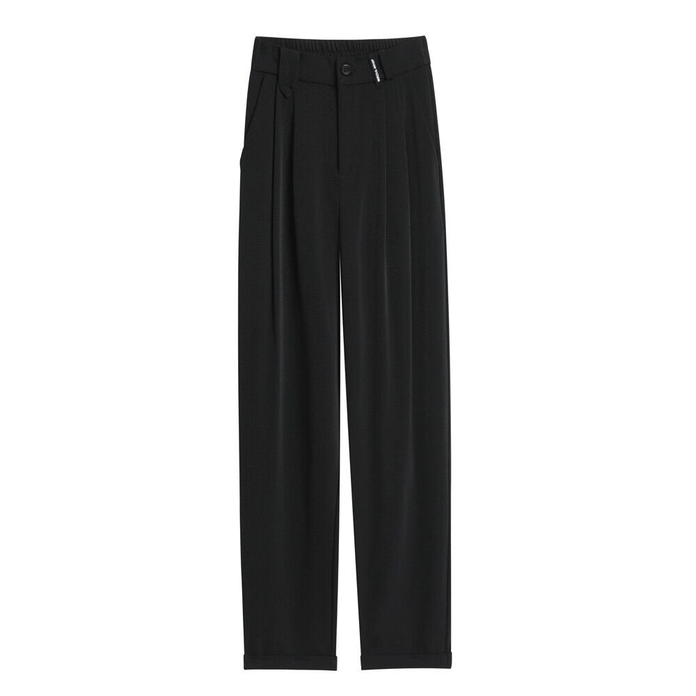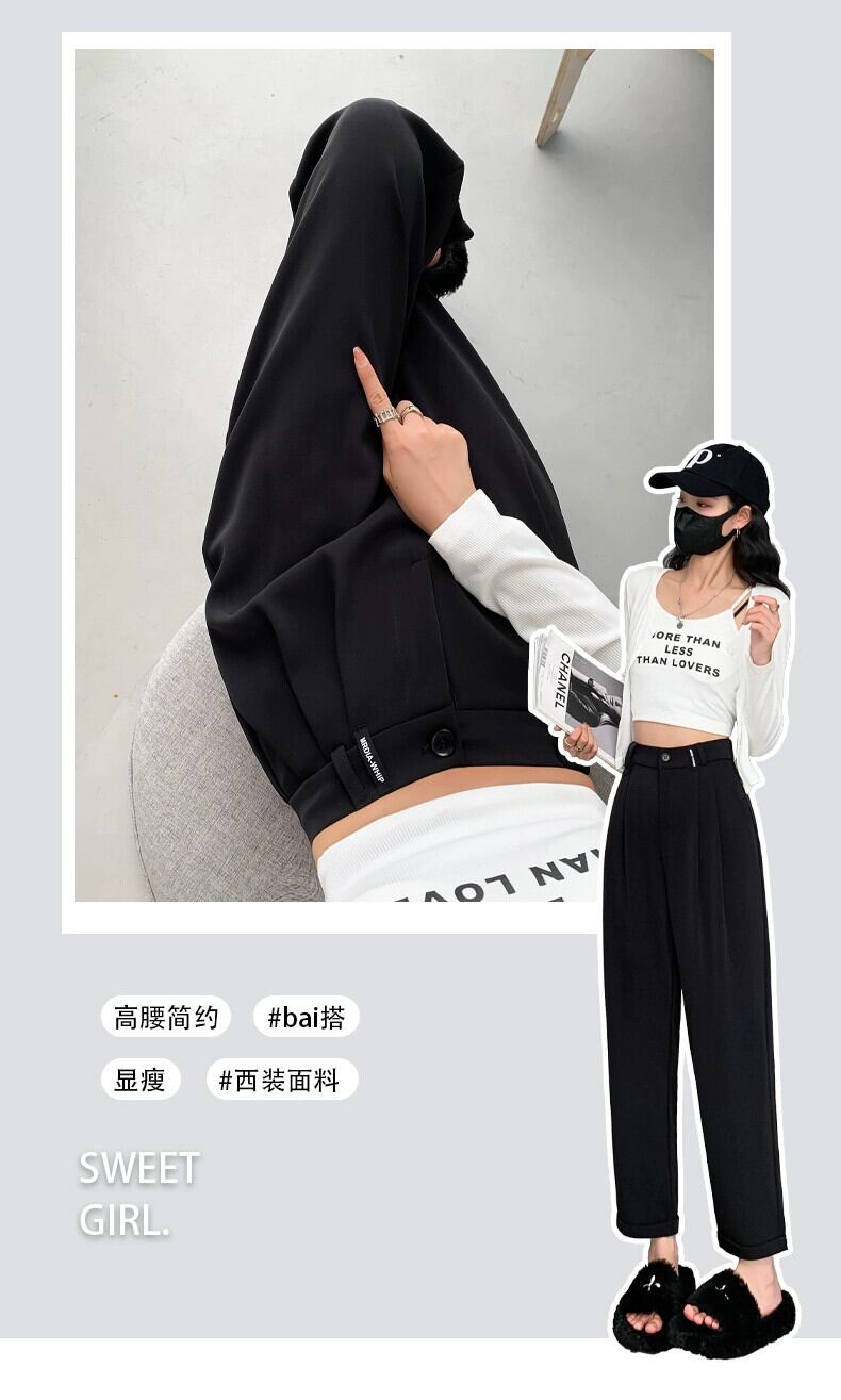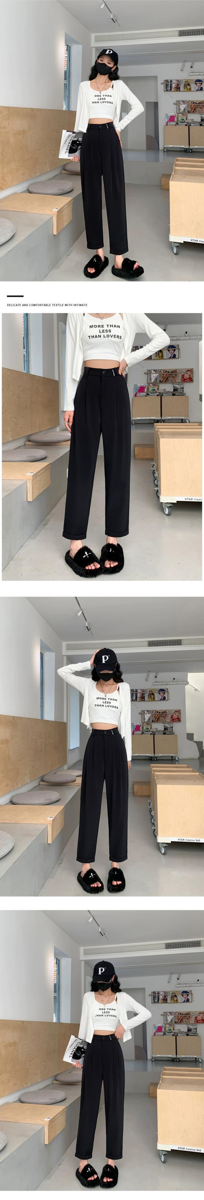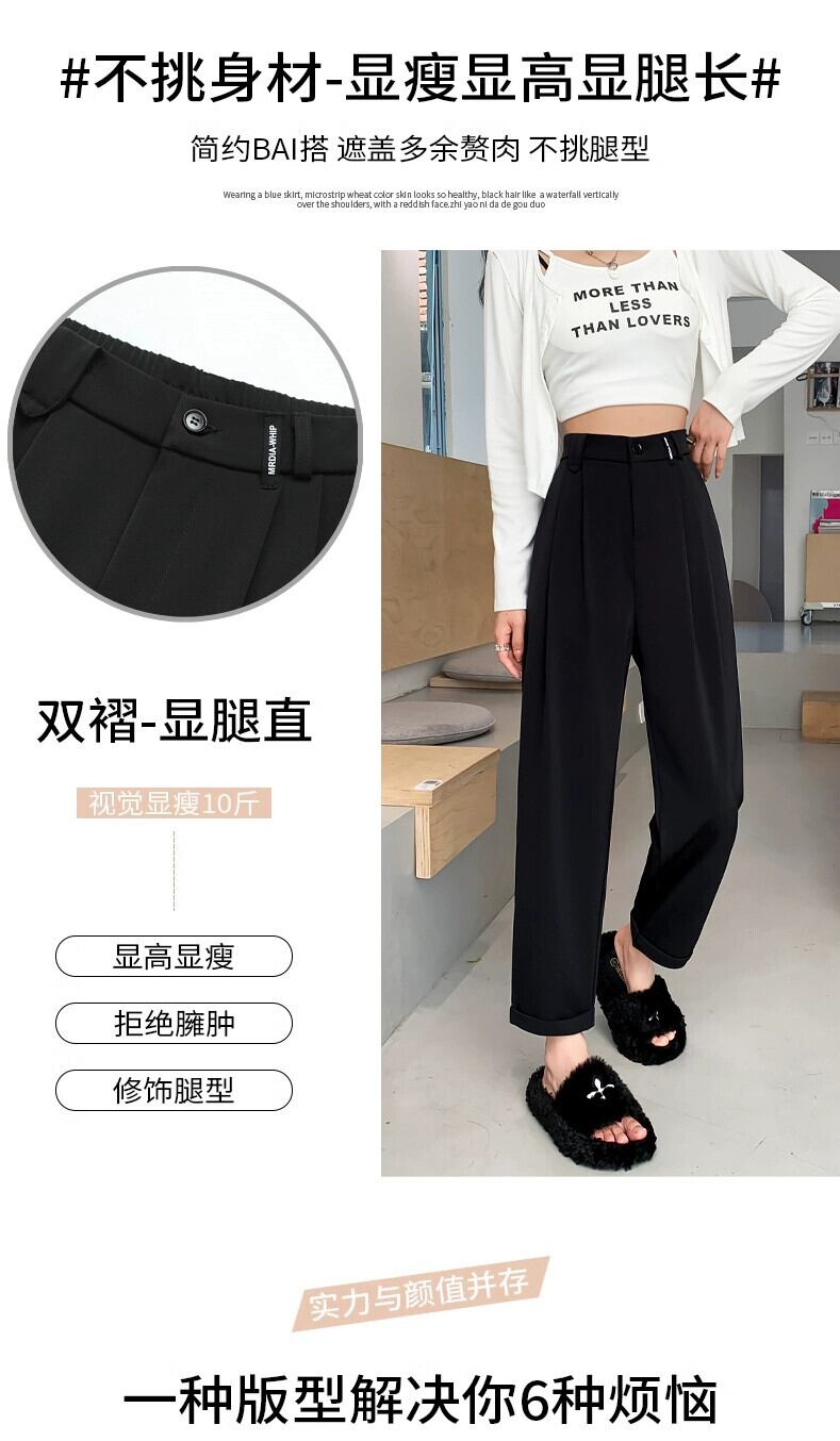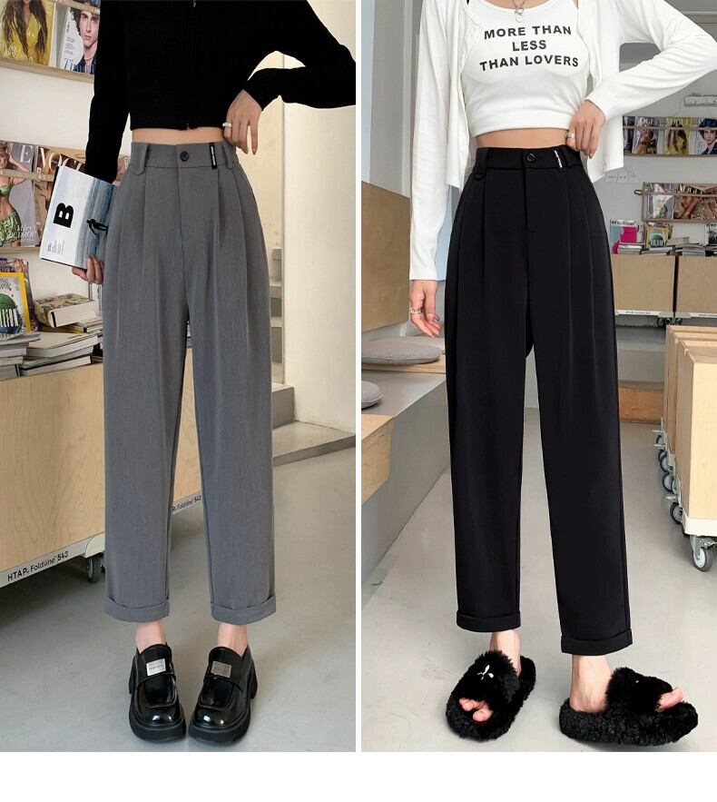 春と秋のグレーの狭い9点スーツパンツの女性、ストレートワイドレッグパンツ、小柄な人、スリム、ハイウエスト、ドレープのあるカジュアルパンツ スプリング 春物 オータム 秋物 7460098874497422 | framboise21