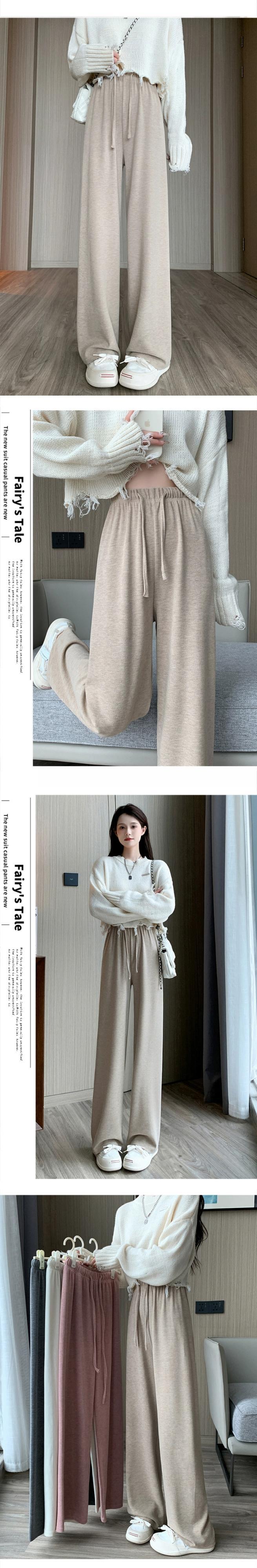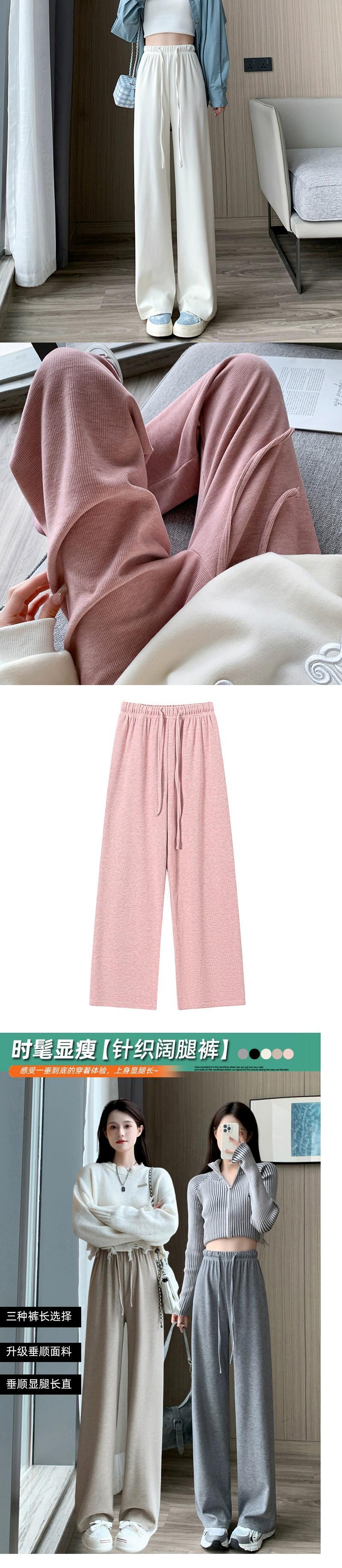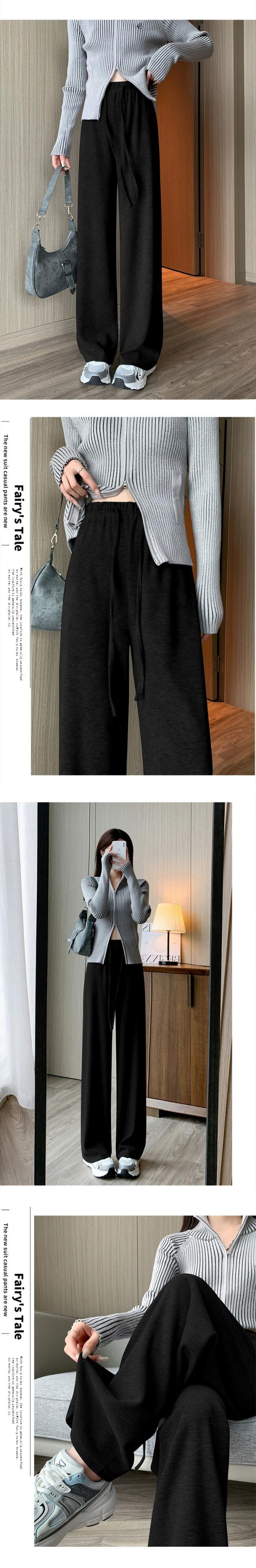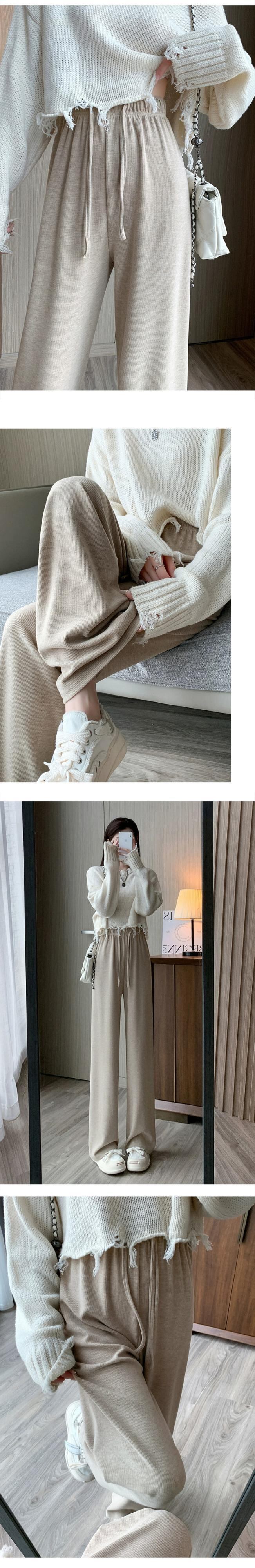 -ウエストドレープニットワイドレッグパンツ女性 2023 秋と冬の新しいナローストレートパンツルーズフロアレングスカジュアルパンツ オータム 秋物 ウィンター 冬物 7460094409192434 | framboise21