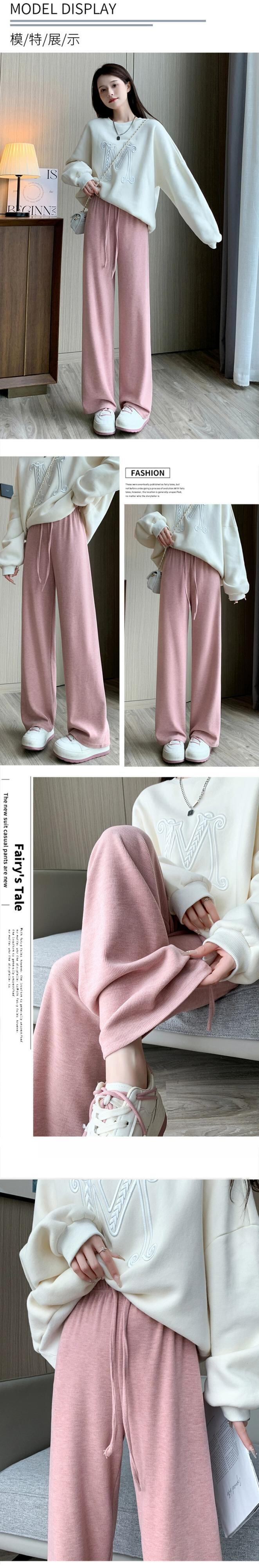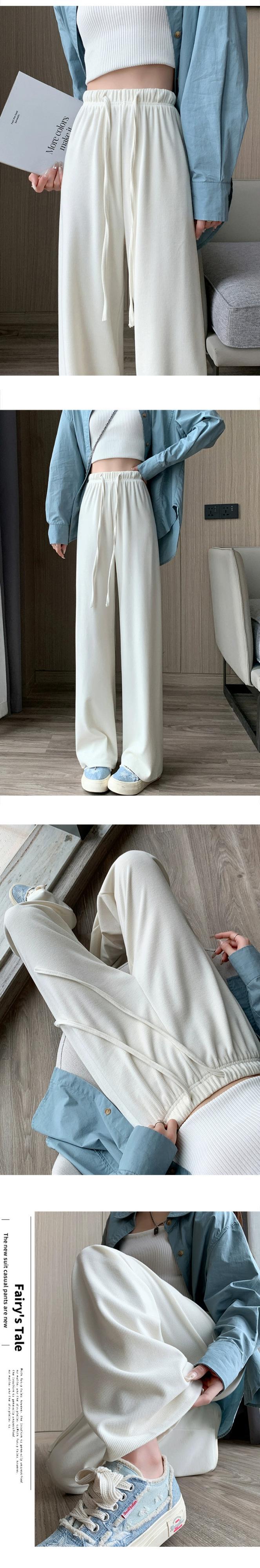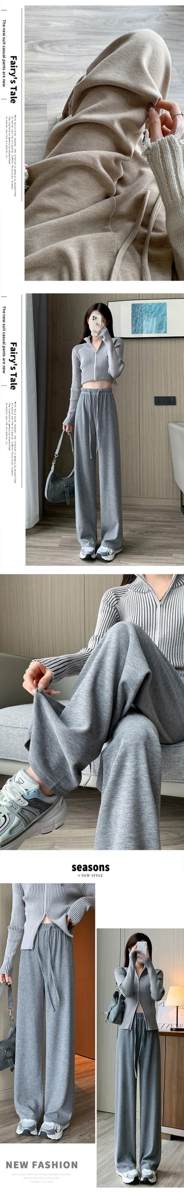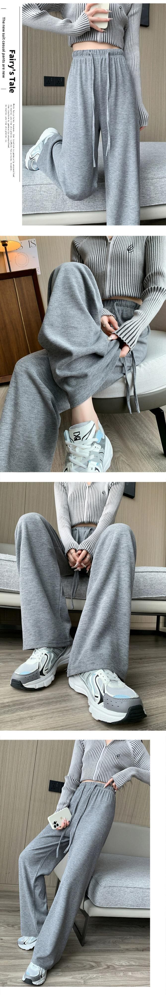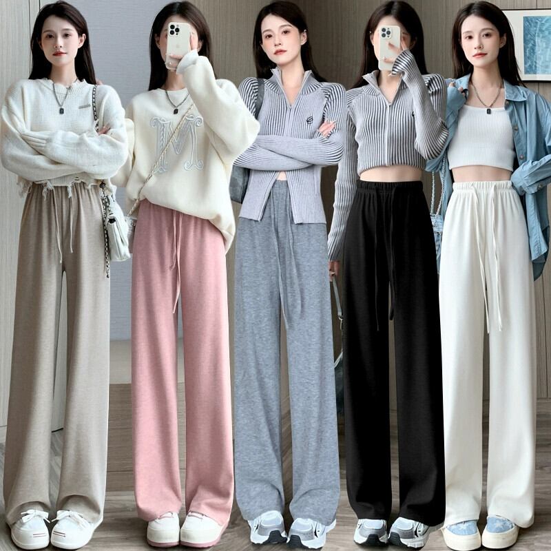 -ウエストドレープニットワイドレッグパンツ女性 2023 秋と冬の新しいナローストレートパンツルーズフロアレングスカジュアルパンツ オータム 秋物 ウィンター 冬物 7460094409192434 | framboise21