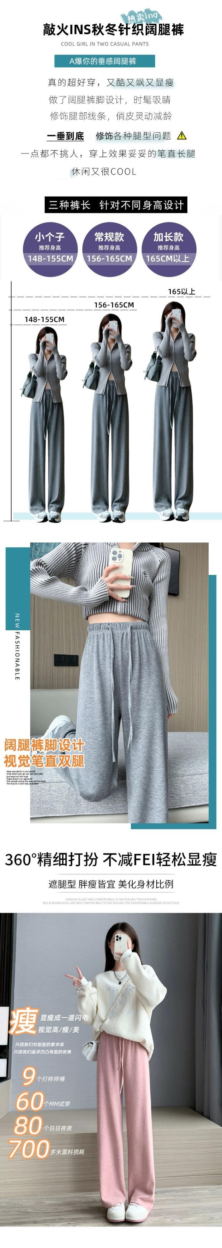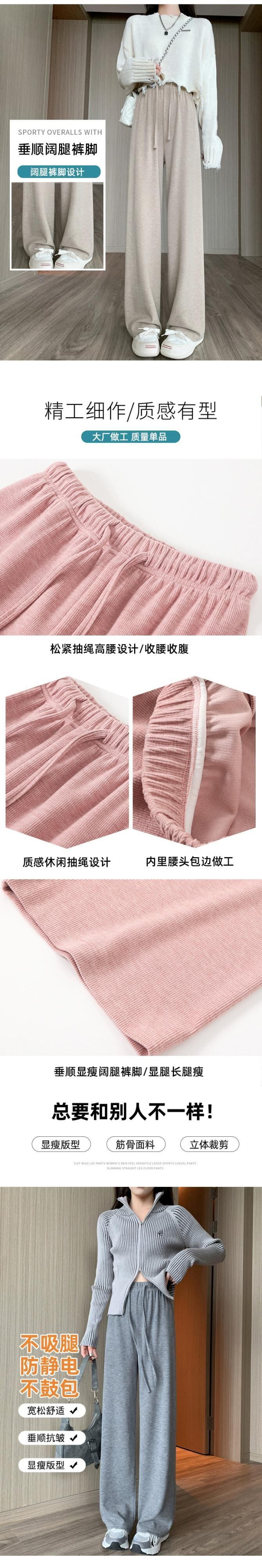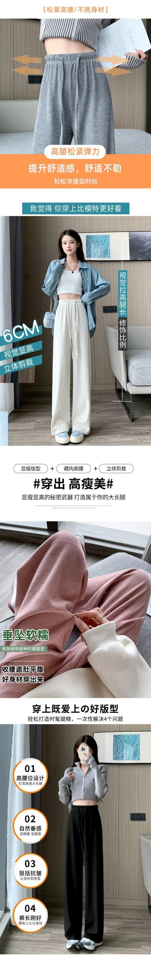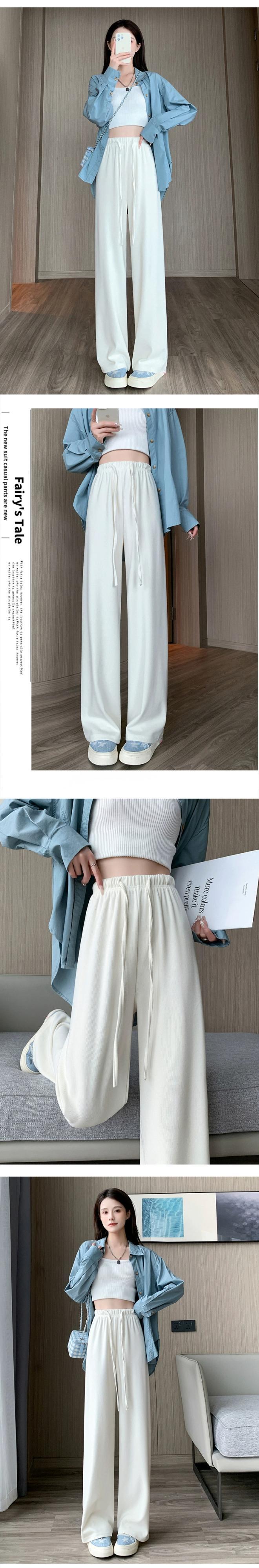 -ウエストドレープニットワイドレッグパンツ女性 2023 秋と冬の新しいナローストレートパンツルーズフロアレングスカジュアルパンツ オータム 秋物 ウィンター 冬物 7460094409192434 | framboise21