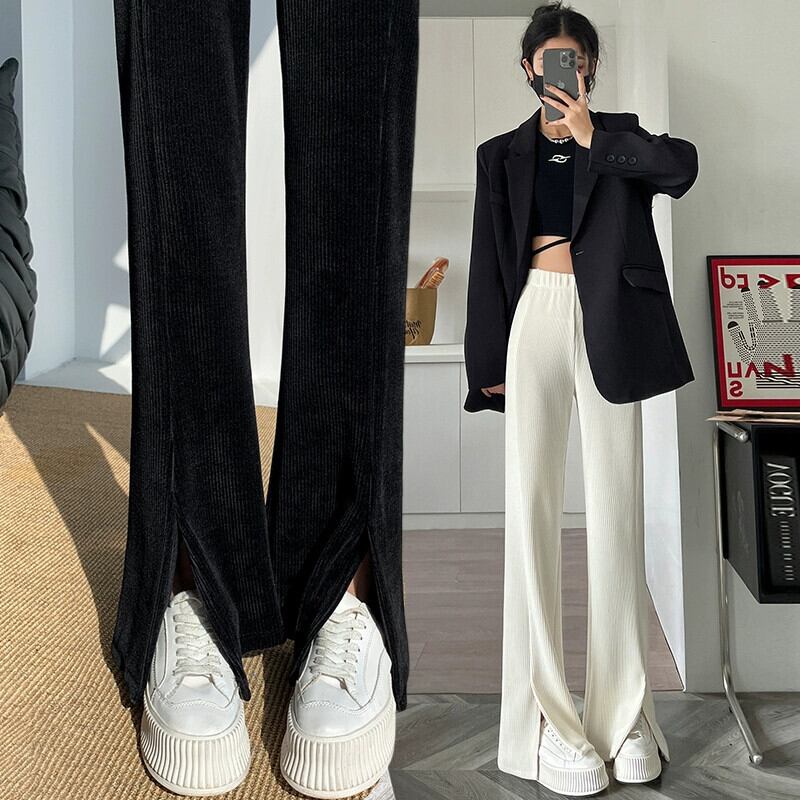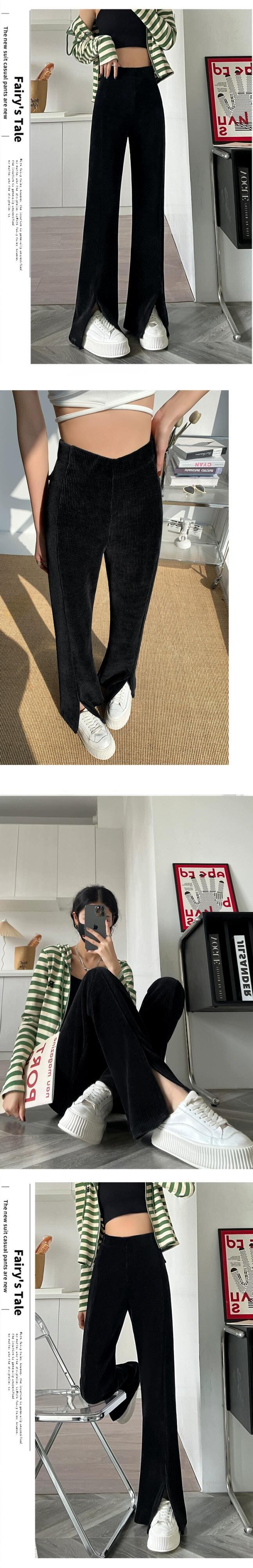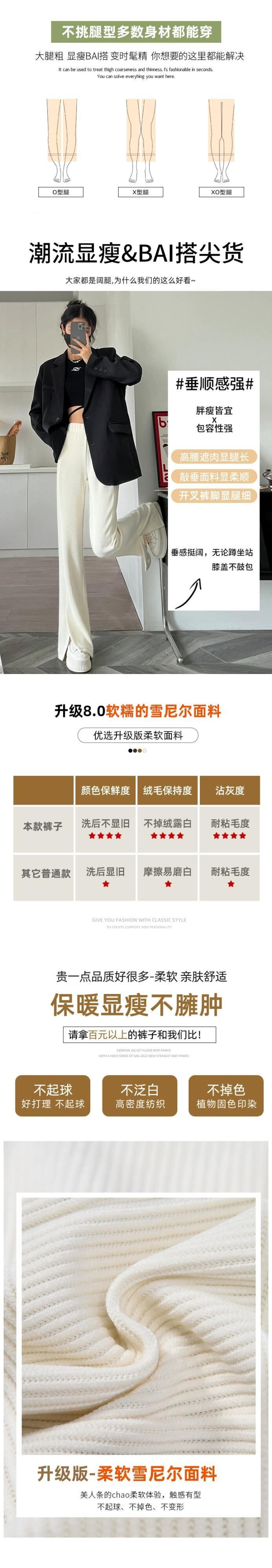 ベージュシェニールワイドレッグパンツ女性の秋と冬のハイウエストスリムドレープフレアパンツカジュアルストレートプラスベルベット肥厚パンツ レッド オータム 秋物 ウィンター 冬物 7460032803805381 | framboise21