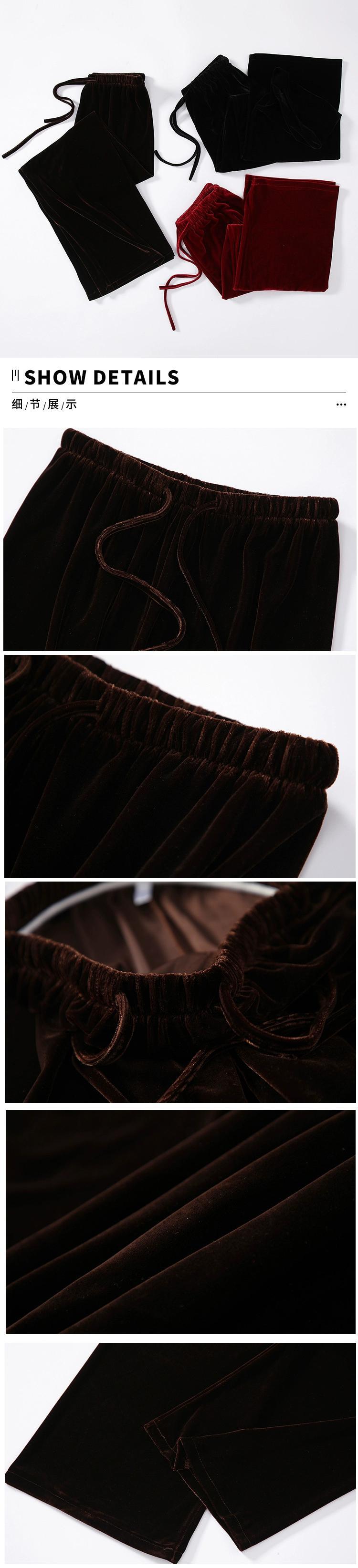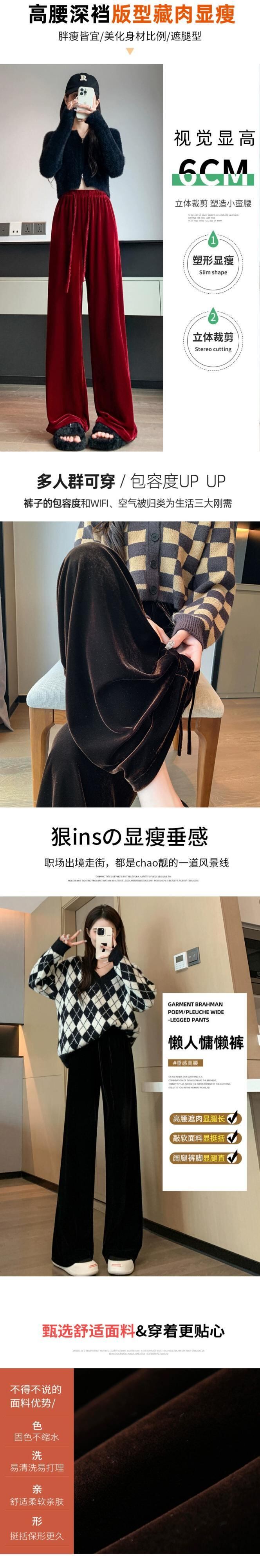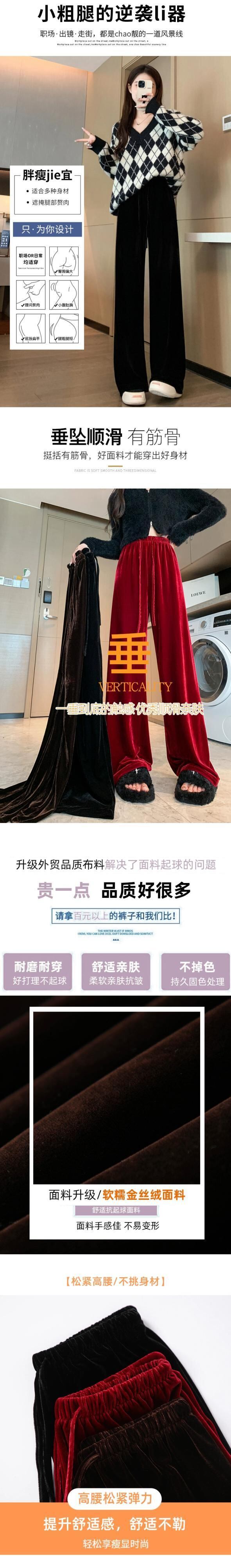 秋冬の厚みのあるゴールドベルベットのワイドレッグパンツの女性、怠惰なスタイルのハイウエストドレープストレートカジュアルフロアレングスバーガンディパンツ オータム 秋物 ウィンター 冬物 7460080094639494 | framboise21