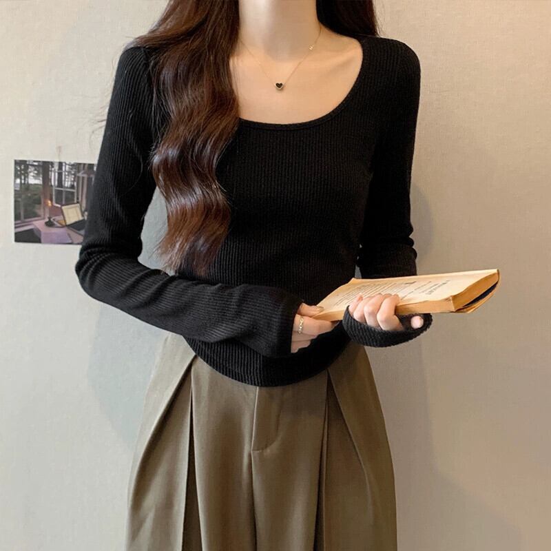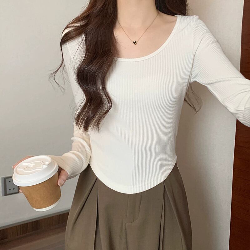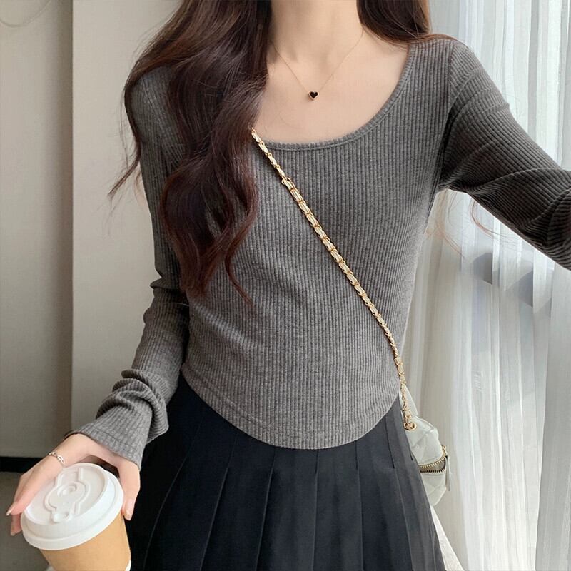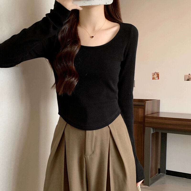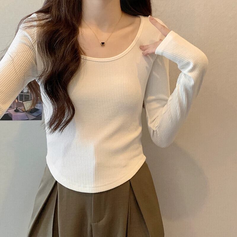 不規則なショート U ネックボトリングシャツ 2023 新しい女性の秋冬インナー長袖トップスファッショナブルなスリムスレッド Tシャツ ロング オータム 秋物 ウィンター 冬物 7460087239922992 | framboise21