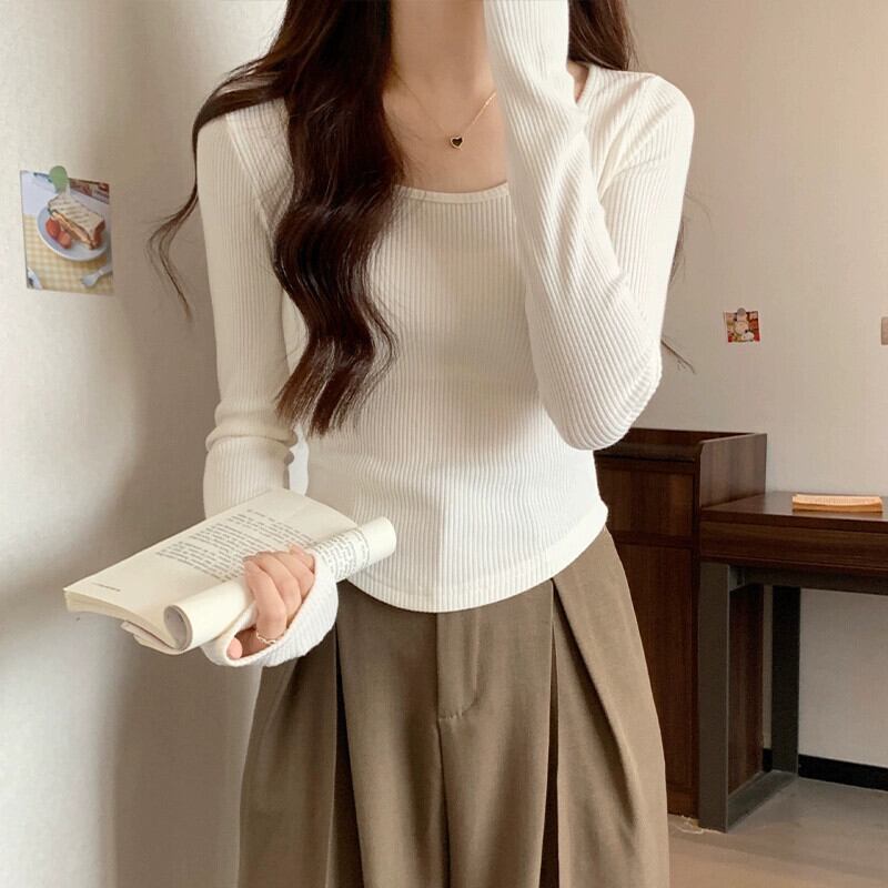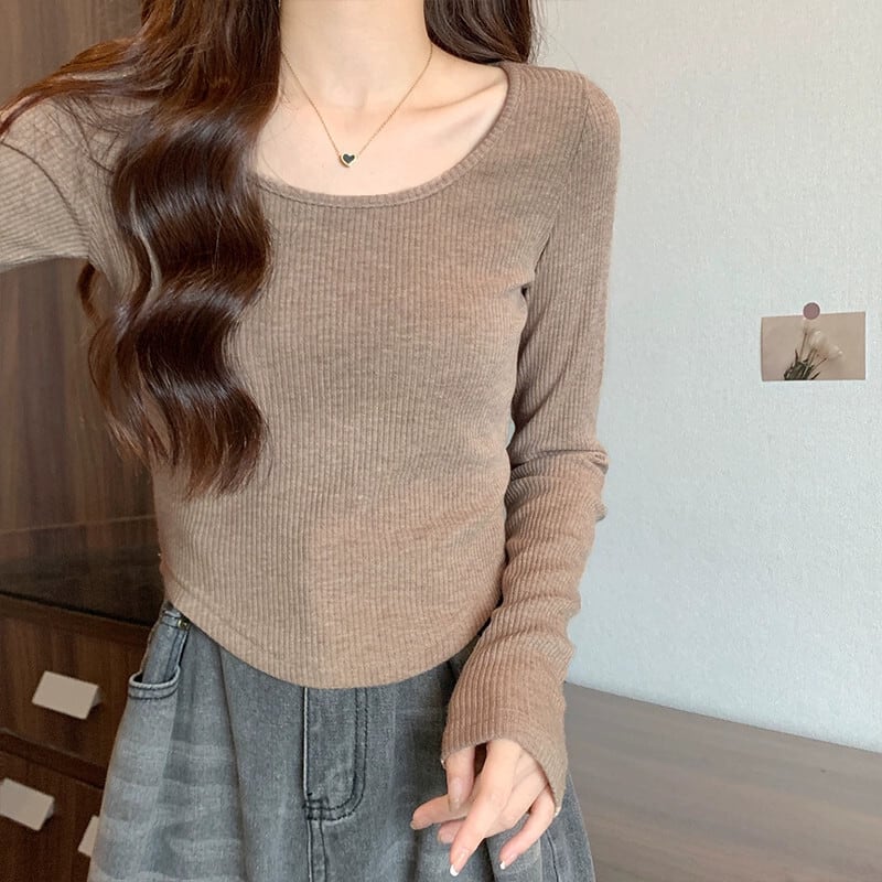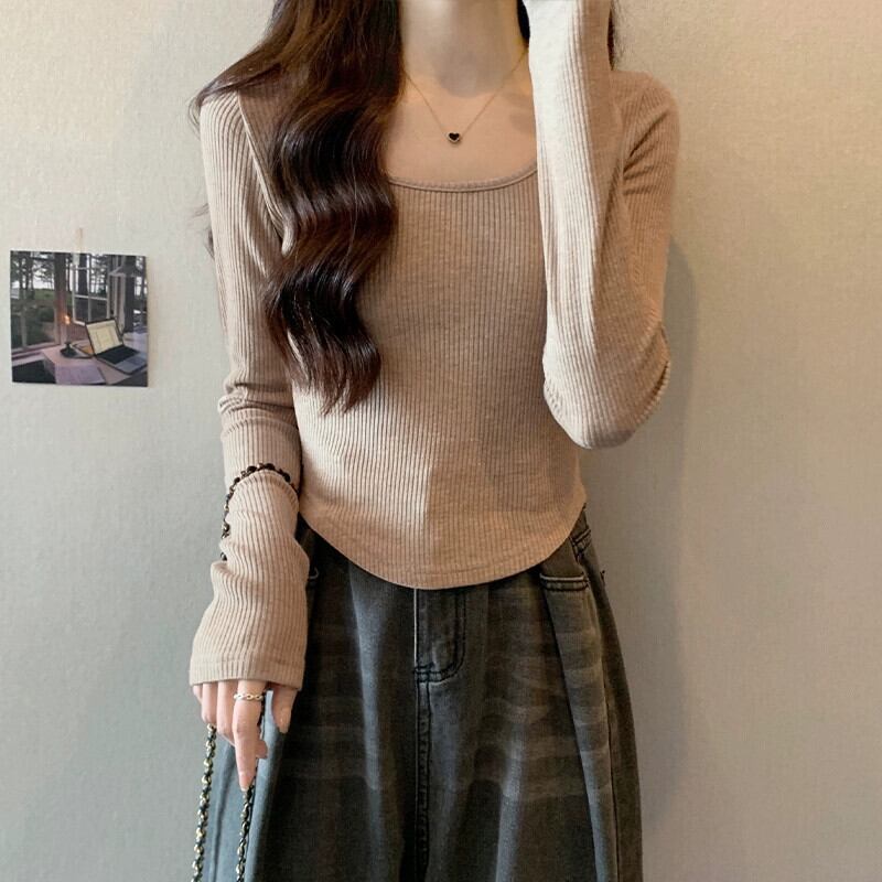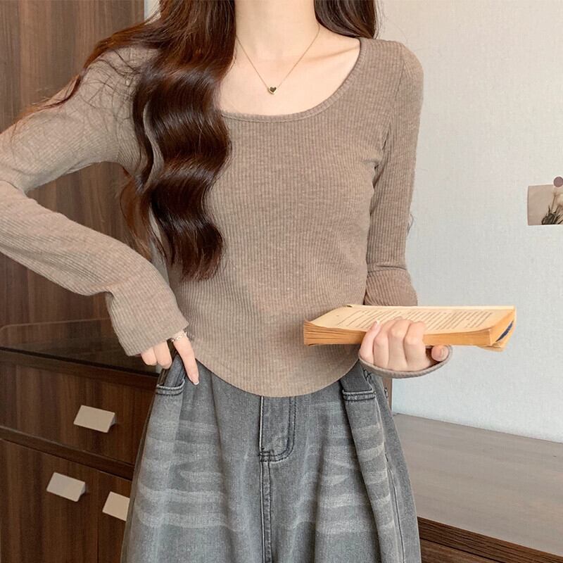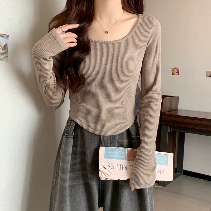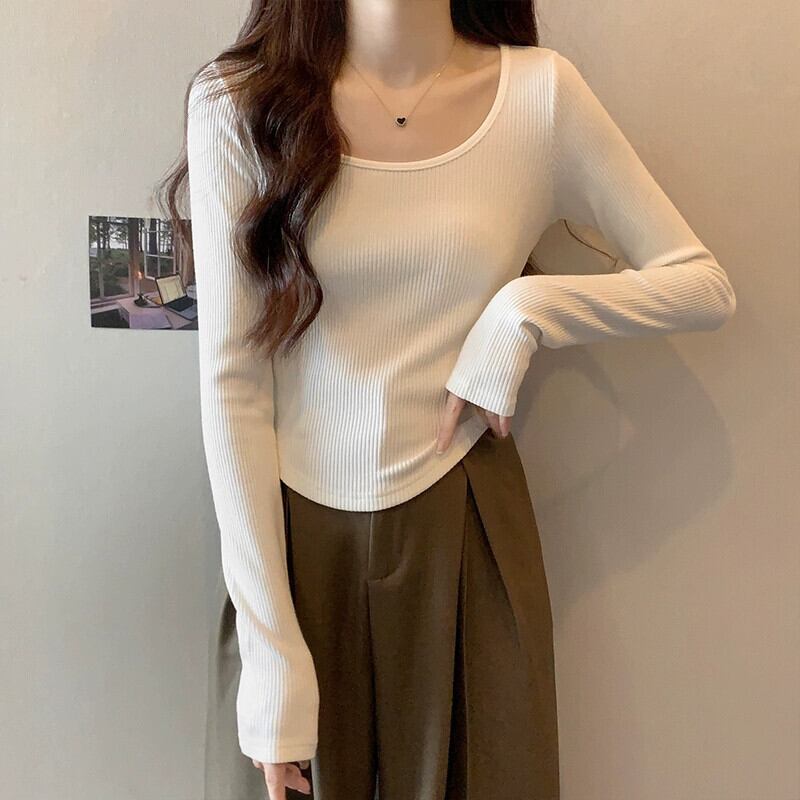 不規則なショート U ネックボトリングシャツ 2023 新しい女性の秋冬インナー長袖トップスファッショナブルなスリムスレッド Tシャツ ロング オータム 秋物 ウィンター 冬物 7460087239922992 | framboise21