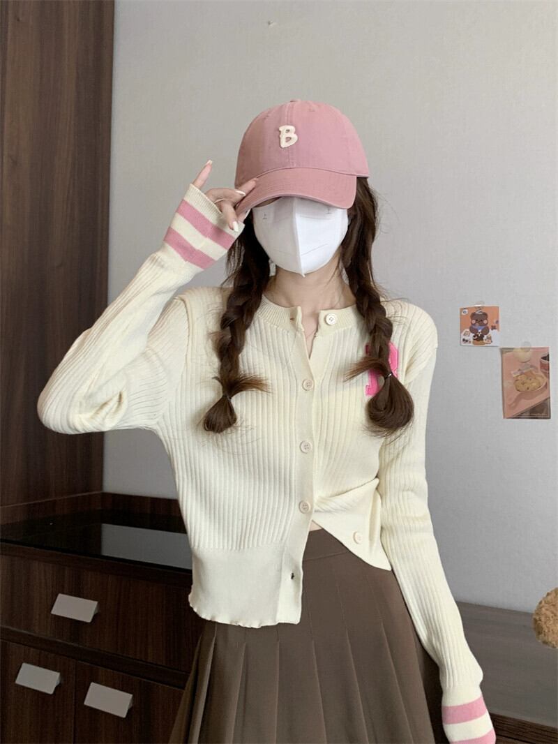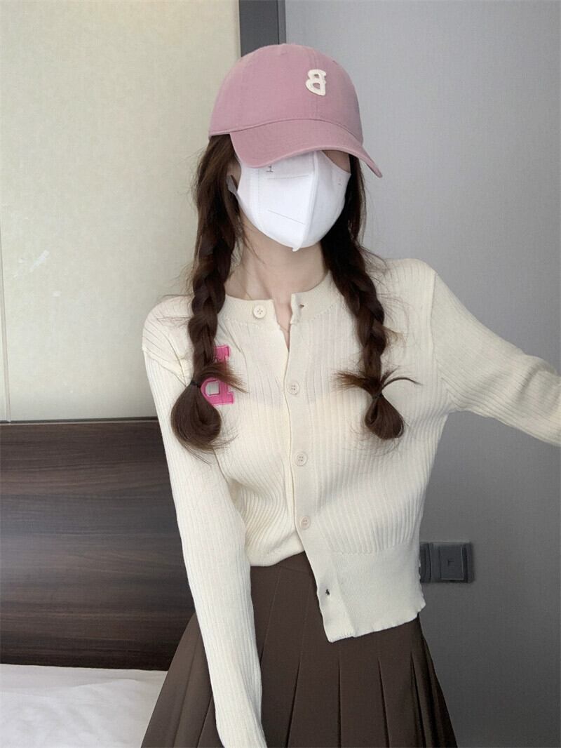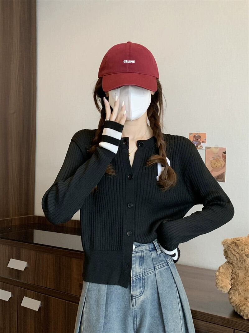 刺繍入り長袖ニットカーディガン、秋の薄手コートレディース、ゆったり、アインスタイル、多用途、ショートセーター小柄な人 ロング レッド オータム 秋物 7460015643829192 | framboise21