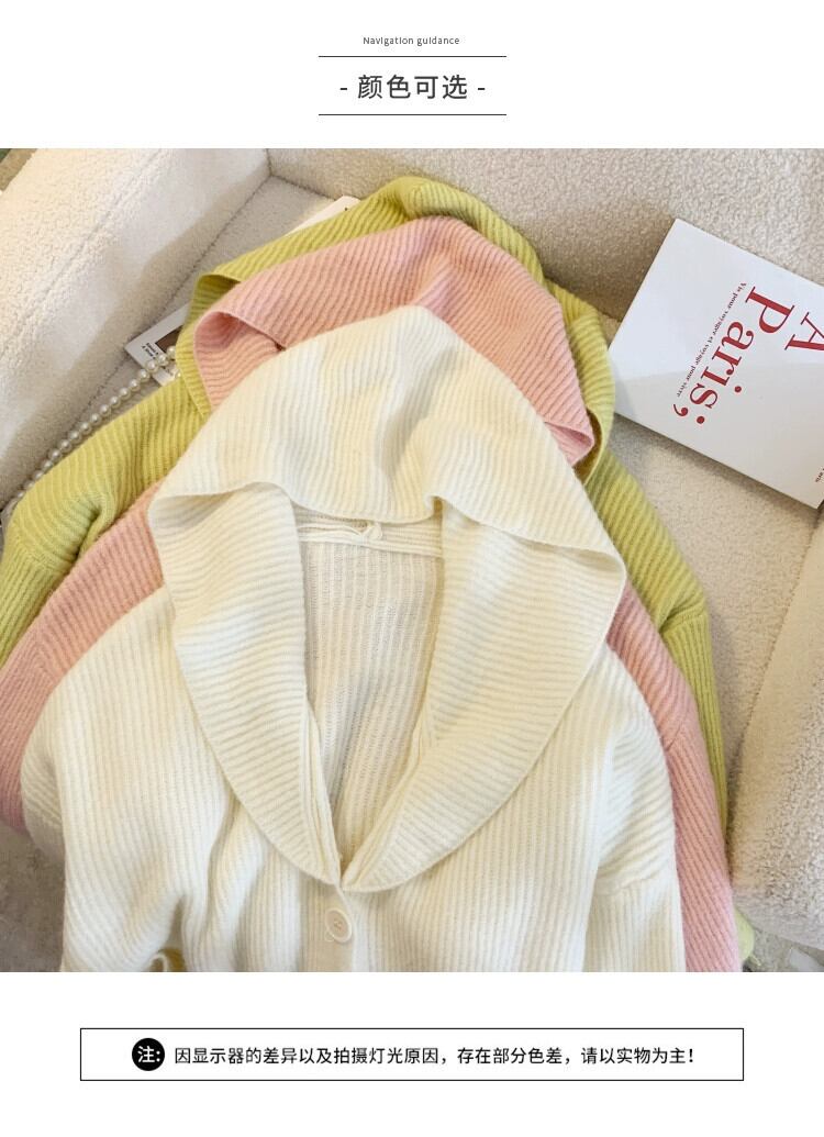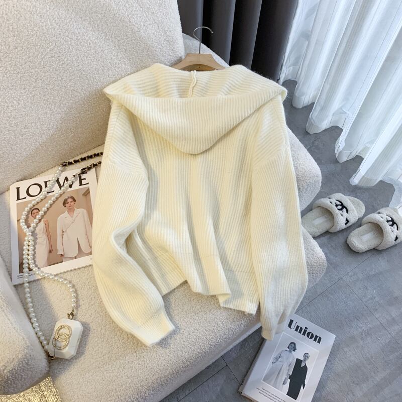 ショートフード付きセータージャケット女性 2023 秋と冬の新しいスタイルルーズアウターウェア eign スタイル万能長袖ニットカーディガン ロング オータム 秋物 ウィンター 冬物 7460024110135642 | framboise21