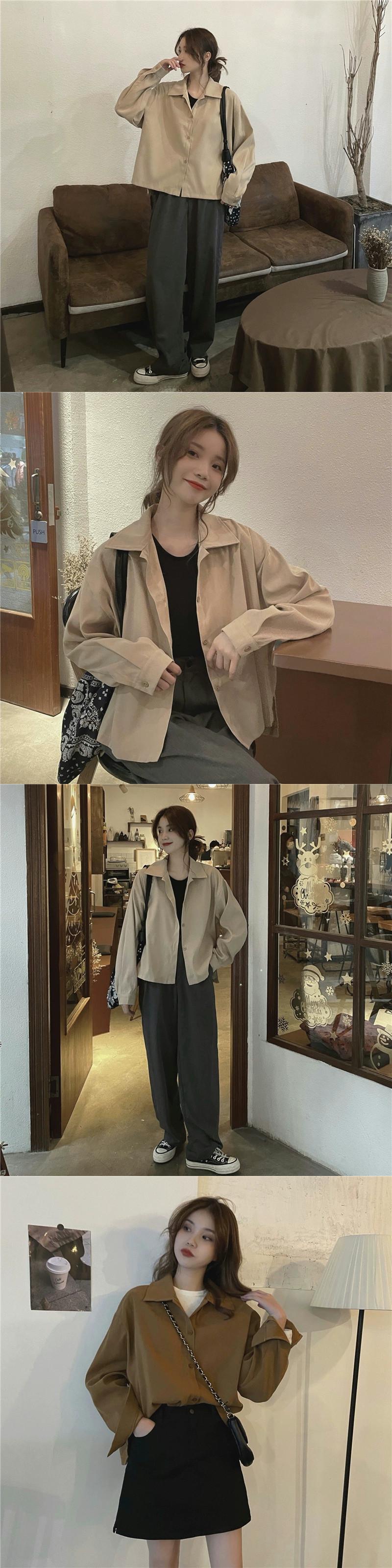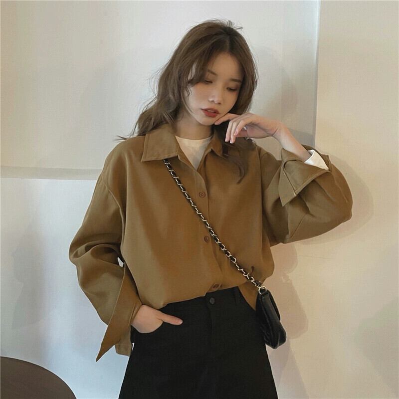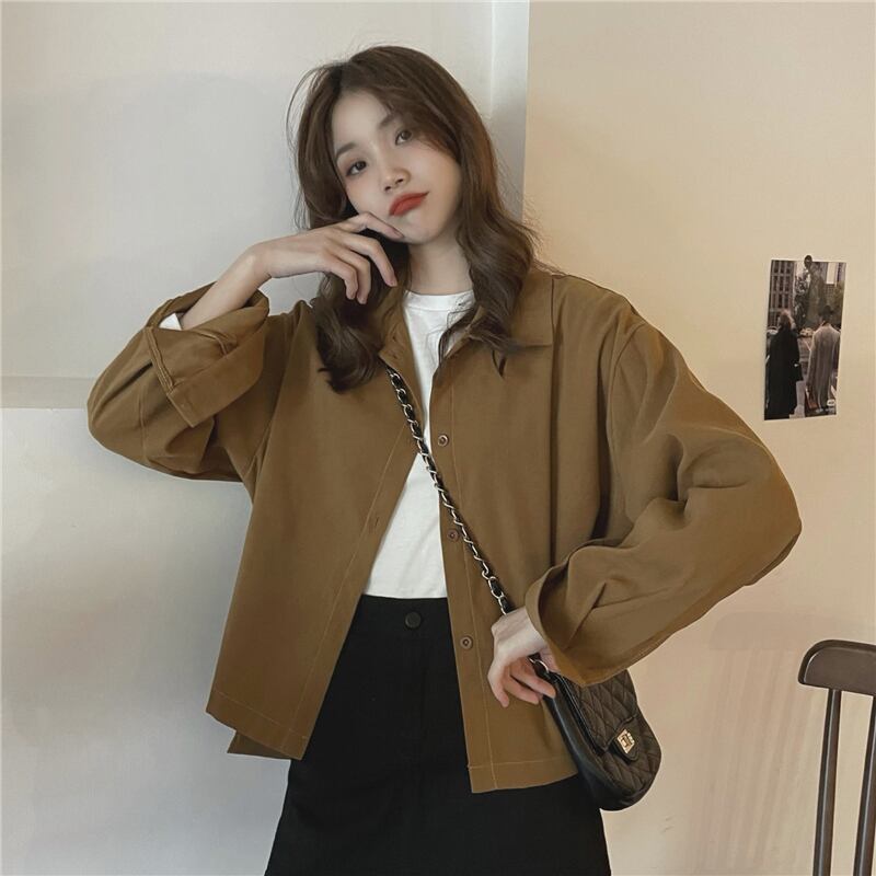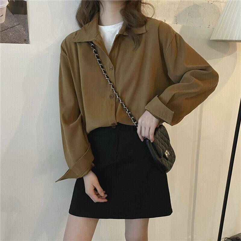 ブラウン肥厚シャツジャケット女性春と秋 2023 新デザインレトロルーズカジュアル長袖カーディガンシャツ ロング スプリング 春物 オータム 秋物 7460060738894089 | framboise21