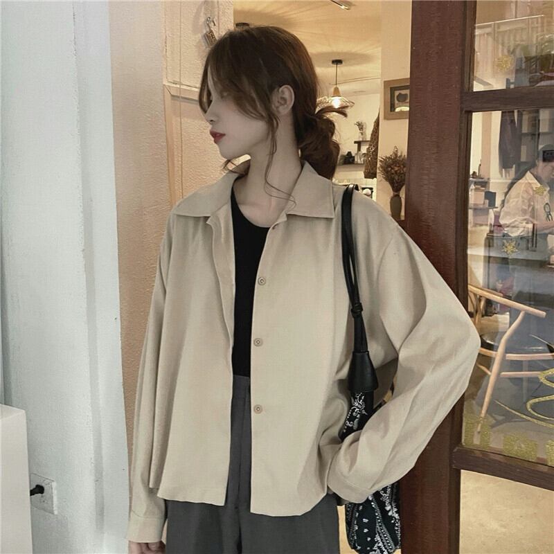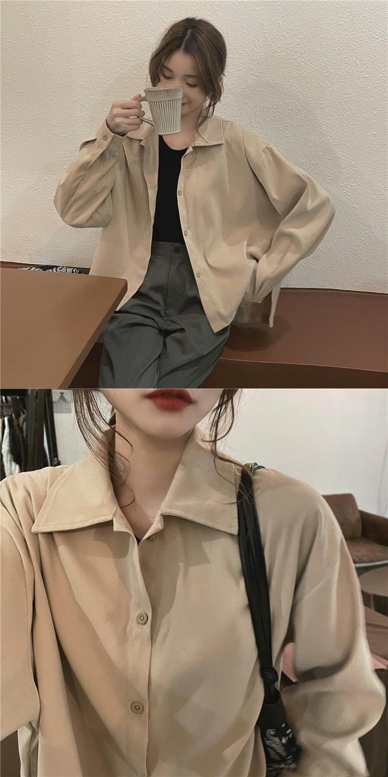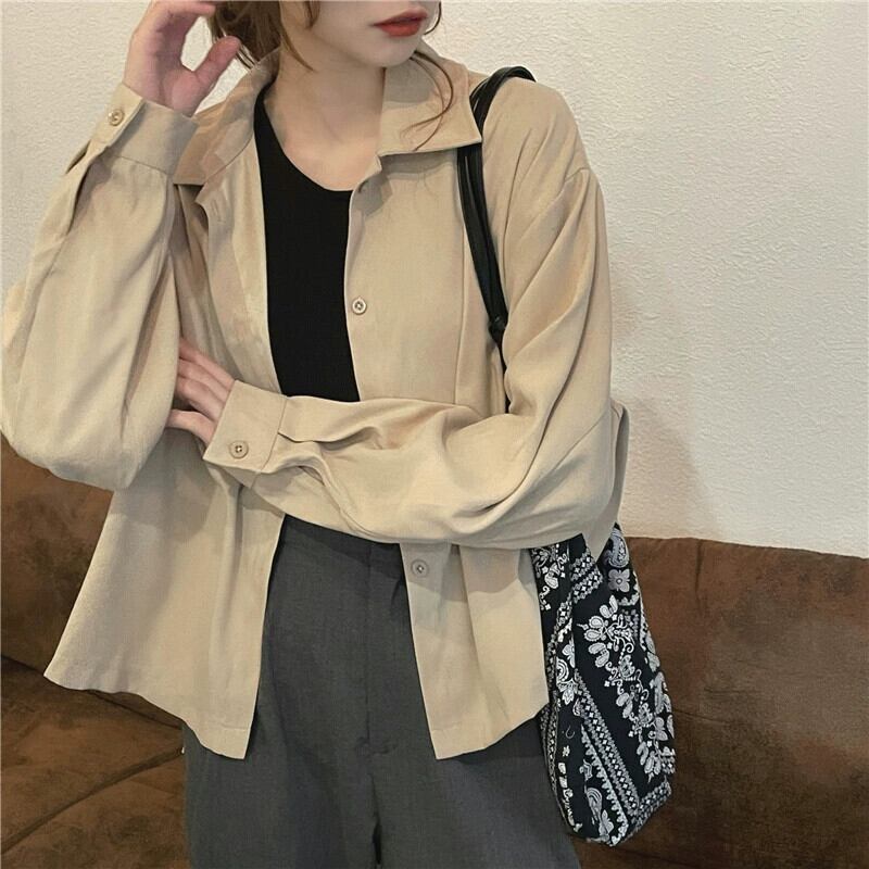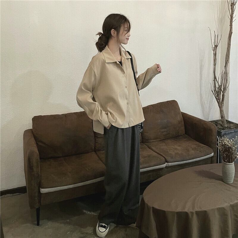 ブラウン肥厚シャツジャケット女性春と秋 2023 新デザインレトロルーズカジュアル長袖カーディガンシャツ ロング スプリング 春物 オータム 秋物 7460060738894089 | framboise21