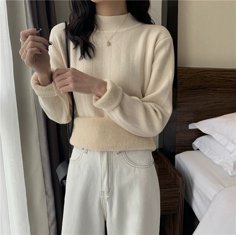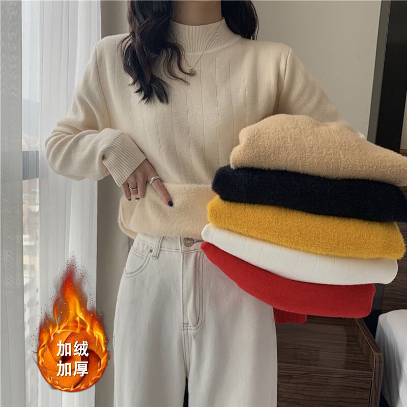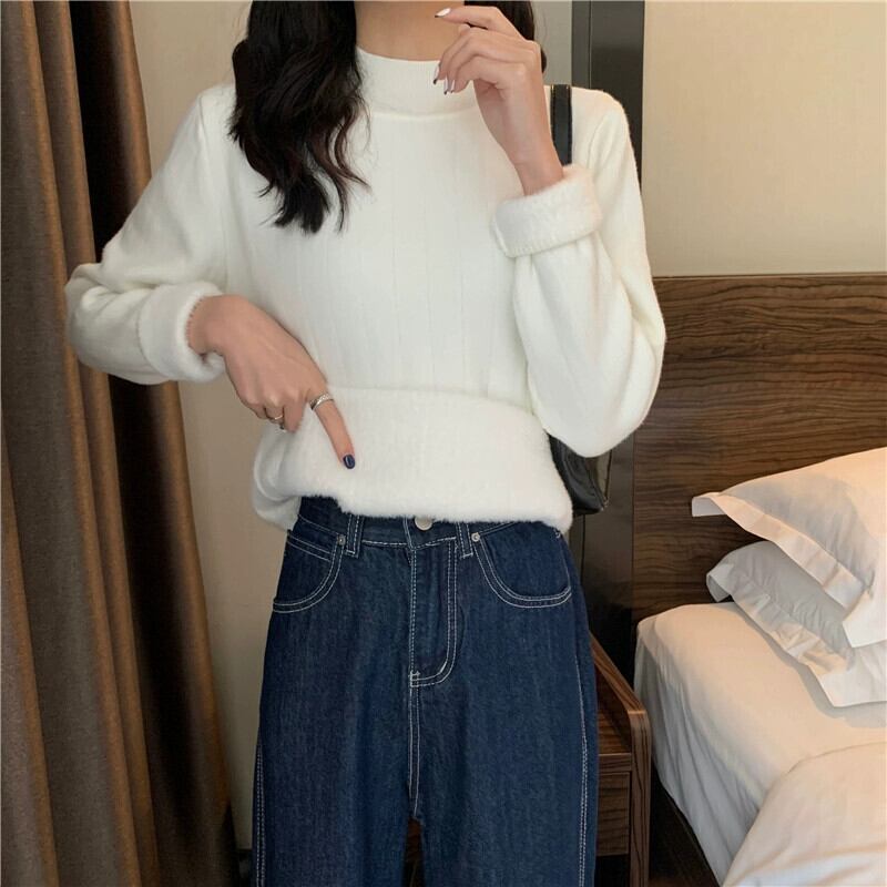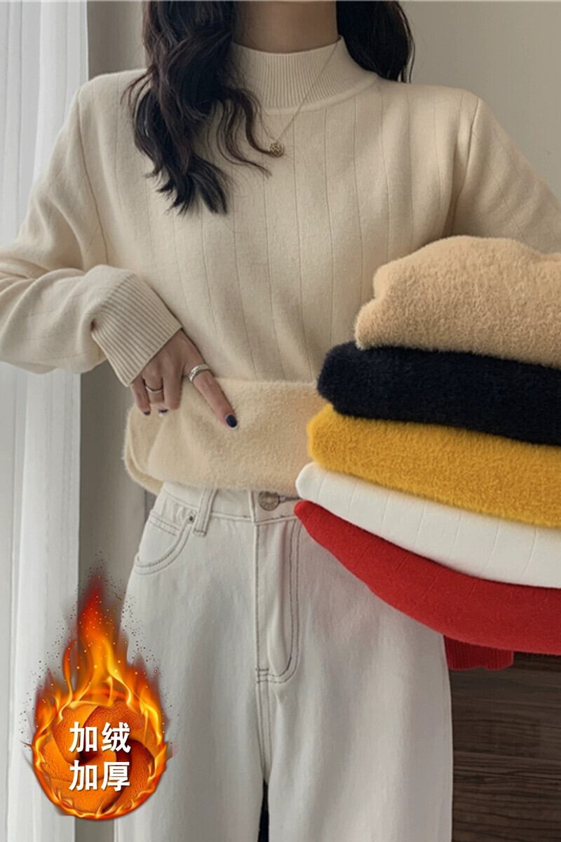 秋と冬のワンピースミンクベルベットセーターボトリングシャツレディース、ファッショナブルなスリムフィット、厚くて暖かいインナーハーフタートルネックセーター オータム 秋物 ウィンター 冬物 7460097642430440 | framboise21
