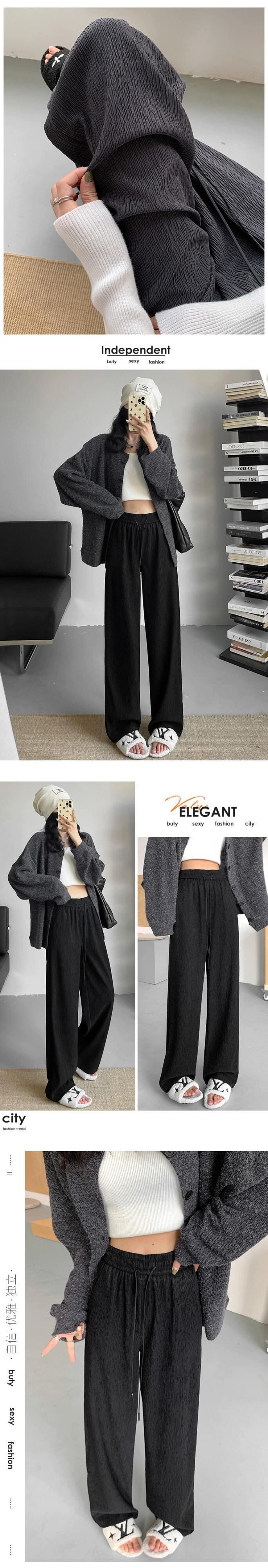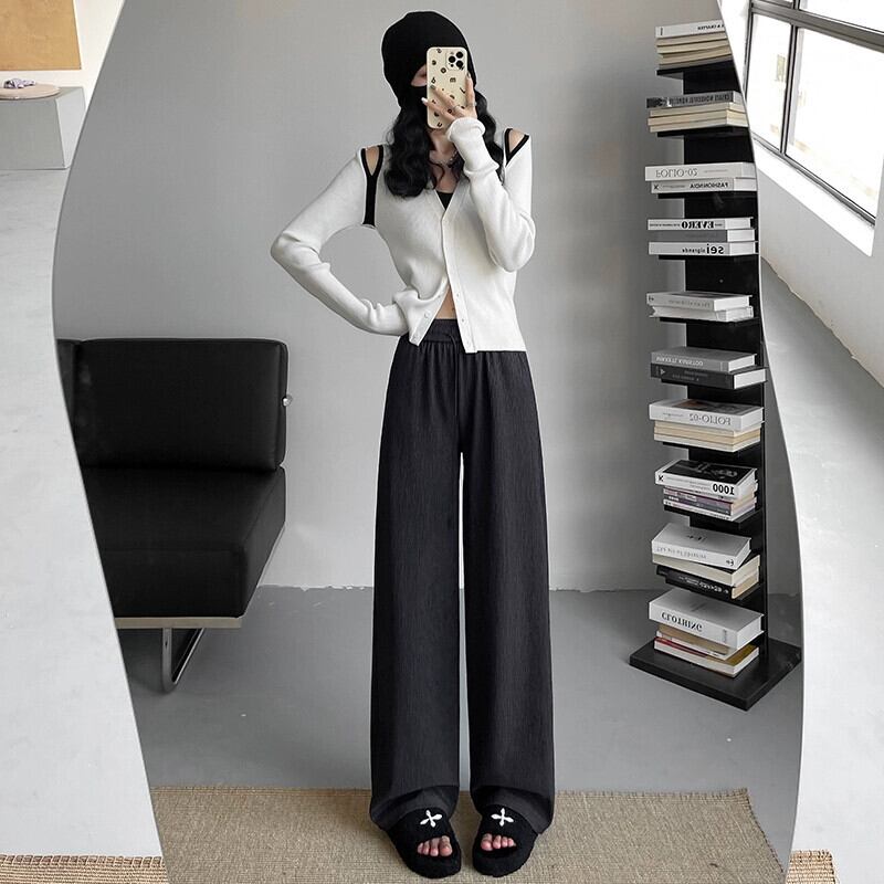 黒の狭いワイドレッグパンツの女性 2023 秋と冬の新しいハイウエストストレートレッグストレートレッグカジュアルテクスチャパンツ レッド ブラック オータム 秋物 ウィンター 冬物 7460034142756998 | framboise21