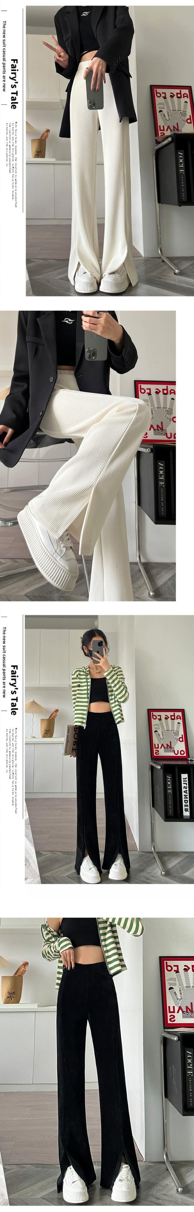秋冬のシェニールワイドレッグパンツの女性ハイウエストドレーププラスベルベットの厚みのあるコーデュロイパンツ、ストレートスリットとブーツカットパンツ オータム 秋物 ウィンター 冬物 7460069397069363 | framboise21
