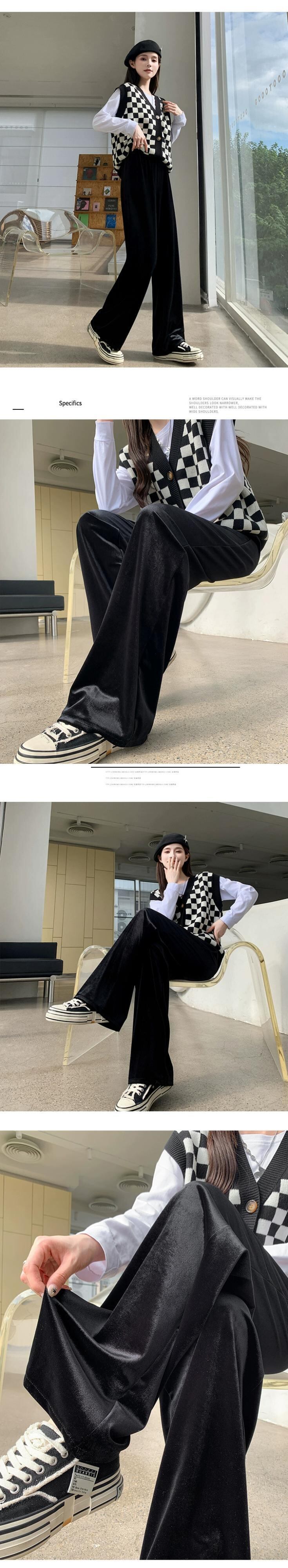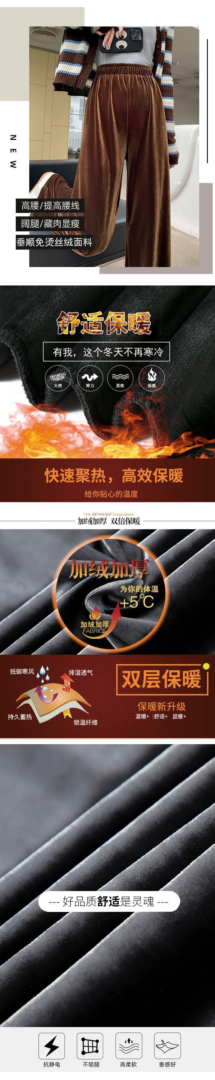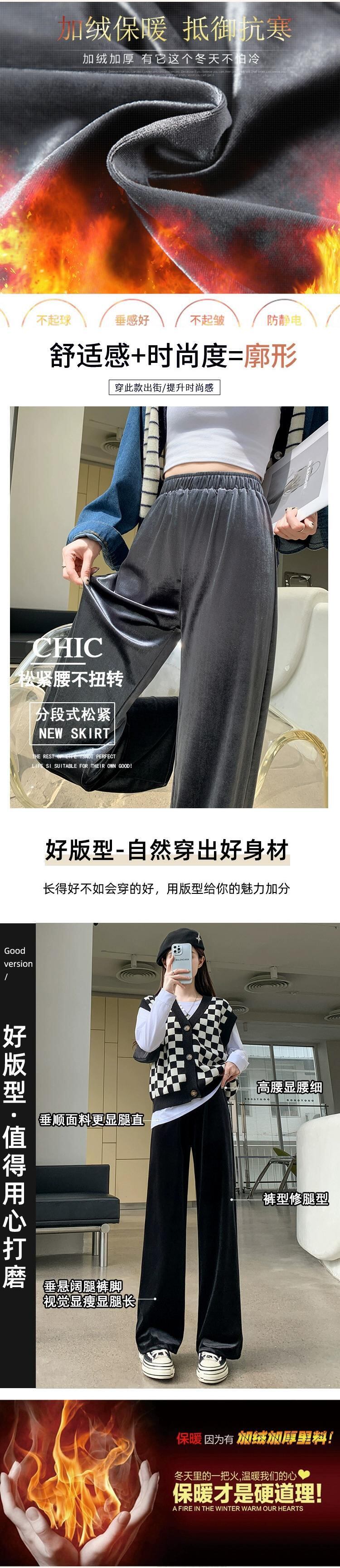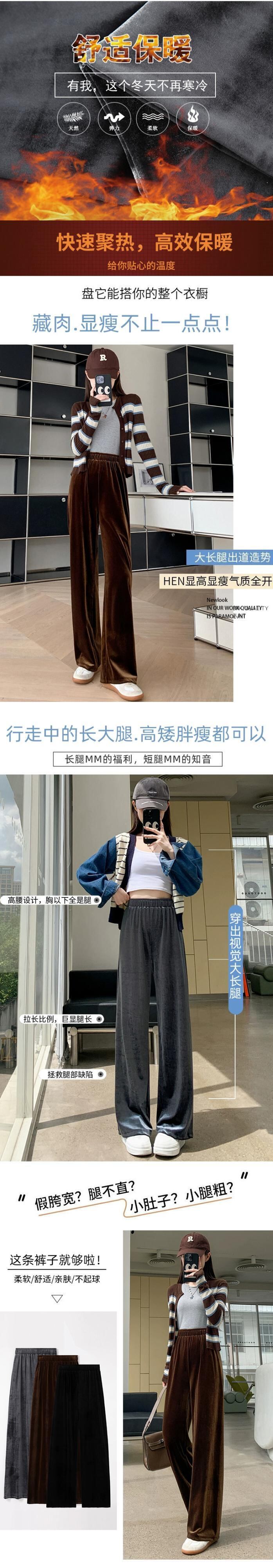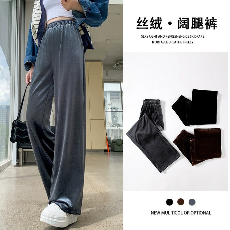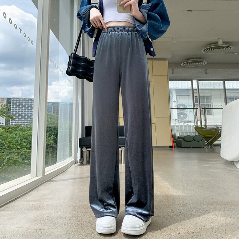ゴールドベルベットワイドレッグパンツ女性 2023 新しい秋と冬のベルベット肥厚パンツルーズストレートハイウエストドレープカジュアルパンツ ハイウェスト オータム 秋物 ウィンター 冬物 ワイドパンツ 7460032832133455 | framboise21