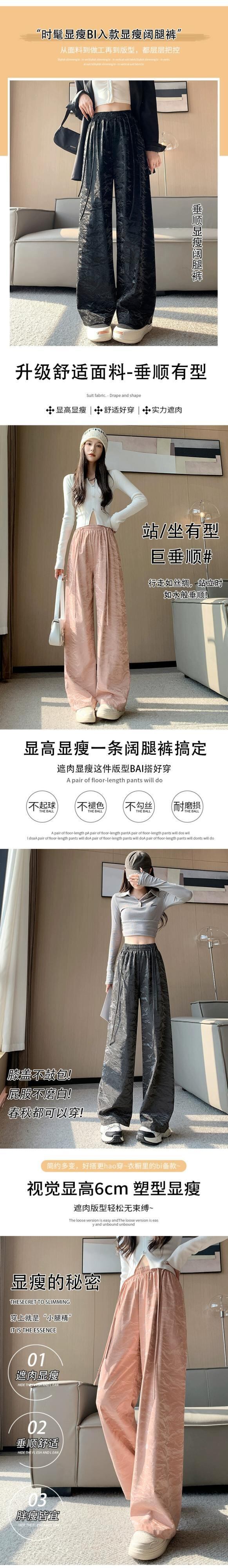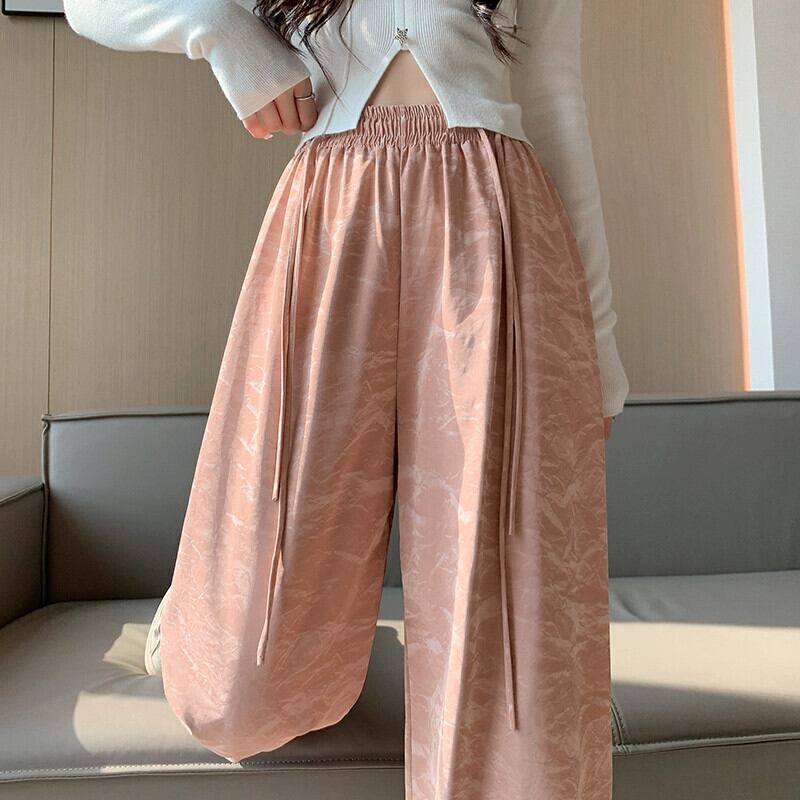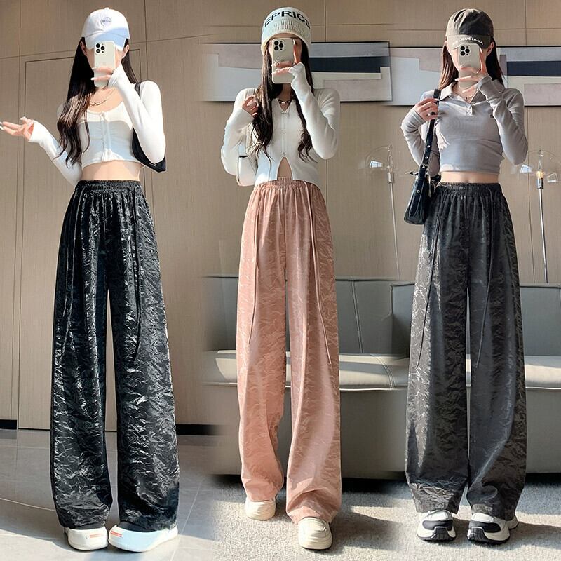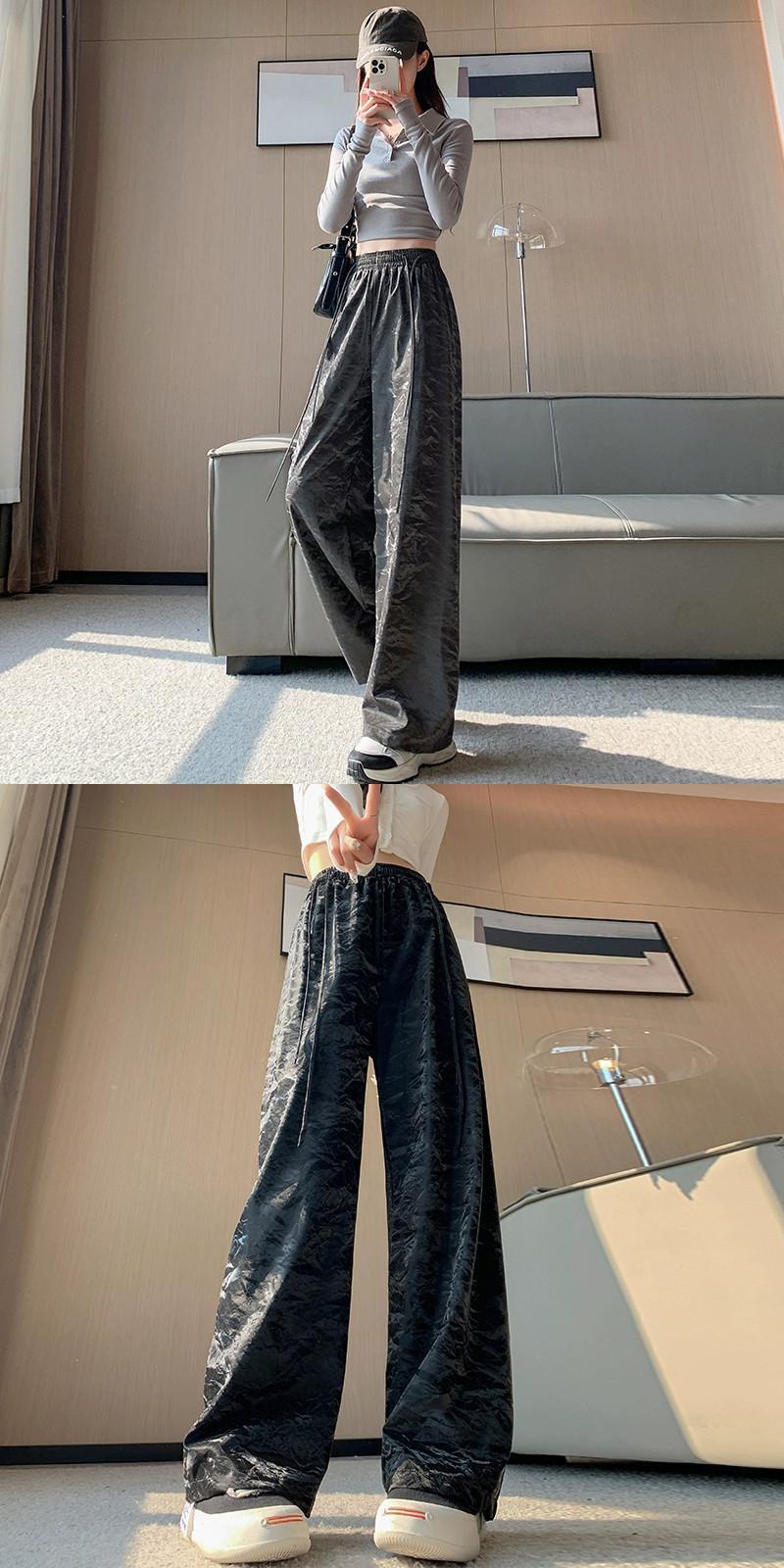 PU レザーワイドレッグパンツの女性の秋冬 2023 新しいレザーパンツハイウエストルーズカジュアルストレートレッグテクスチャードパンツピンク レッド オータム 秋物 ウィンター 冬物 7460038717980349 | framboise21