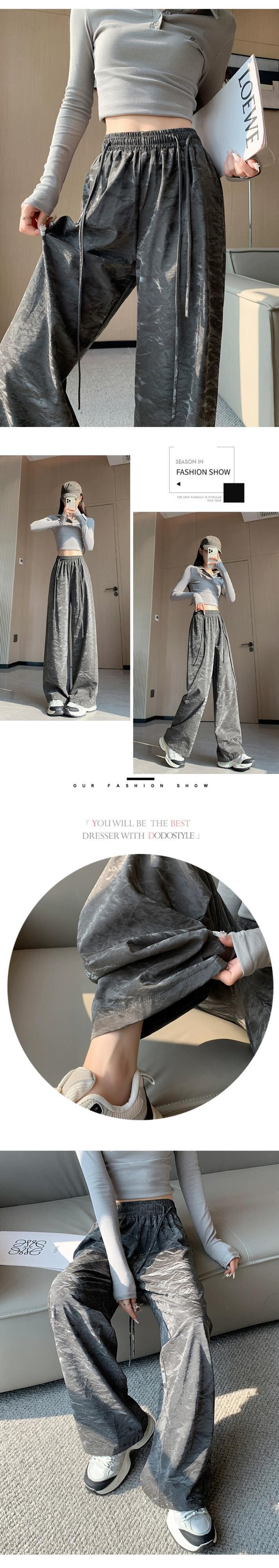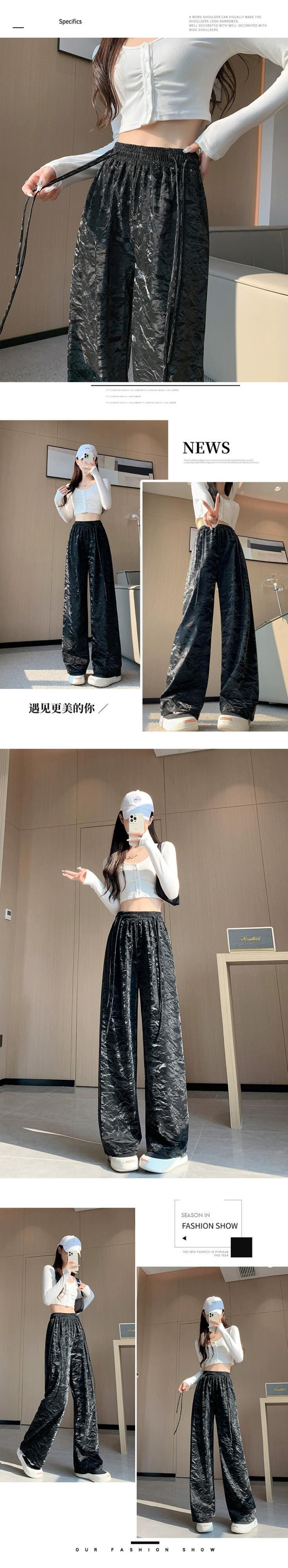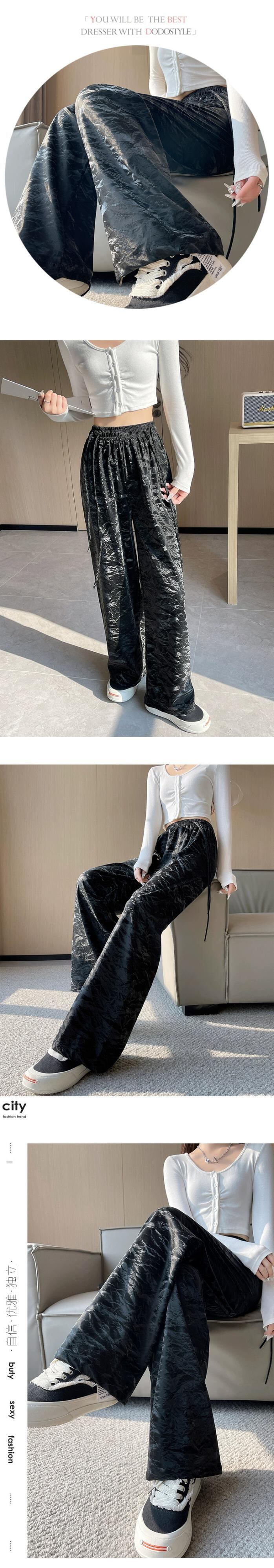 PU レザーワイドレッグパンツの女性の秋冬 2023 新しいレザーパンツハイウエストルーズカジュアルストレートレッグテクスチャードパンツピンク レッド オータム 秋物 ウィンター 冬物 7460038717980349 | framboise21