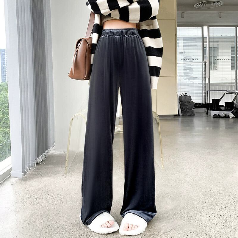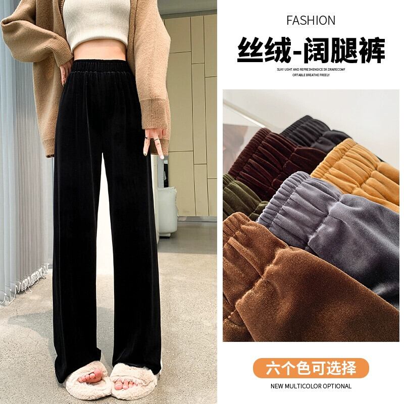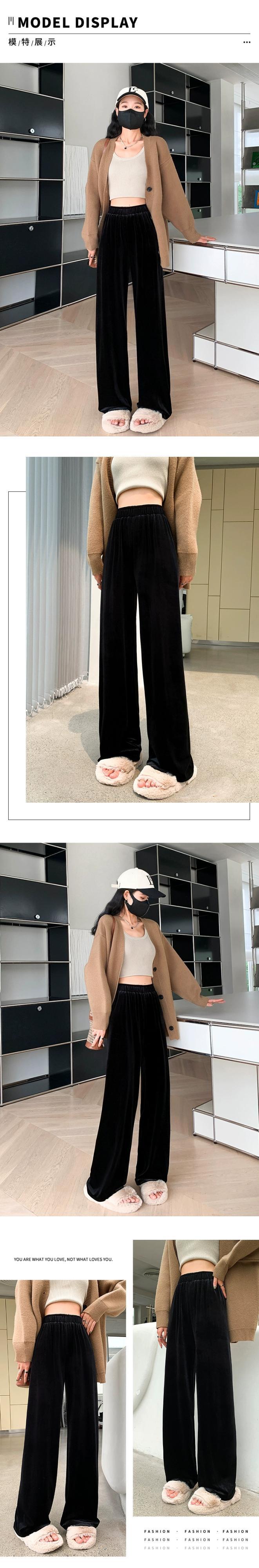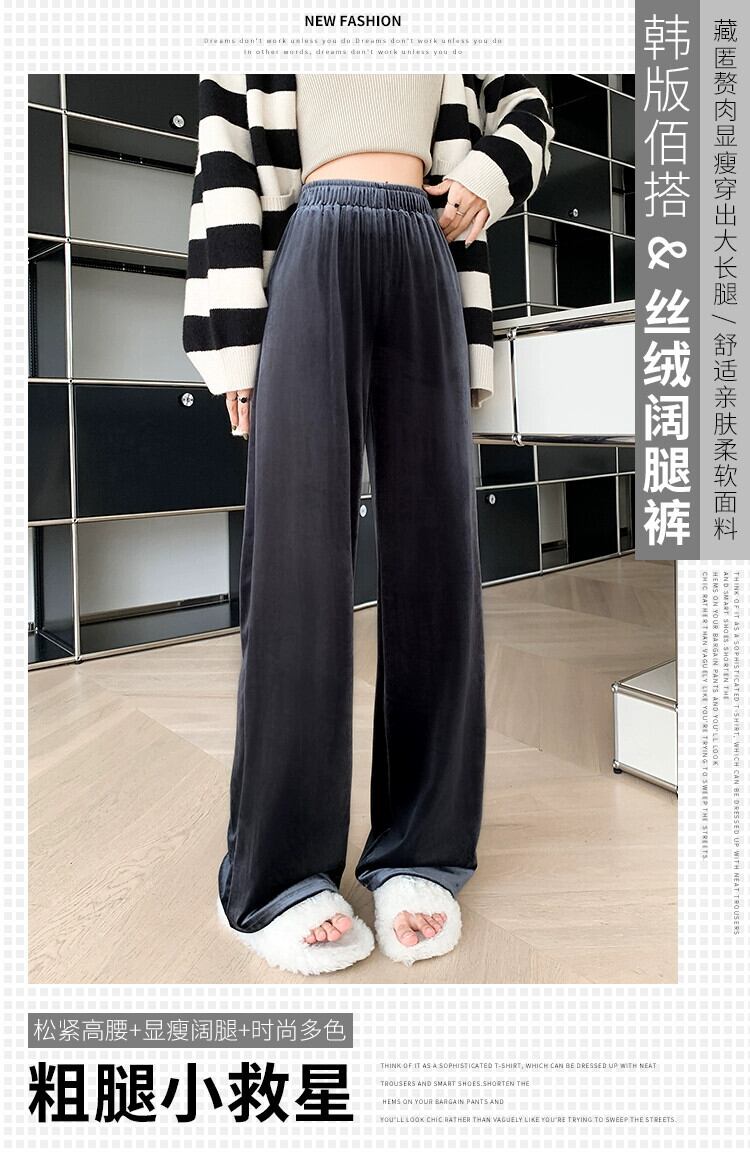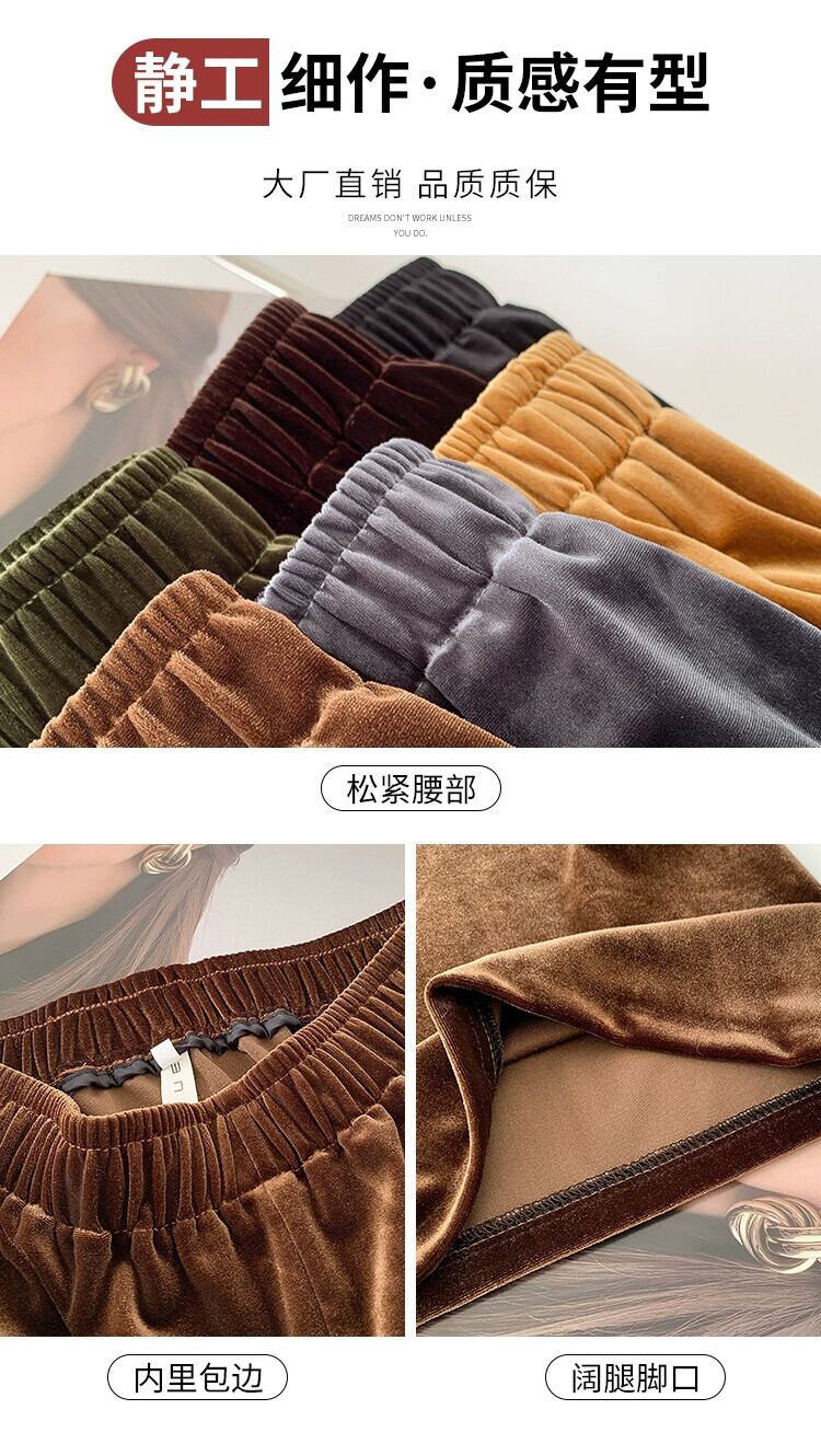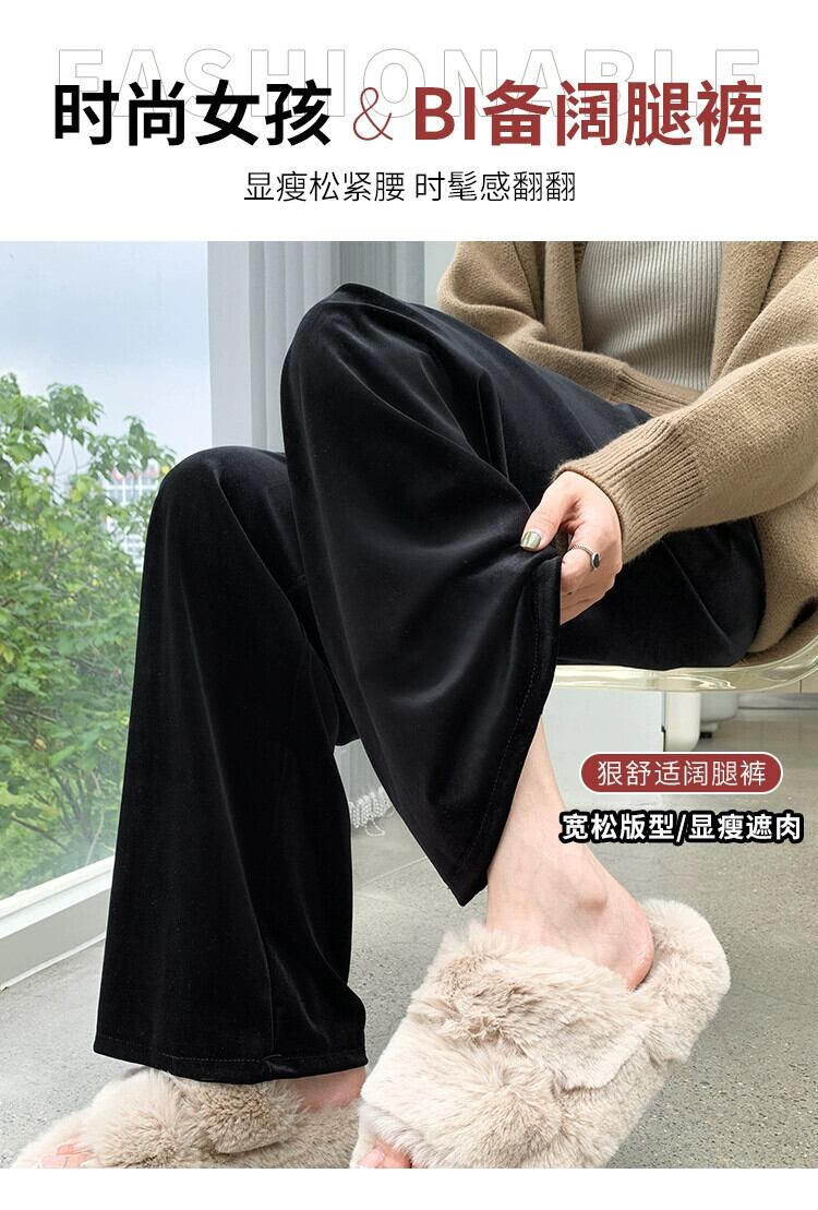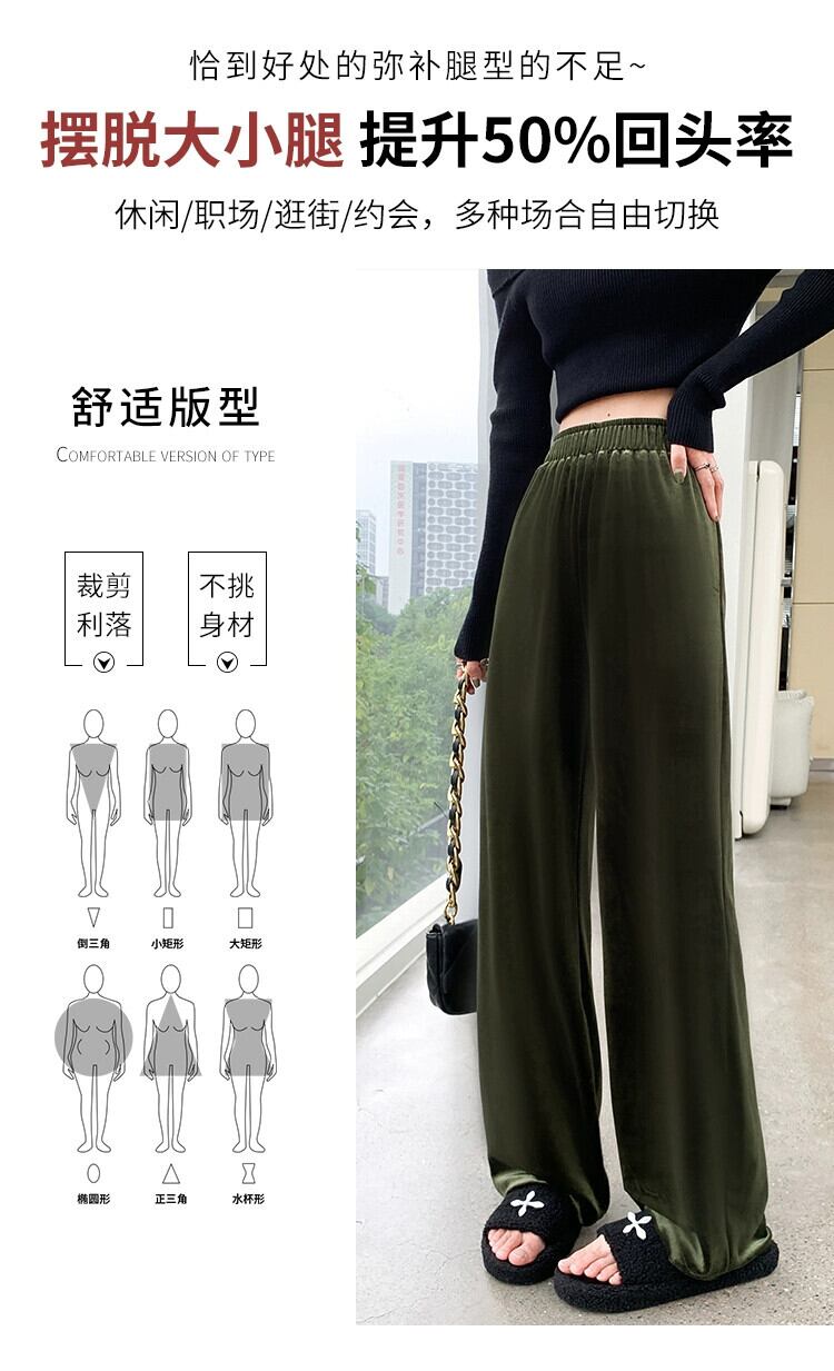 肥厚ベルベットワイドレッグパンツ女性 2023 秋と冬の新ハイウエスト痩身ドレープストレートナローバージョンフロアモップカジュアルパンツ オータム 秋物 ウィンター 冬物 7460046473052298 | framboise21
