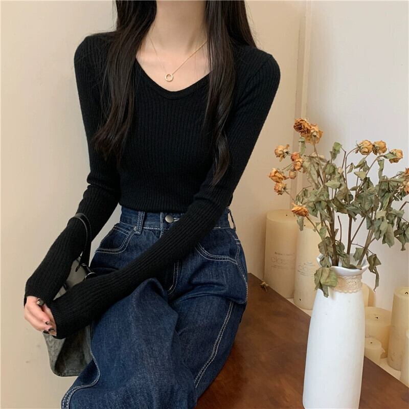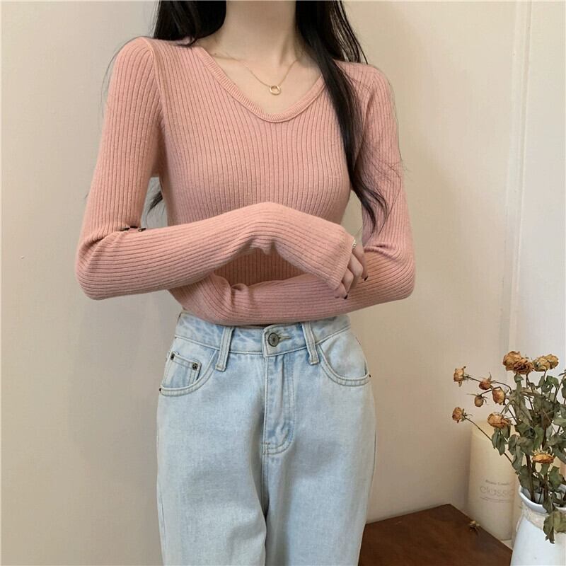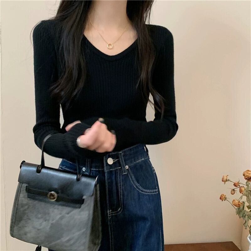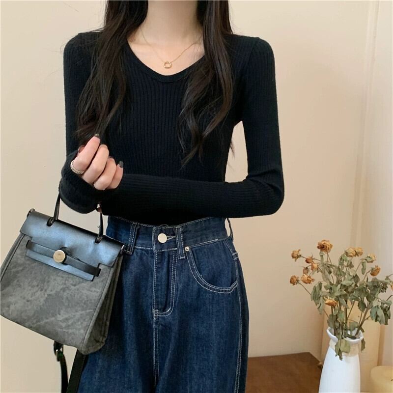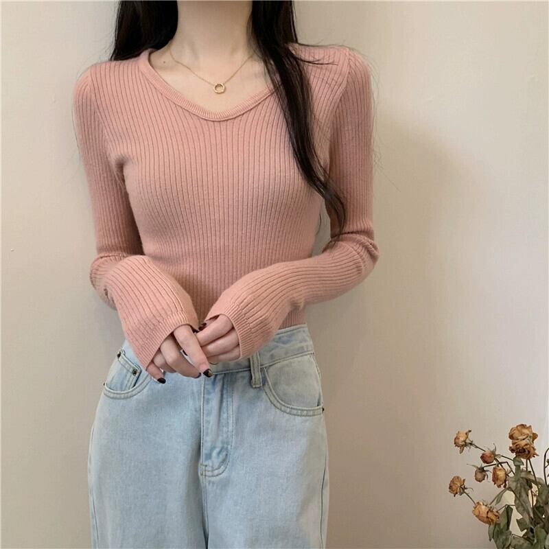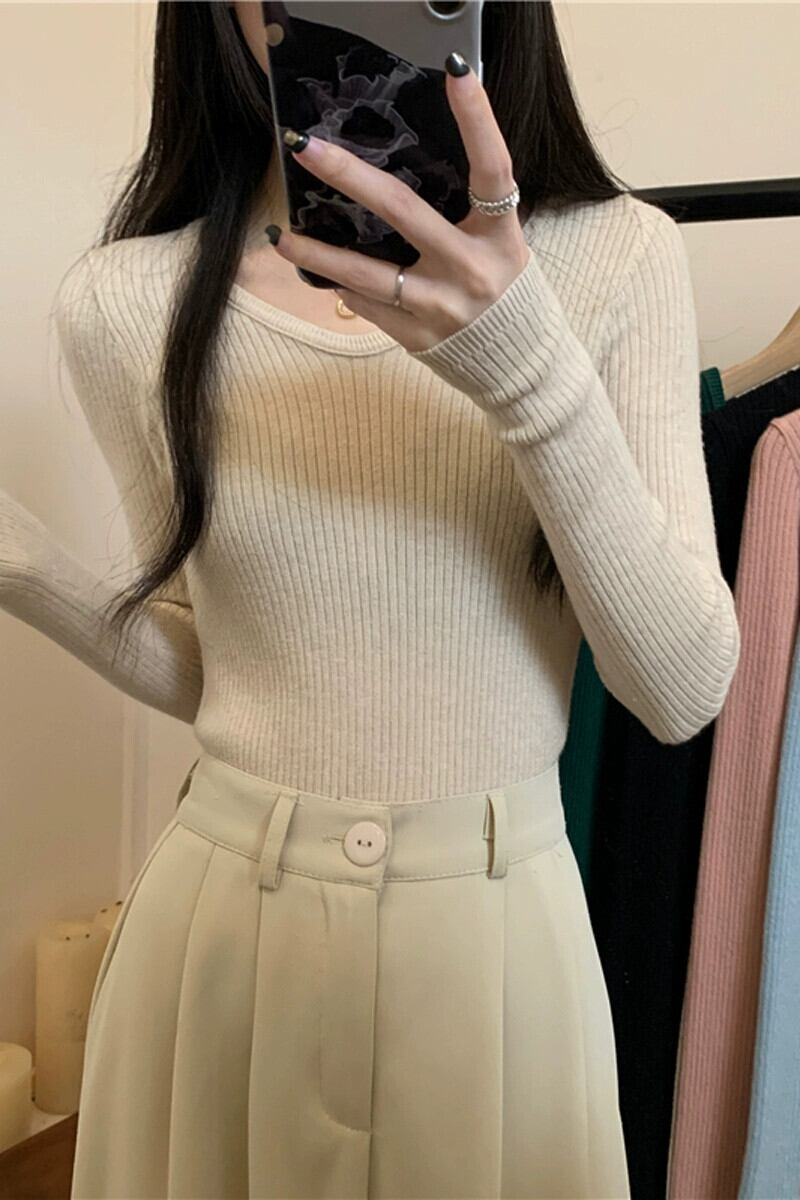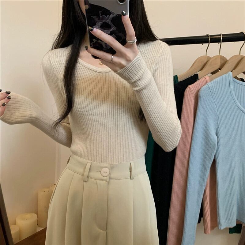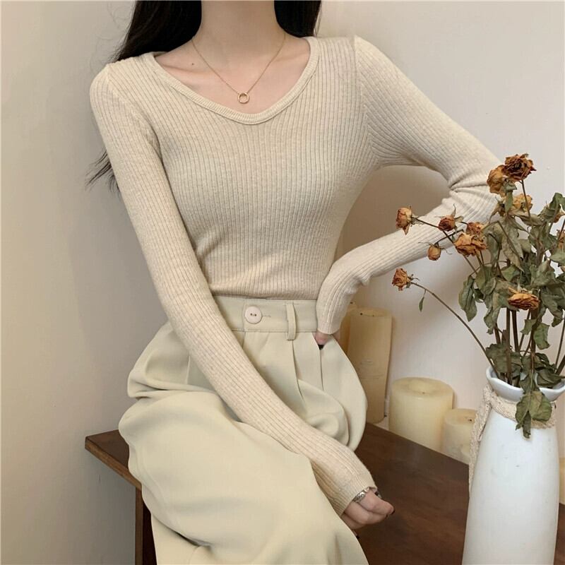 スリム長袖ボトリングシャツ 2023 新しい女性の秋冬スタイルのインナーウェアスリムで多用途のショートニットアプリコットセーター ロング オータム 秋物 ウィンター 冬物 7460058335516988 | framboise21