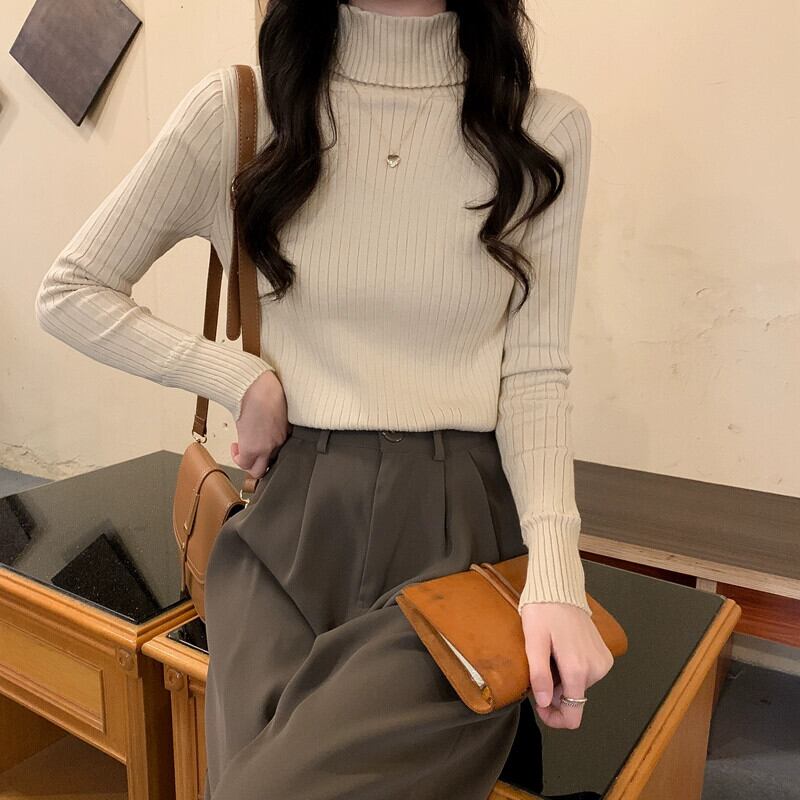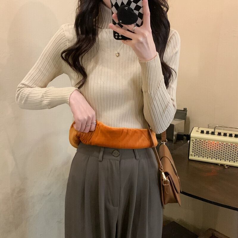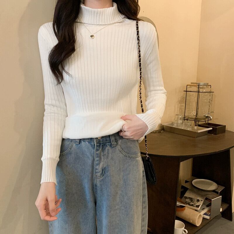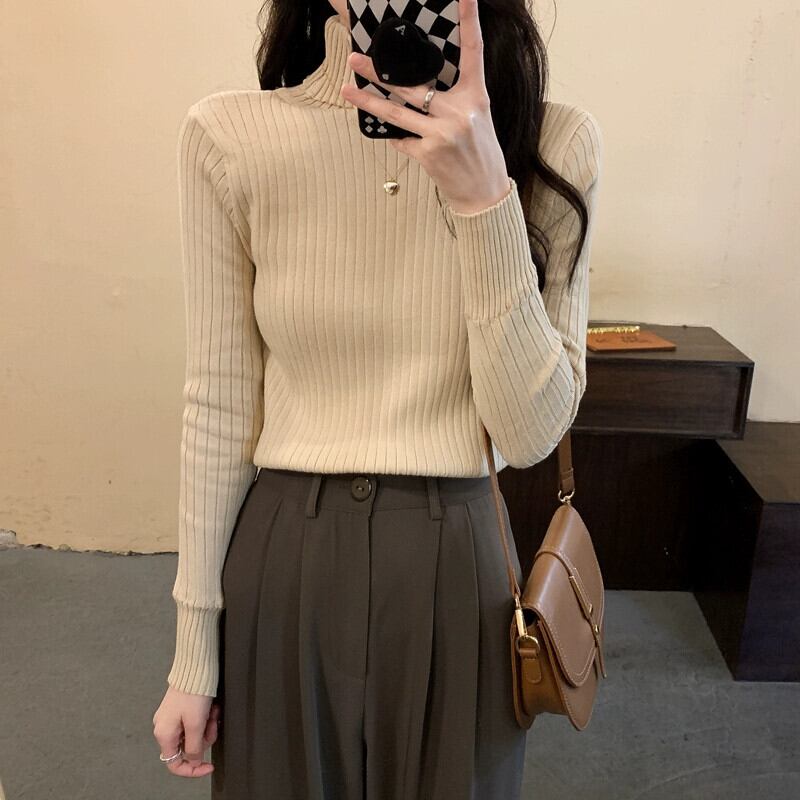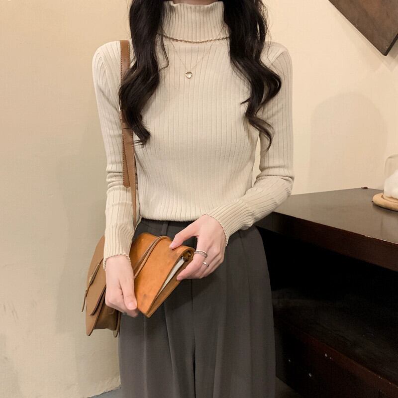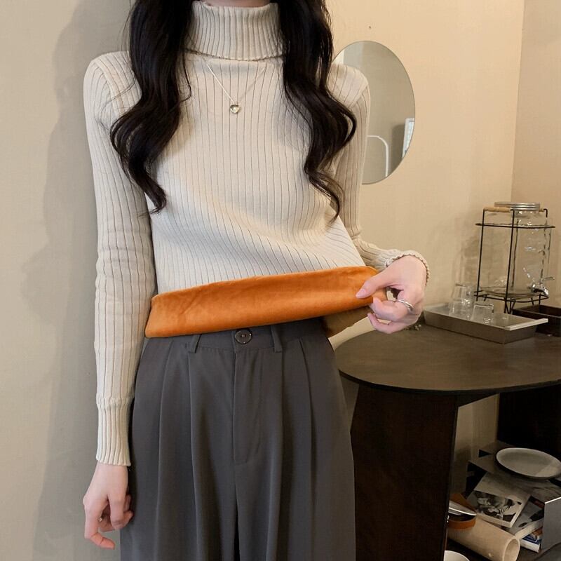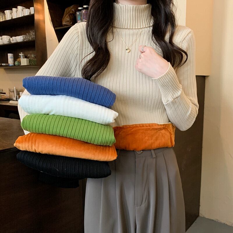 秋と冬の厚いベルベットのボトムシャツ女性、ハイエンドのスリムフィットインナーレイヤーと暖かいオールインワンのミンクベルベットニットタートルネックセーター オータム 秋物 ウィンター 冬物 7460040246599948 | framboise21