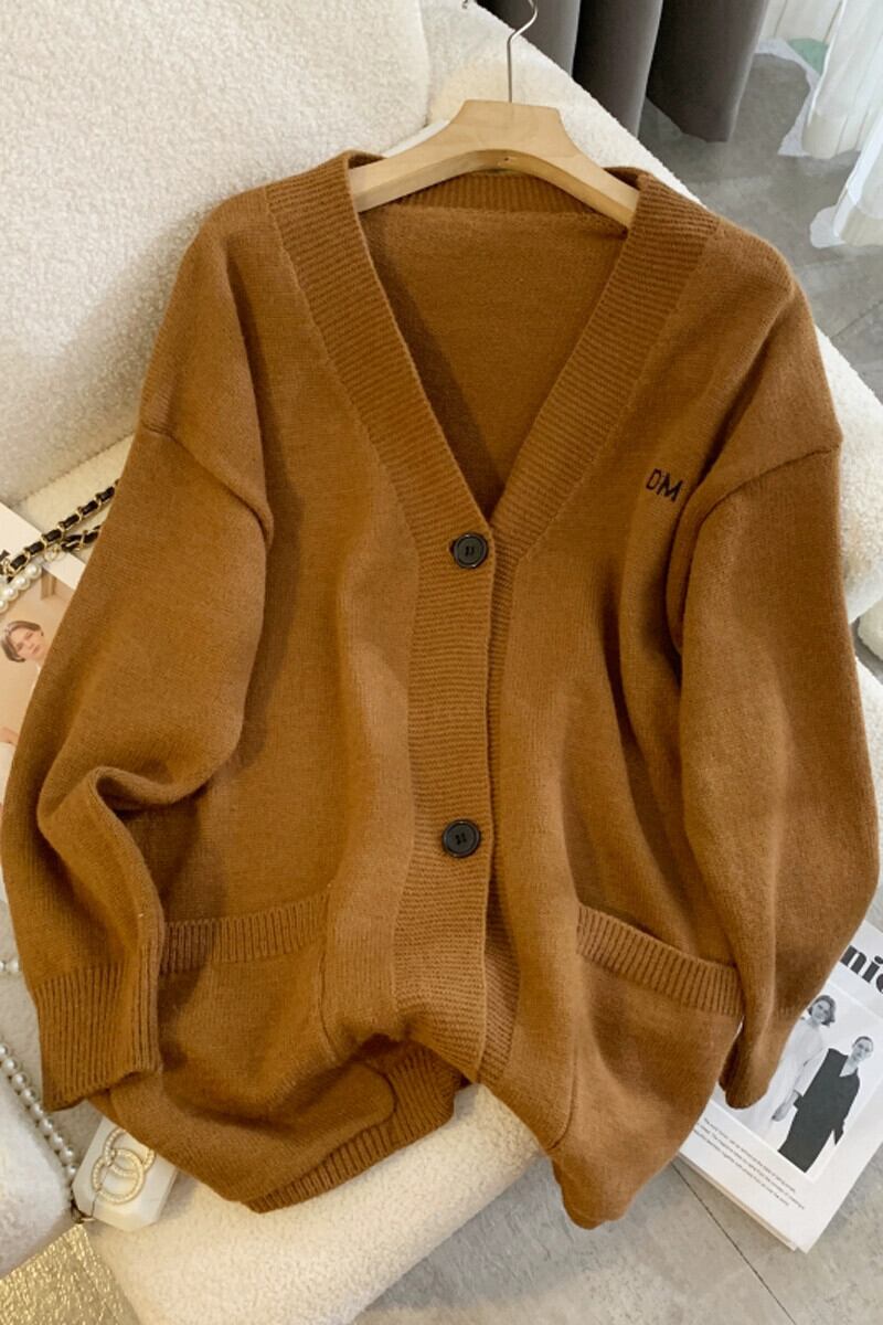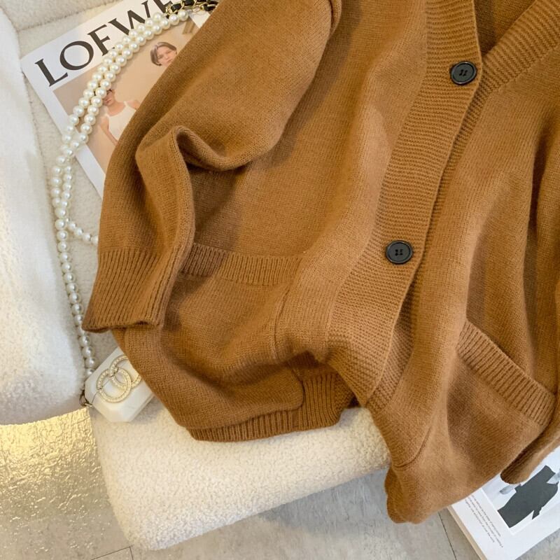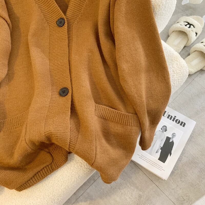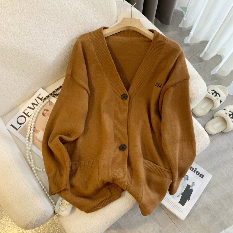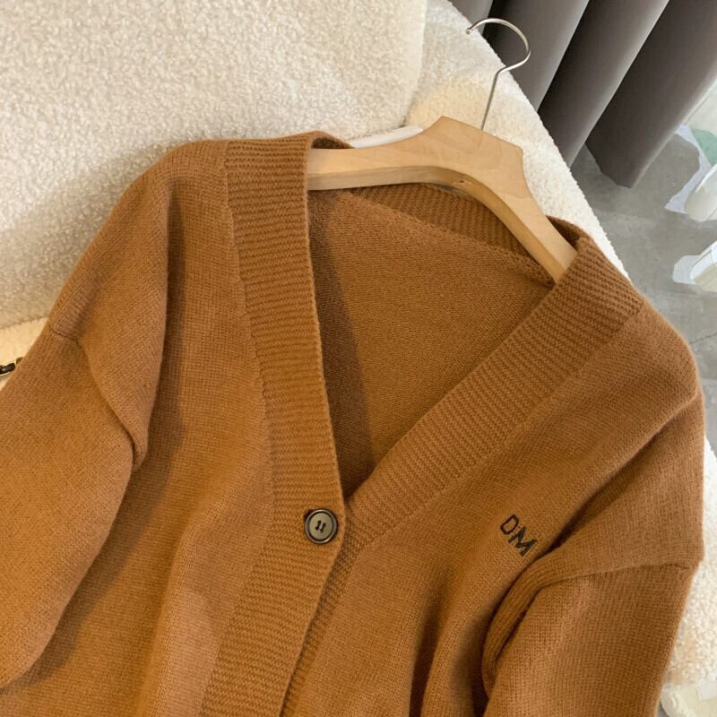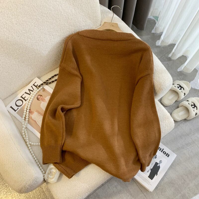 ミッドレングスのセータージャケットの女性の秋冬 2023 新しいルーズで怠惰なアウターウェア多用途長袖 V ネックニットカーディガン ロング オータム 秋物 ウィンター 冬物 Vネック 7460019691970547 | framboise21