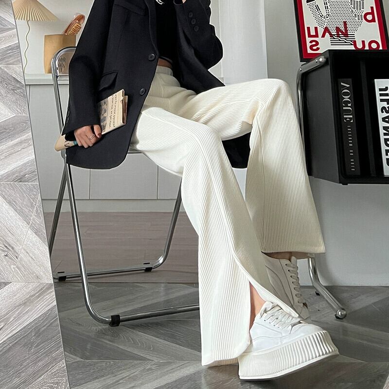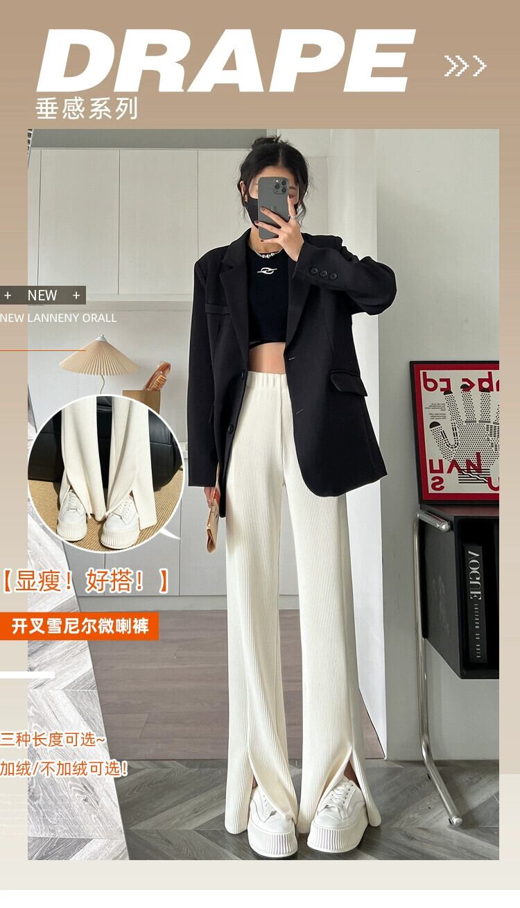 秋冬のベルベットと厚みのあるコーデュロイフレアパンツの女性、ハイウエスト、スリムでドレープのある、カジュアルな細いシェニールワイドレッグパンツ レッド オータム 秋物 ウィンター 冬物 7460038393068885 | framboise21