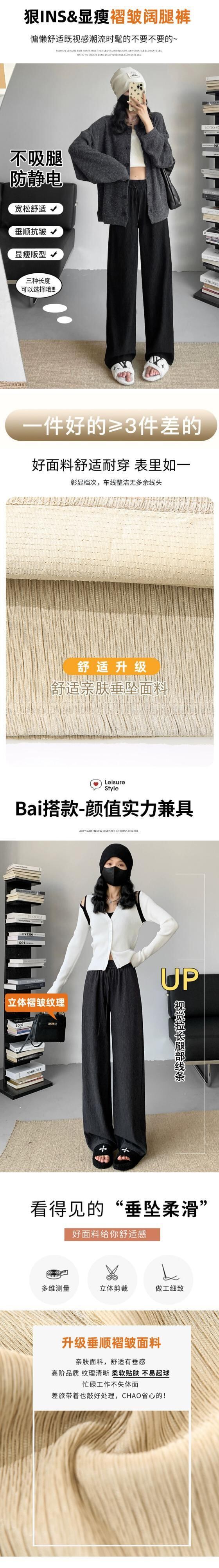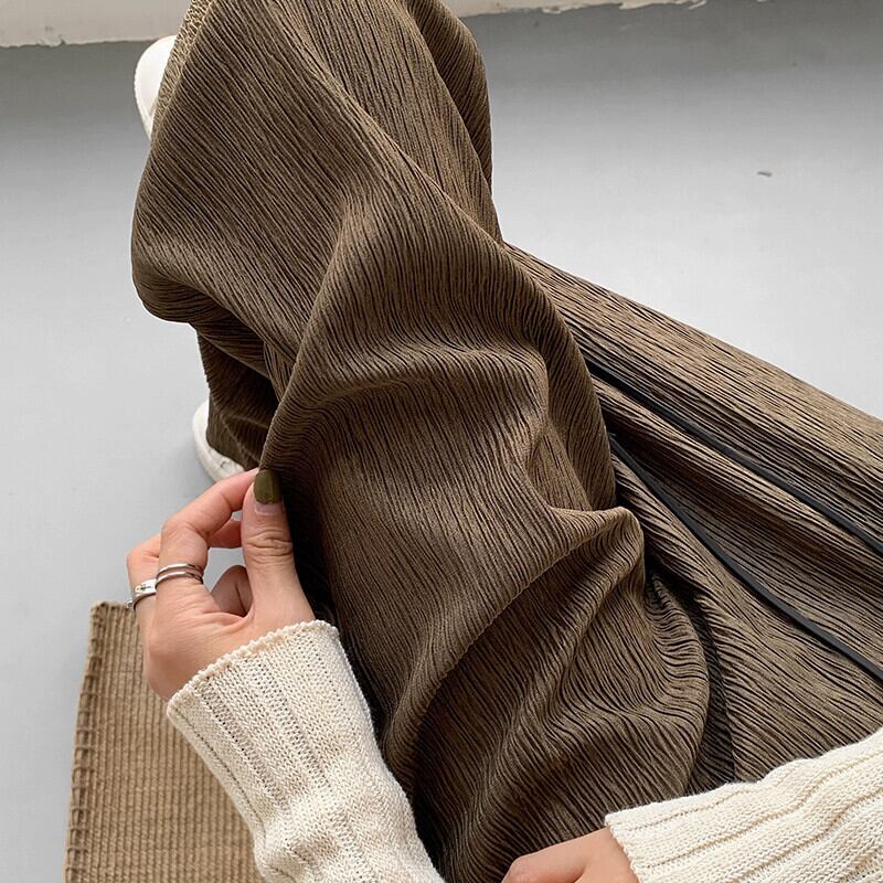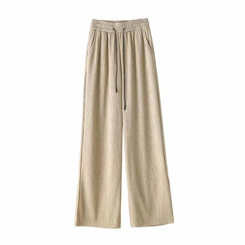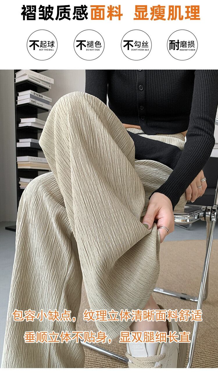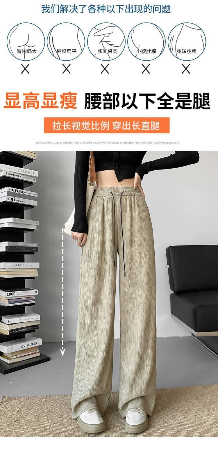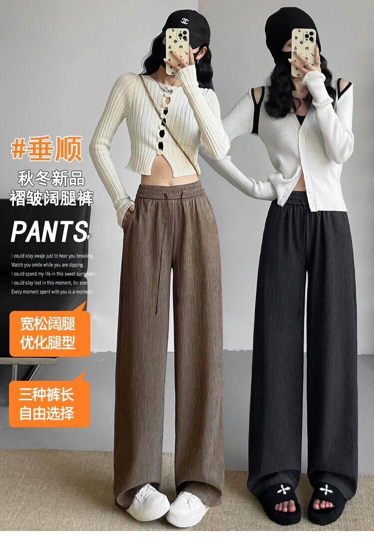 テクスチャードナローワイドレッグパンツ女性 2023 秋と冬の新ハイウエスト痩身ドレープストレートプリーツカジュアルフロアモップパンツ レッド オータム 秋物 ウィンター 冬物 7460047561015359 | framboise21