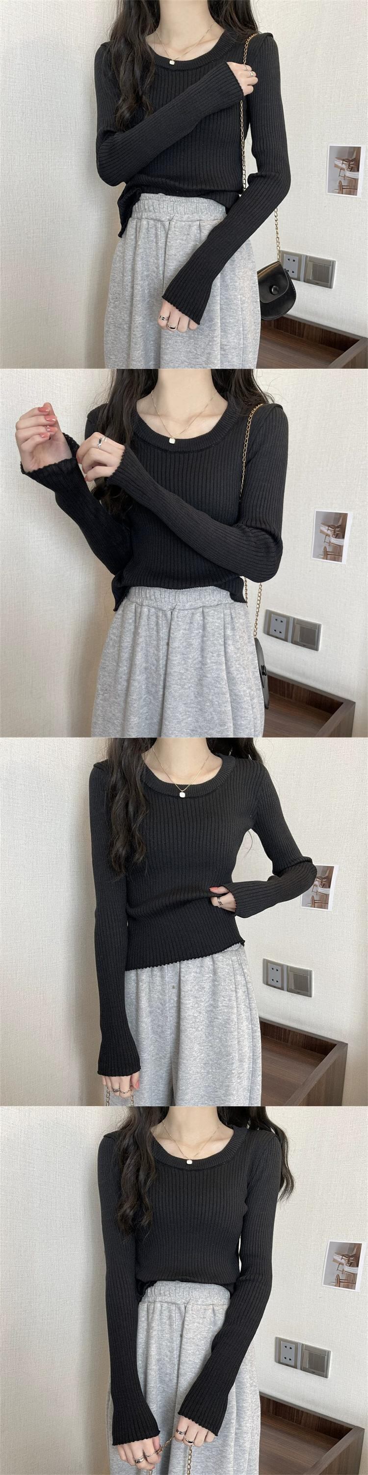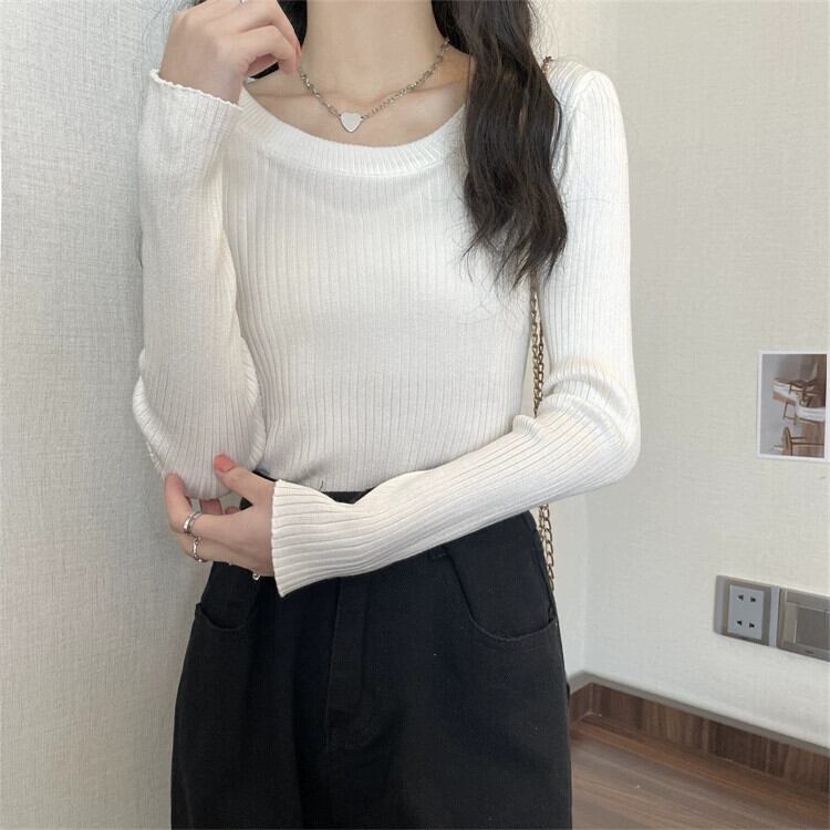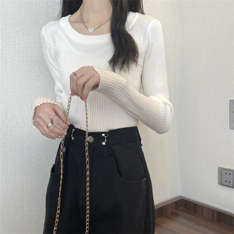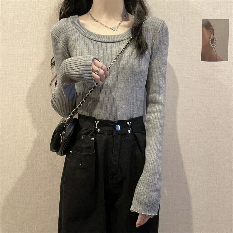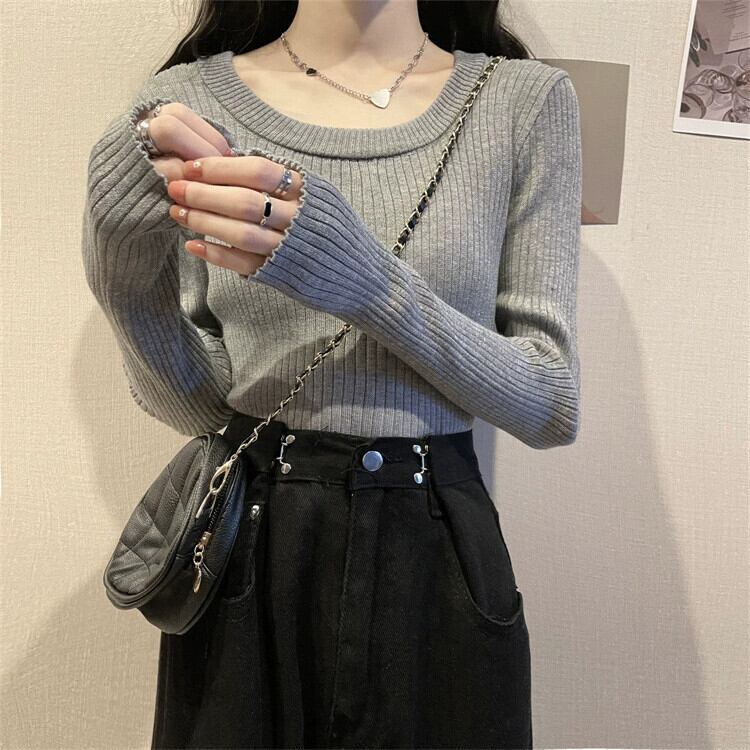 グレーニット長袖ボトリングシャツ 2023 新しい女性の秋冬スリムでスタイリッシュなインナーハイウエストショートセーター ロング オータム 秋物 ウィンター 冬物 7460047443752351 | framboise21