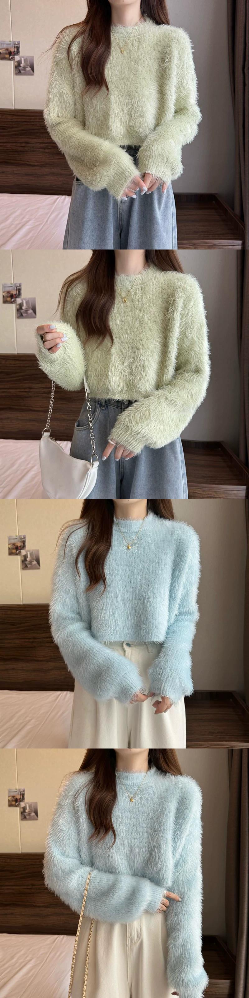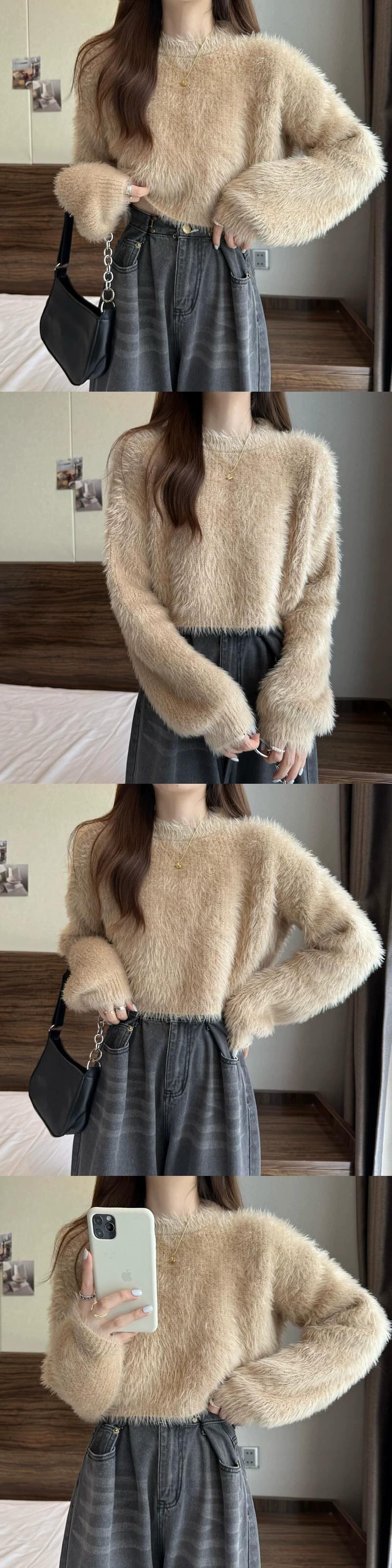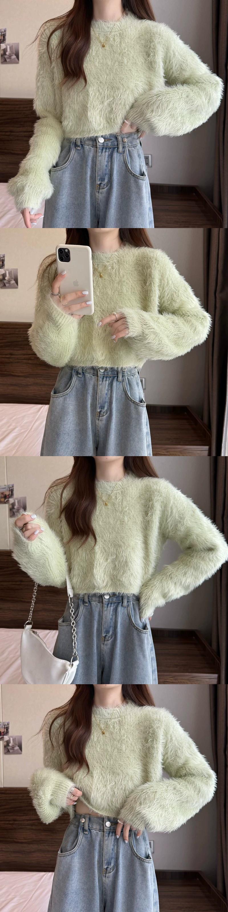 ピンクモヘアセーター女性秋と冬 2023 新しいルーズアウターウェア小さなハイウエストショートニットトップ ハイウェスト オータム 秋物 ウィンター 冬物 7460022510721865 | framboise21