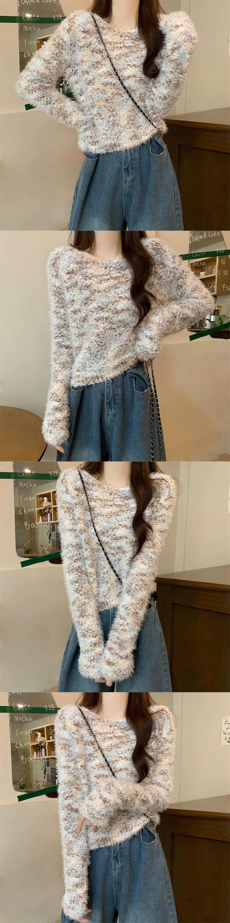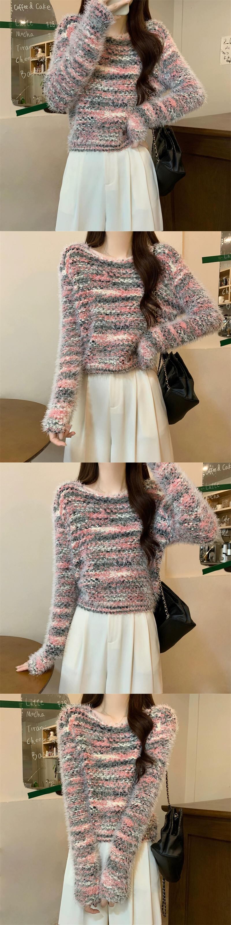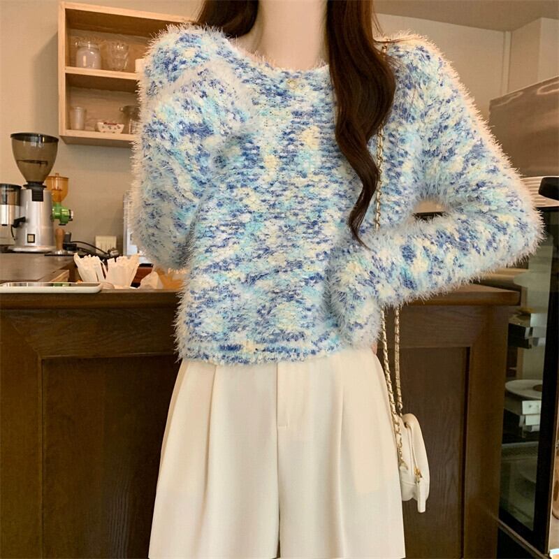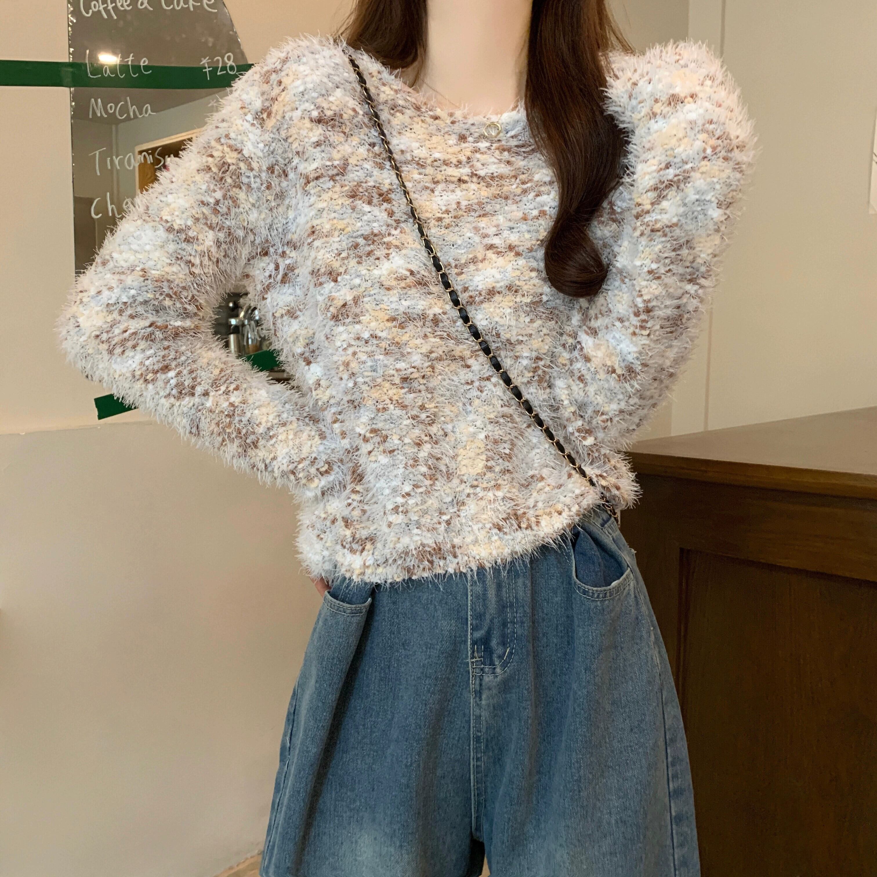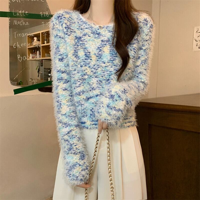 カラフルなモヘアの柔らかいワックス状のセーターの女性、秋と冬のレトロなデザイン、ゆったりとしたアウターウェア、スリムなプルオーバー長袖セーター ロング オータム 秋物 ウィンター 冬物 7460012075090255 | framboise21
