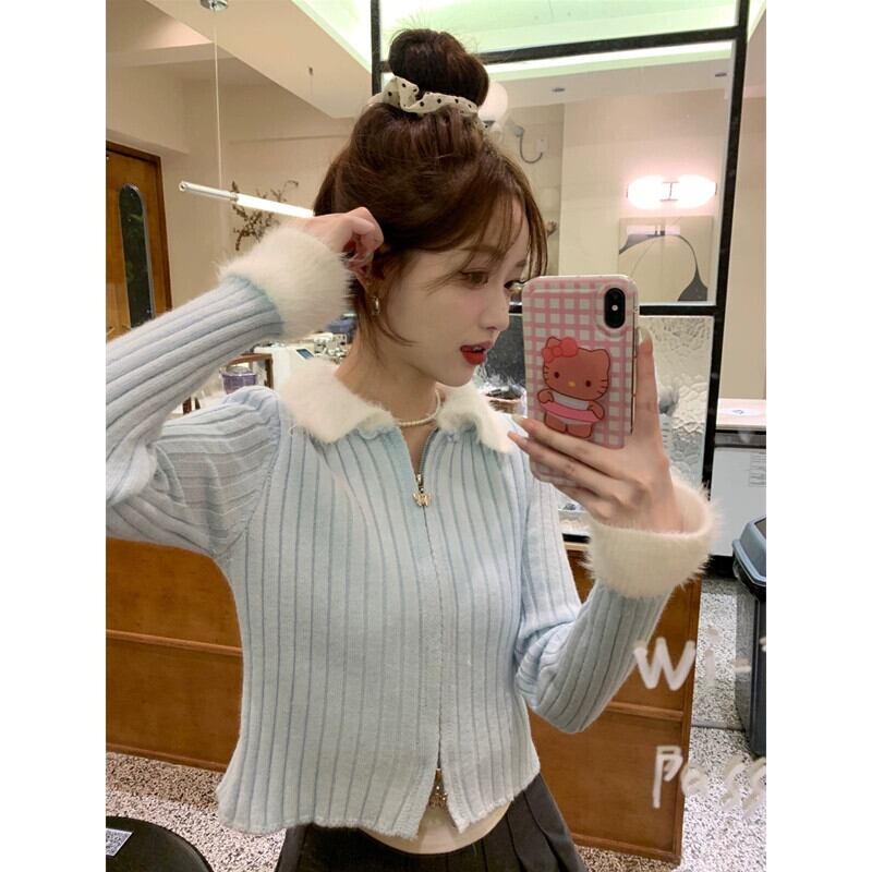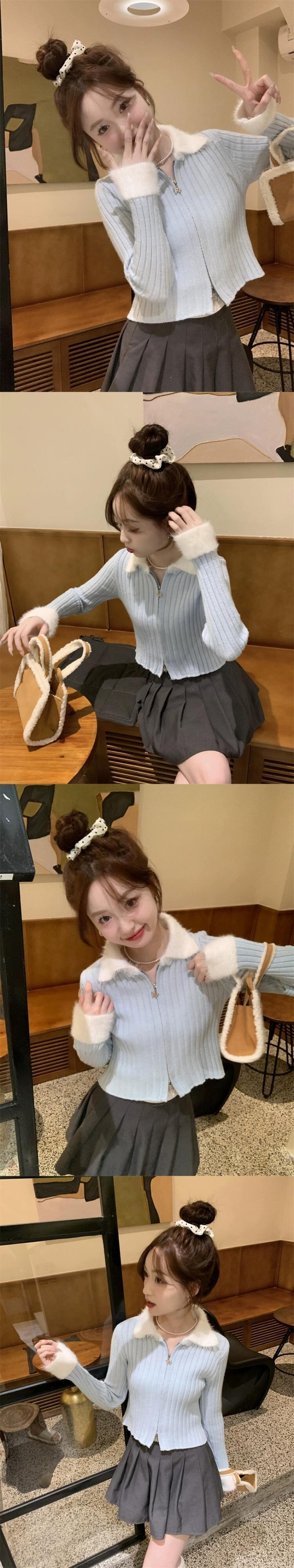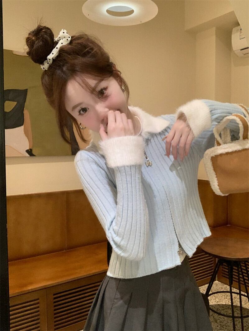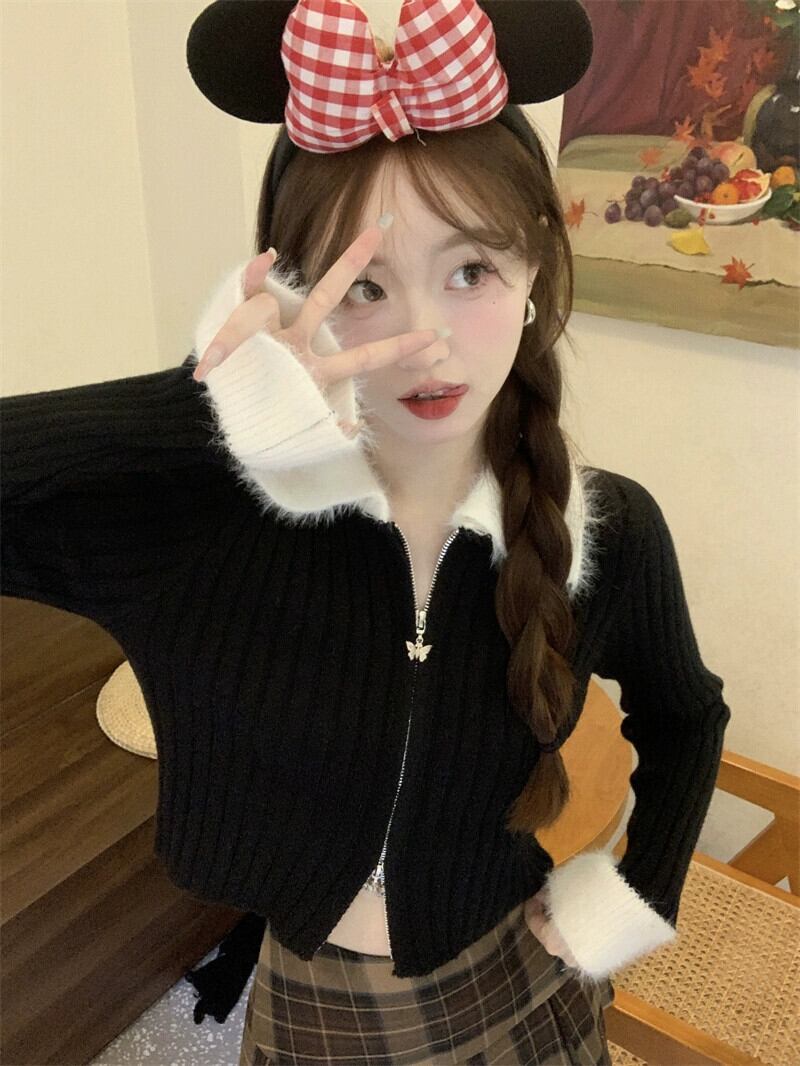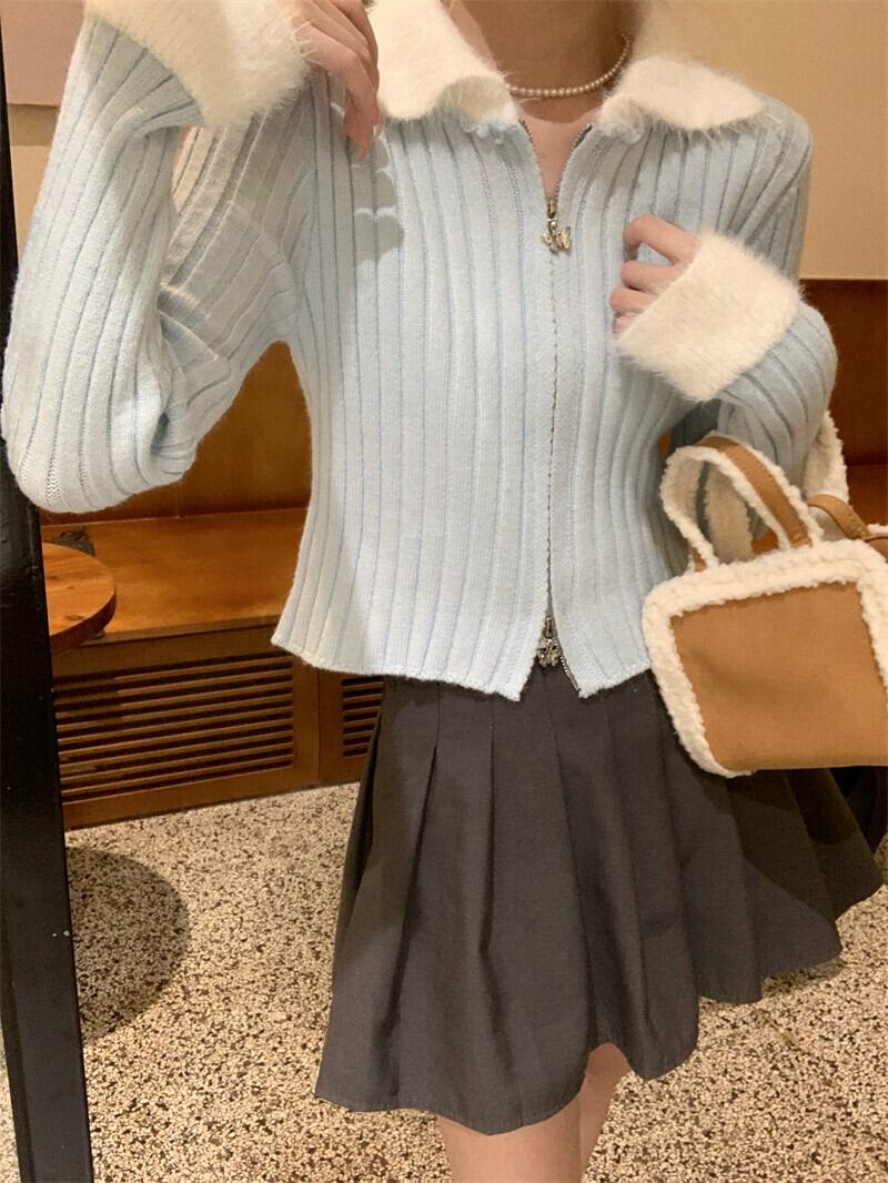 秋と冬のジッパー付きショートニットカーディガンジャケットレディース、小さなスリムフィットとスリムなアウターポロカラー長袖セーター ロング レッド オータム 秋物 ウィンター 冬物 7460084222125150 | framboise21