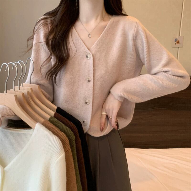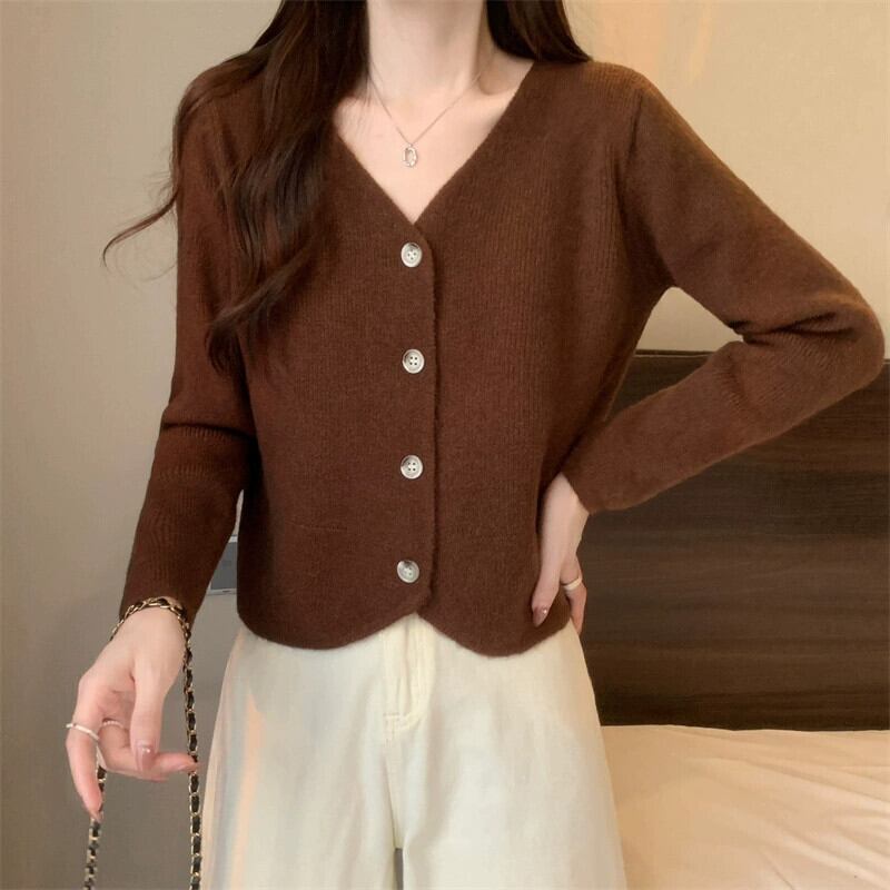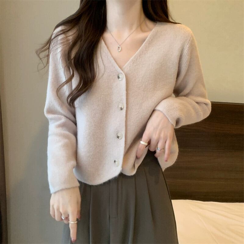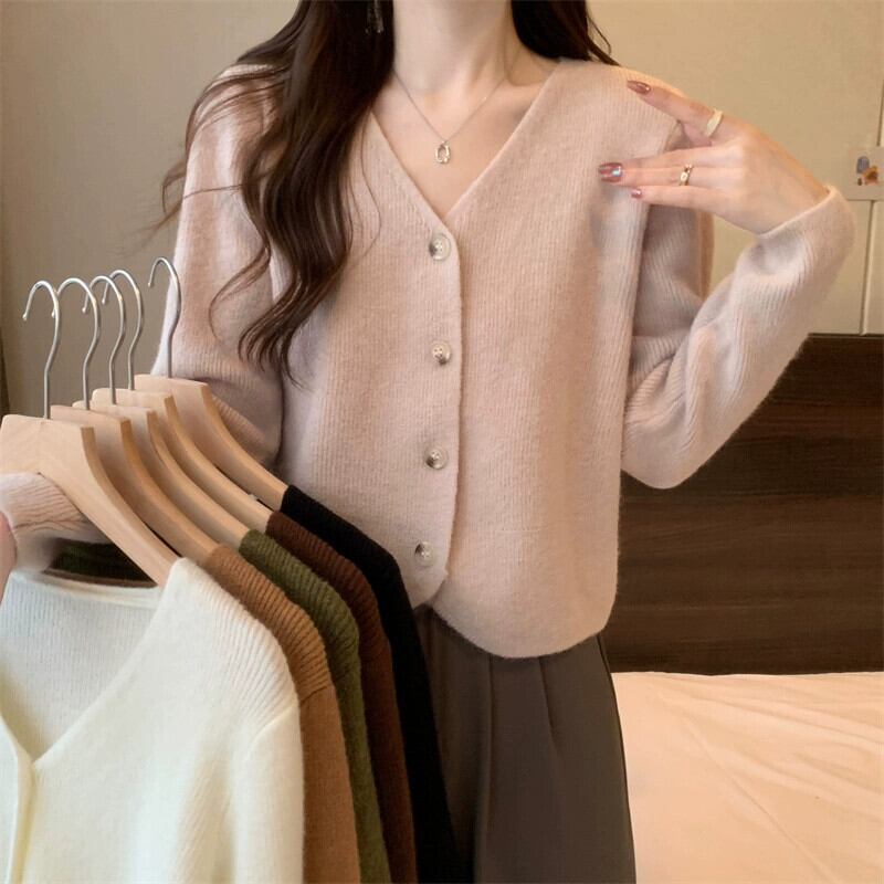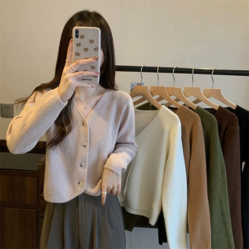 秋と冬のショートカーディガンセータージャケットレディース、小さくてスタイリッシュなアウターウェア、ゆったりと多用途のVネック長袖セーター ロング オータム 秋物 ウィンター 冬物 7460041857068020 | framboise21