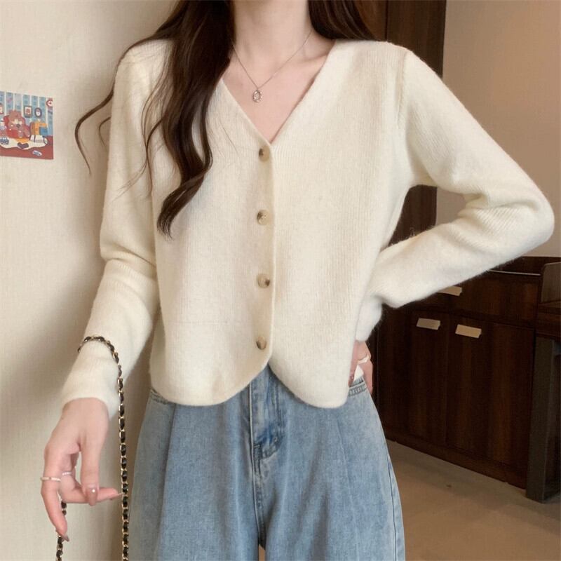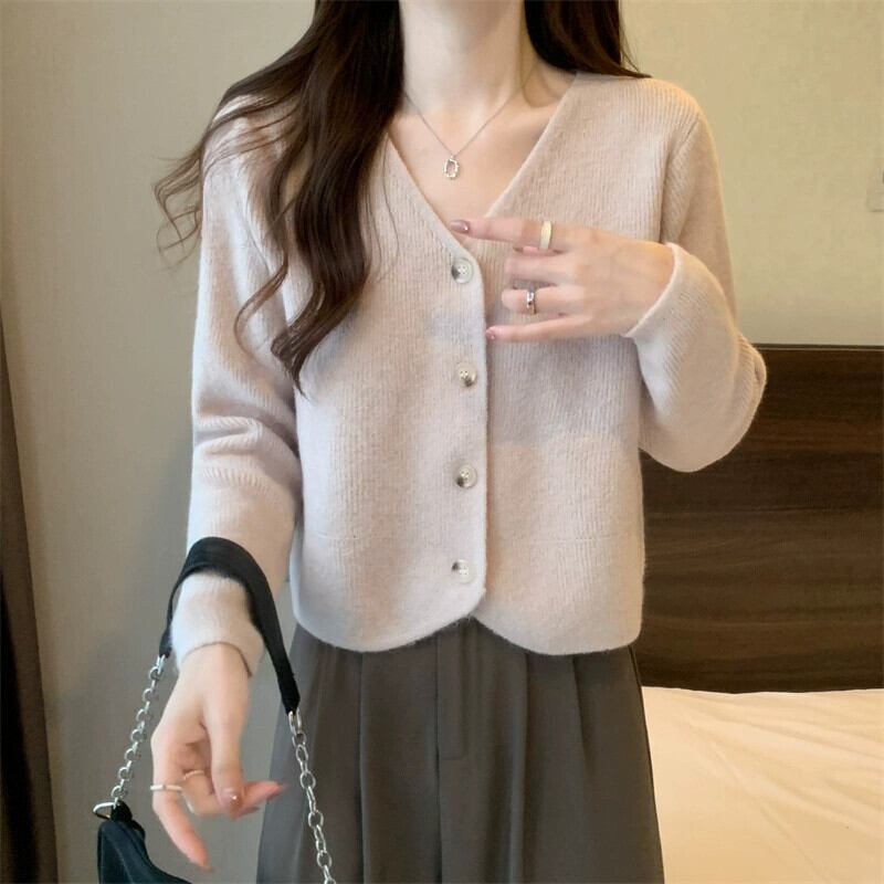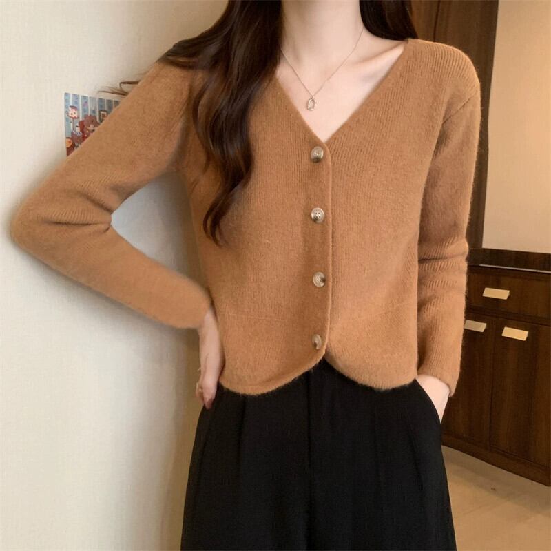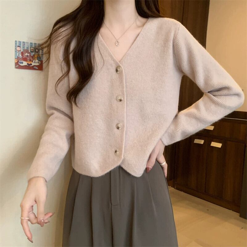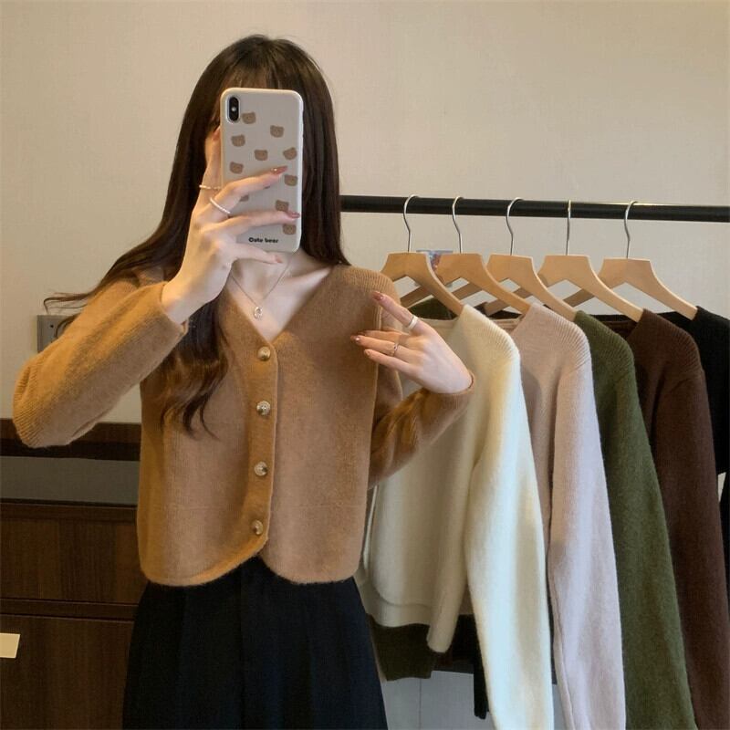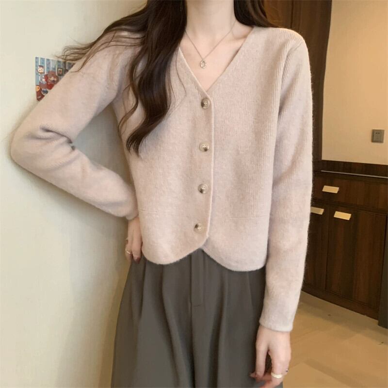 秋と冬のショートカーディガンセータージャケットレディース、小さくてスタイリッシュなアウターウェア、ゆったりと多用途のVネック長袖セーター ロング オータム 秋物 ウィンター 冬物 7460041857068020 | framboise21