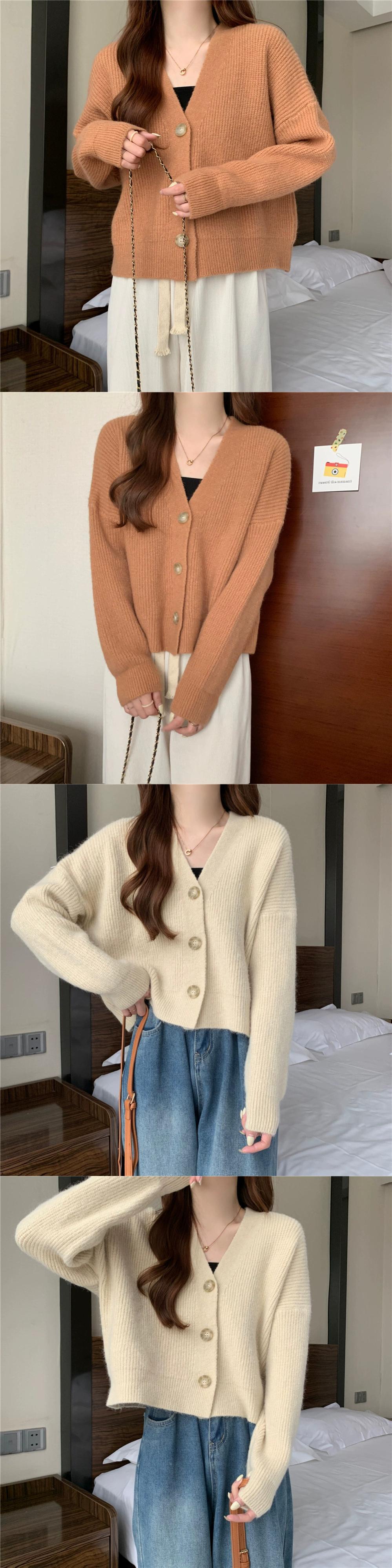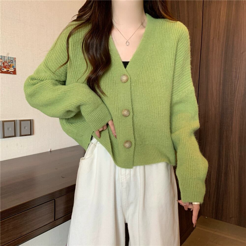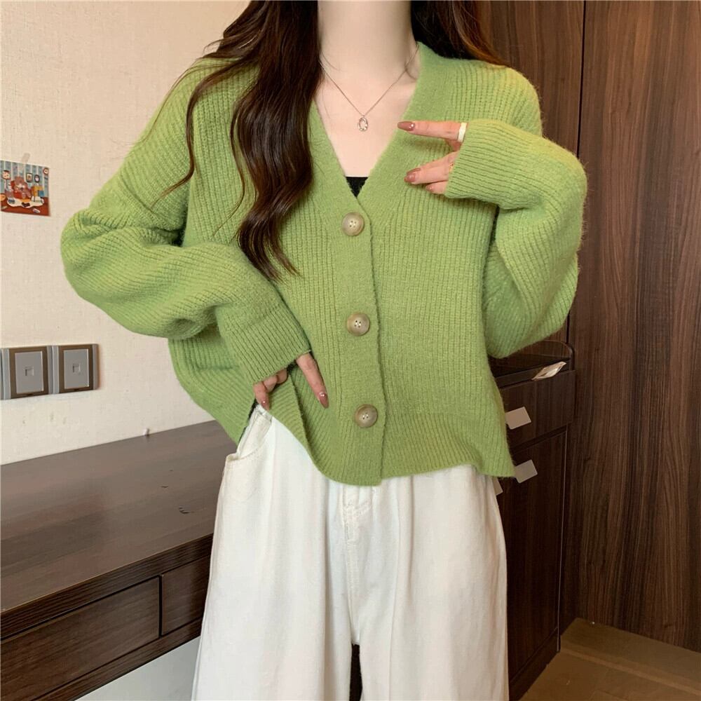 ソフトワックスのような太いラインショートカーディガンセータージャケット女性の秋と冬のスタイルルーズアウターウェア怠惰なグリーン V ネックセーター オータム 秋物 ウィンター 冬物 Vネック 7460016870008934 | framboise21