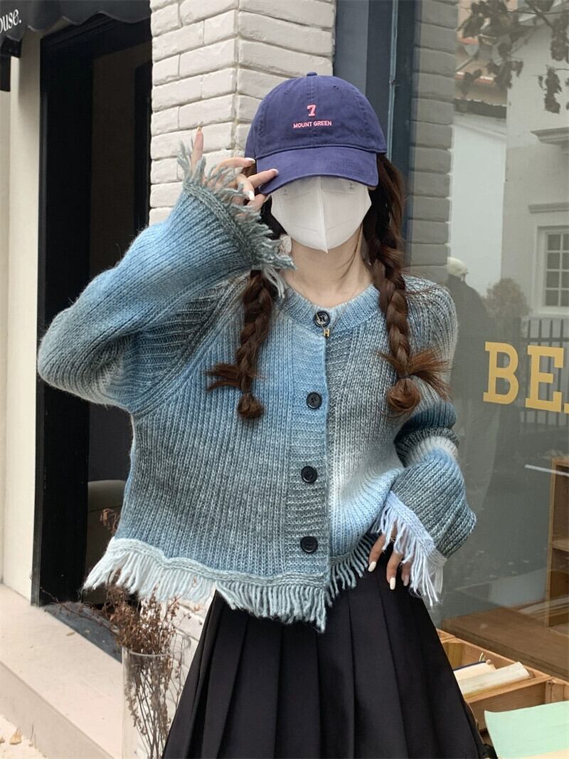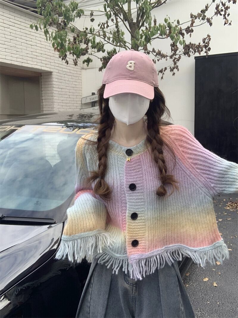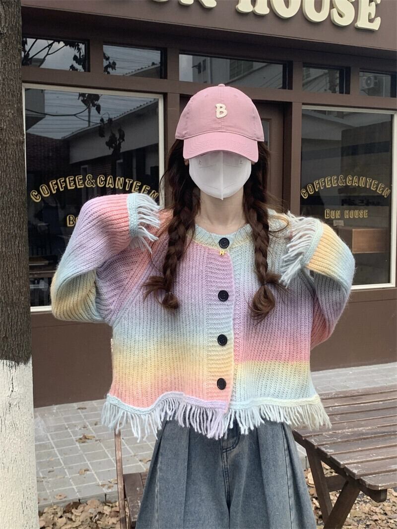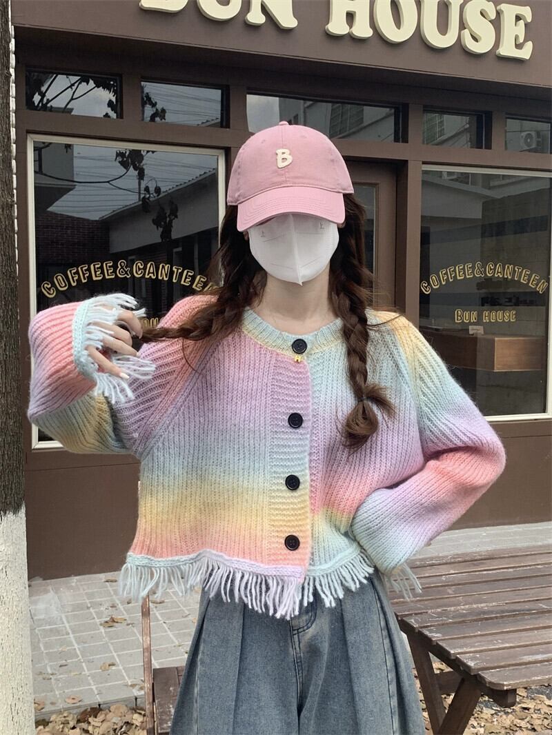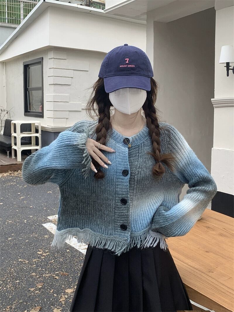 グラデーションショートテルカーディガンセータージャケット女性秋と冬のレトロなルーズアウターウェア怠惰な多目的長袖セーター ロング オータム 秋物 ウィンター 冬物 7460066232460387 | framboise21