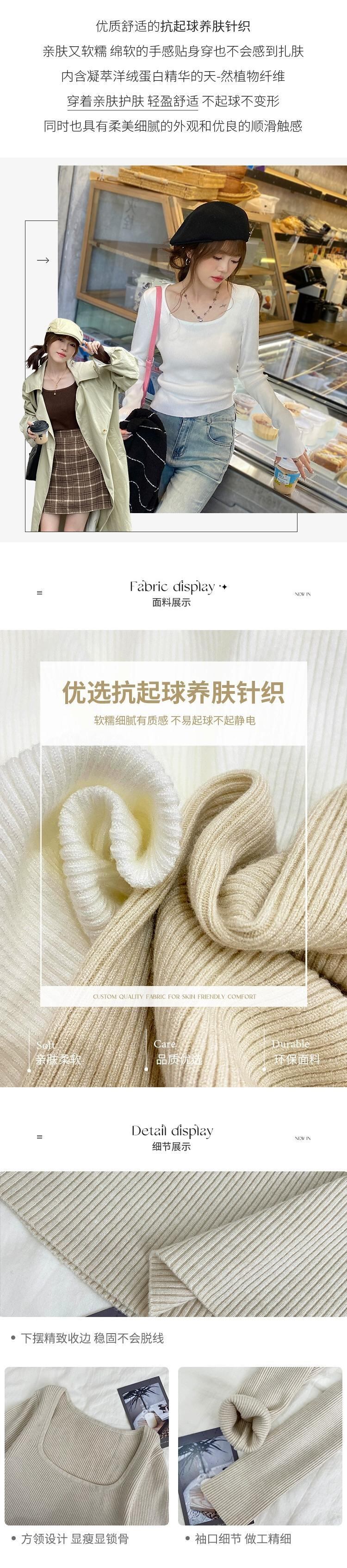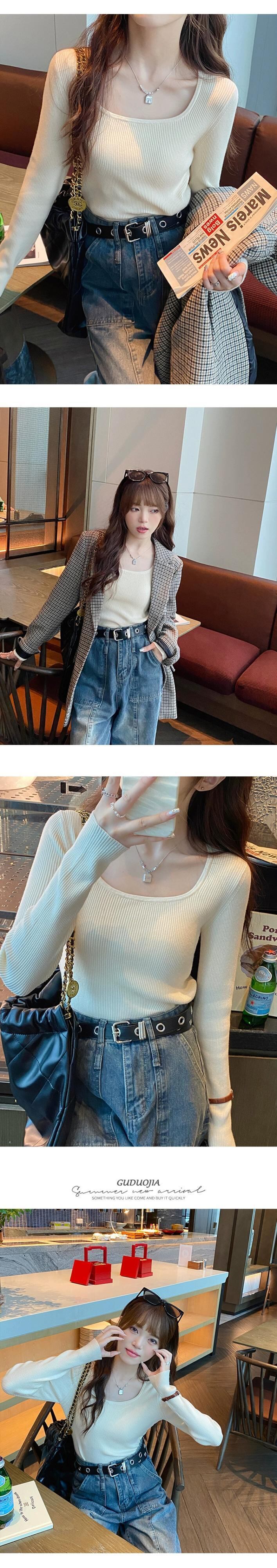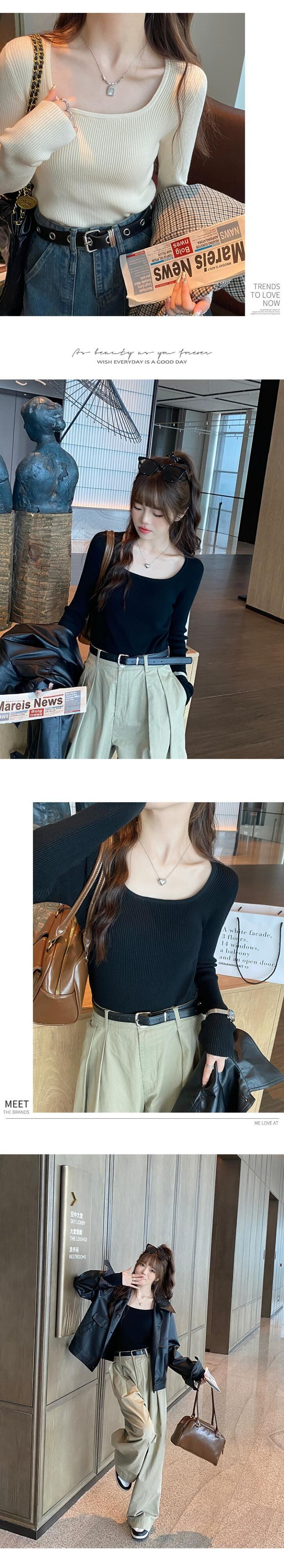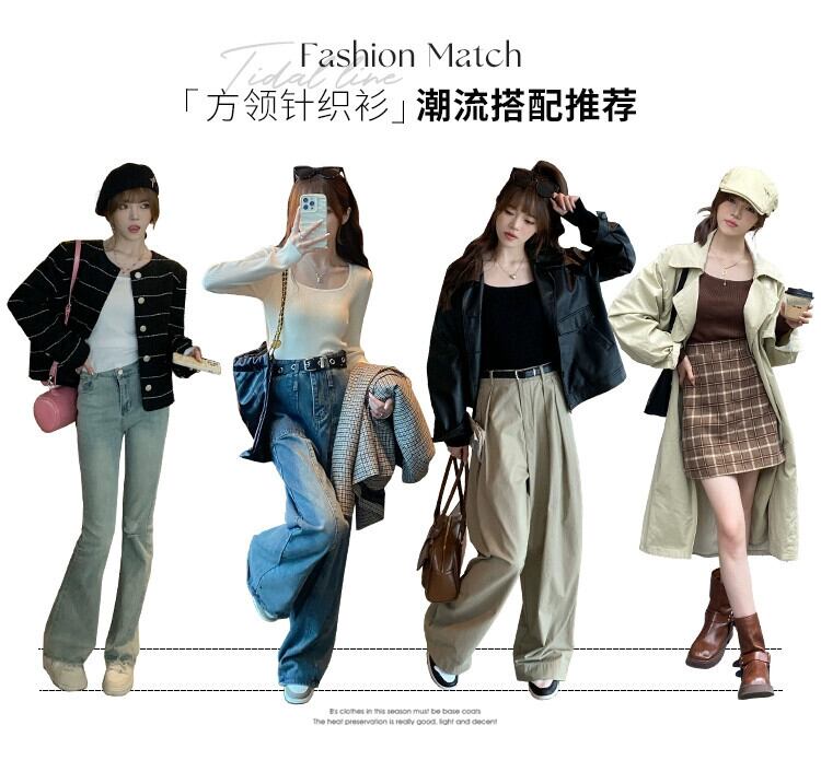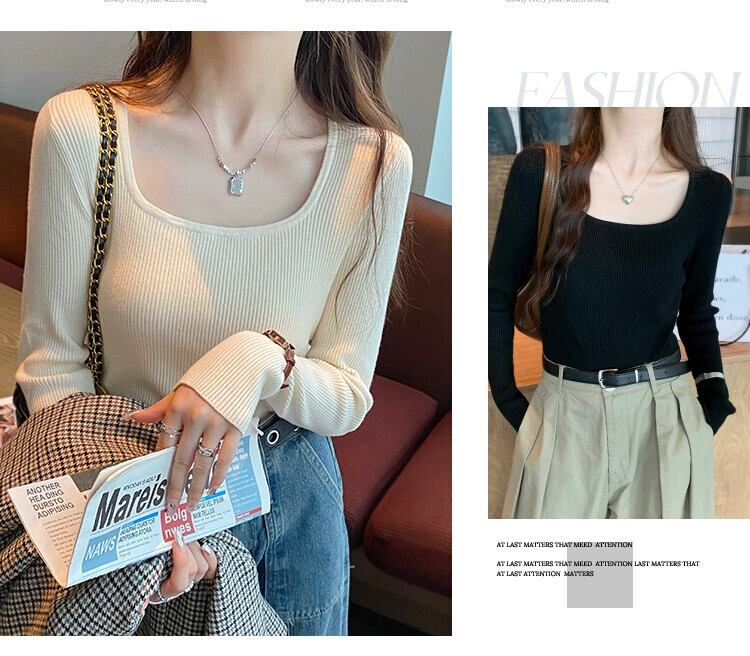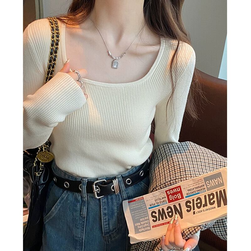 スクエアカラーボトリングシャツ 2023 新作レディース秋冬インナーウェアハイエンド、ウエスタンスタイル、スリムで多用途な長袖ニットセーター ロング オータム 秋物 ウィンター 冬物 スクウェア 7460076367581362 | framboise21
