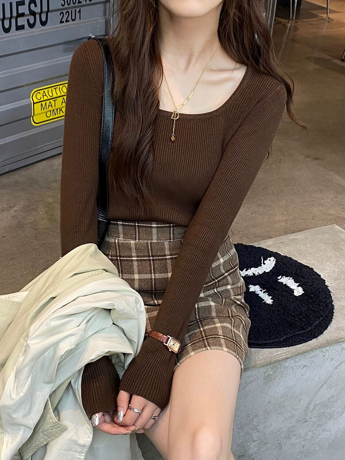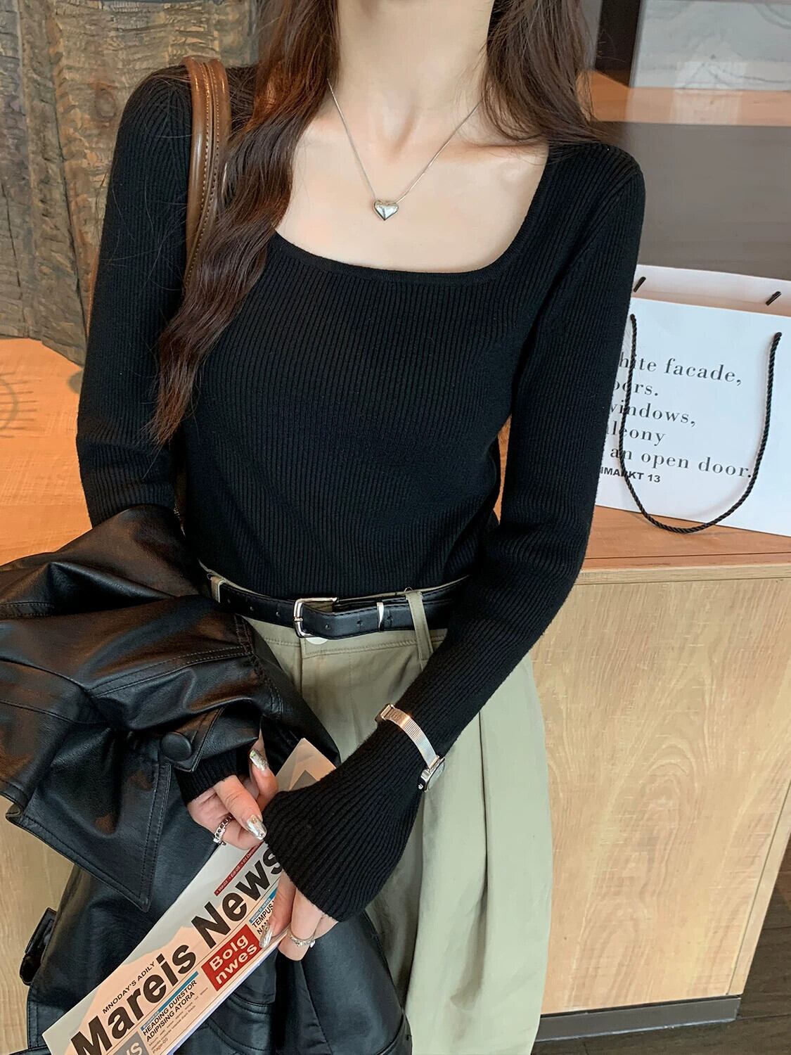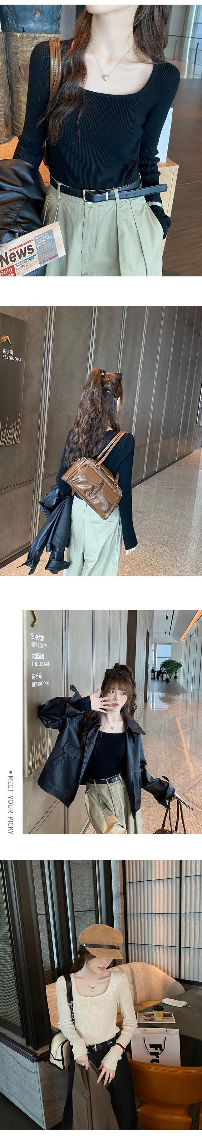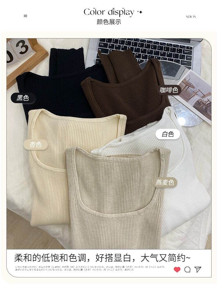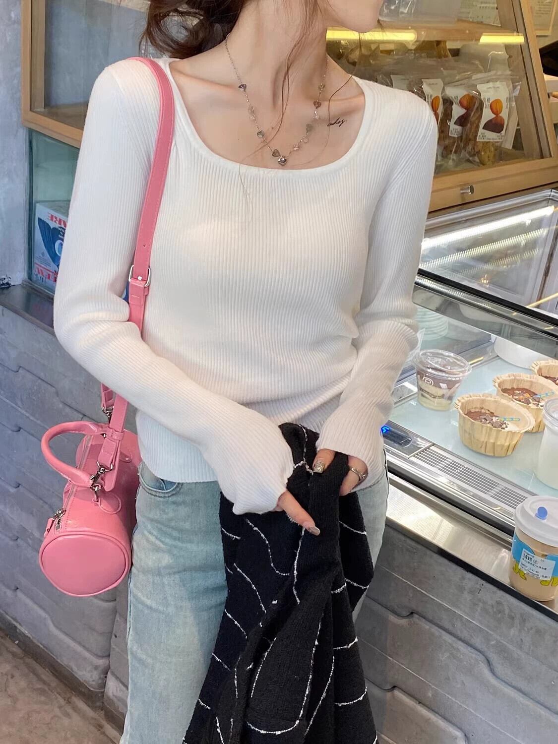 スクエアカラーボトリングシャツ 2023 新作レディース秋冬インナーウェアハイエンド、ウエスタンスタイル、スリムで多用途な長袖ニットセーター ロング オータム 秋物 ウィンター 冬物 スクウェア 7460076367581362 | framboise21