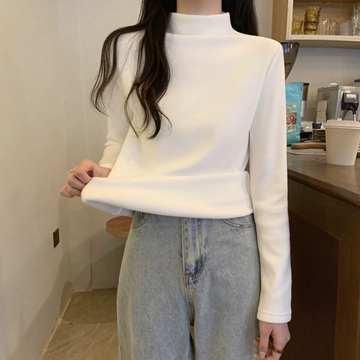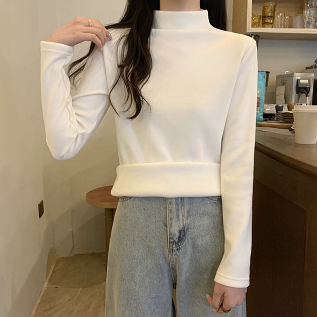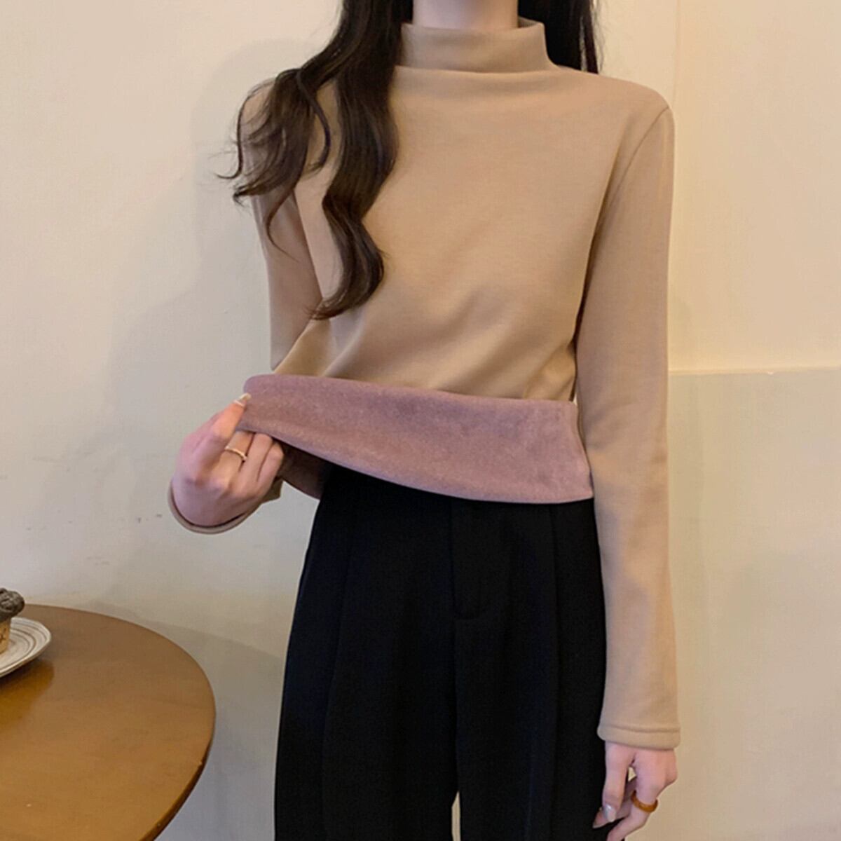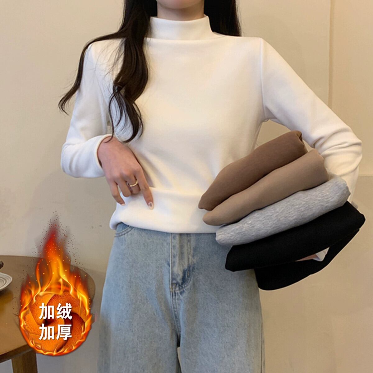 ベルベット肥厚ボトムシャツ 2023 新しい女性の秋冬スタイルファッショナブルでスリムフィットインナーハーフタートルネック長袖 T シャツ ロング オータム 秋物 ウィンター 冬物 Tシャツ 7460090604289638 | framboise21