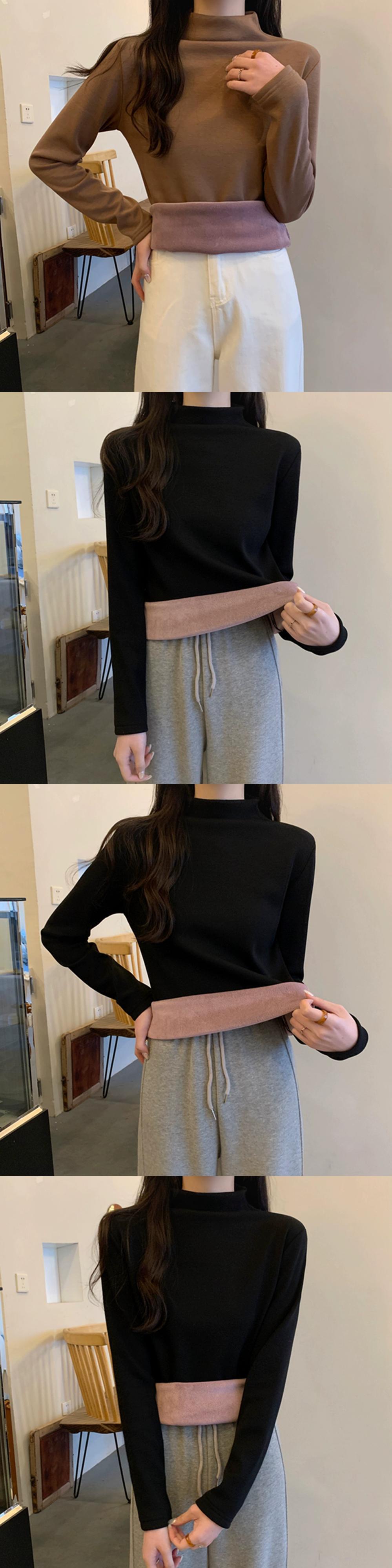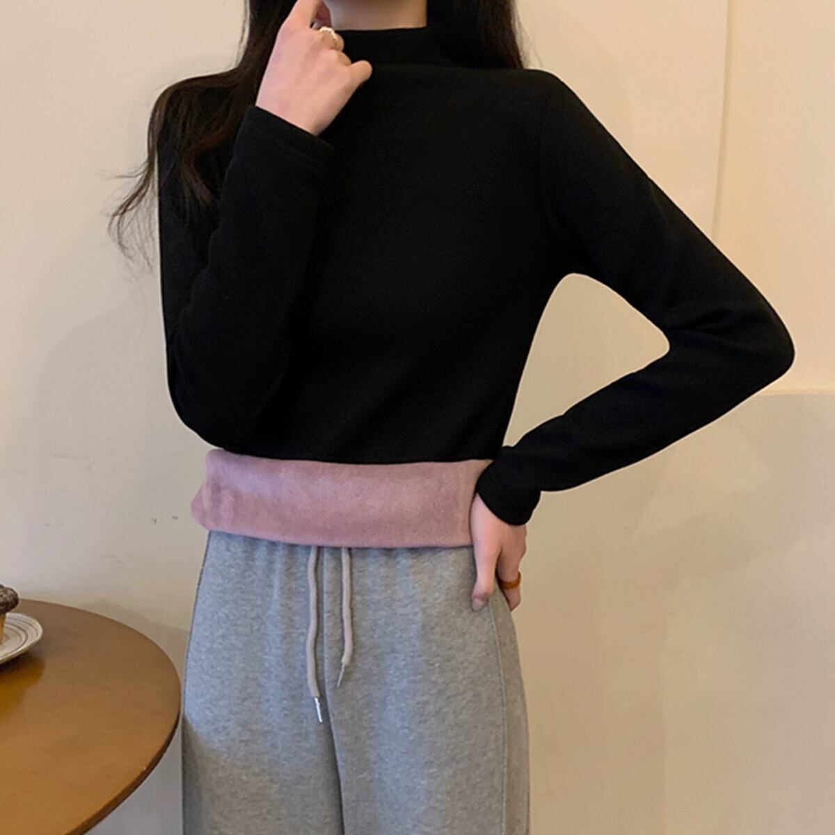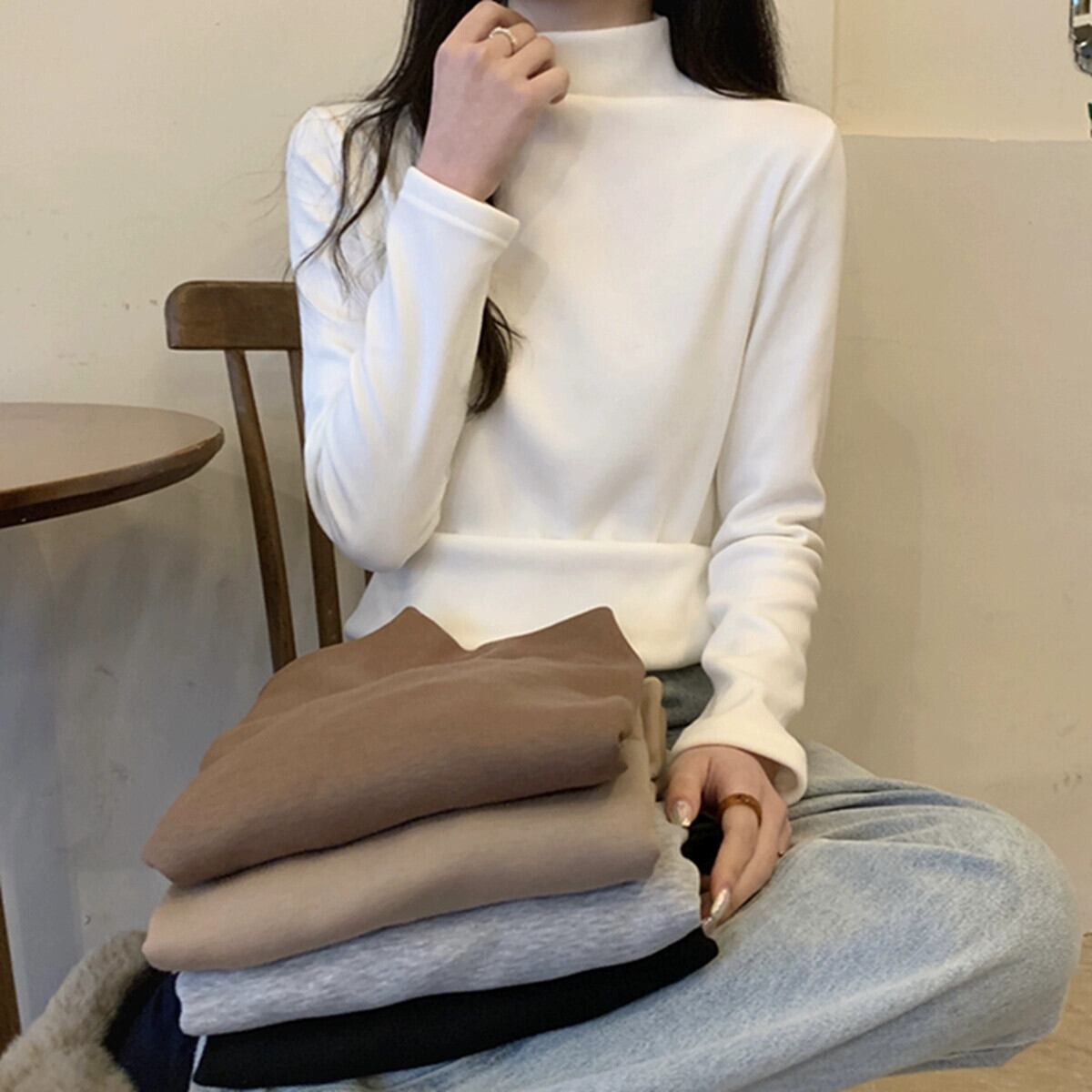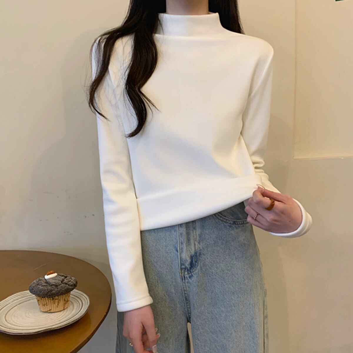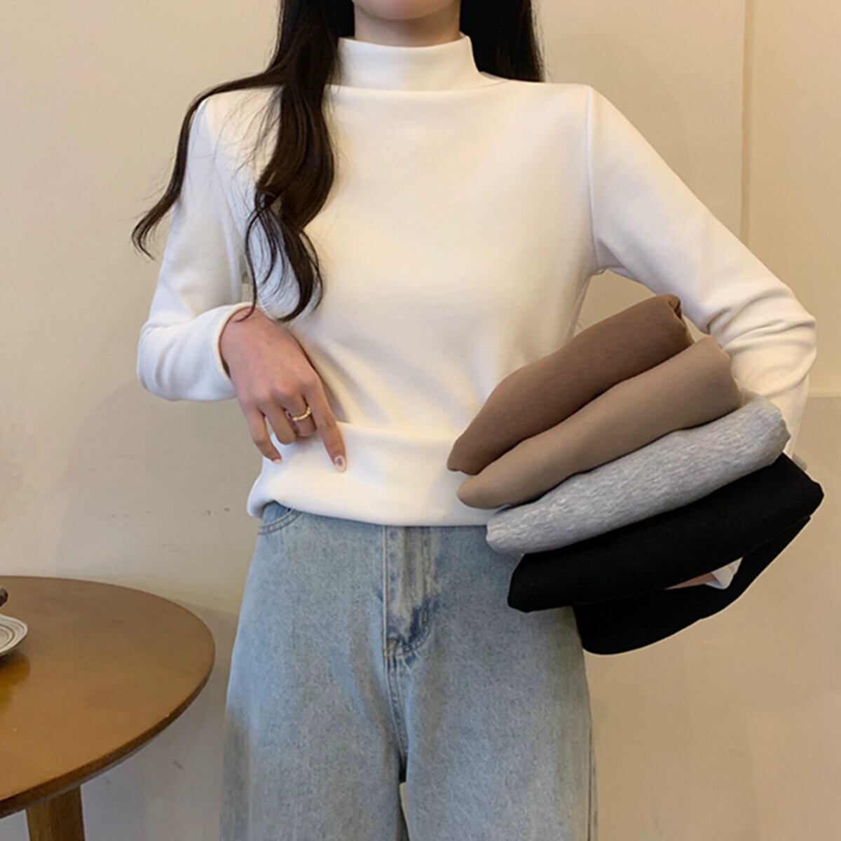 ベルベット肥厚ボトムシャツ 2023 新しい女性の秋冬スタイルファッショナブルでスリムフィットインナーハーフタートルネック長袖 T シャツ ロング オータム 秋物 ウィンター 冬物 Tシャツ 7460090604289638 | framboise21
