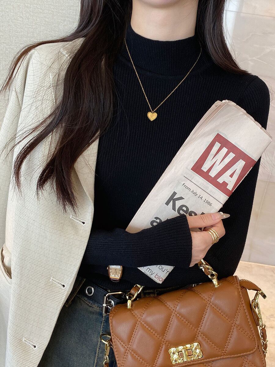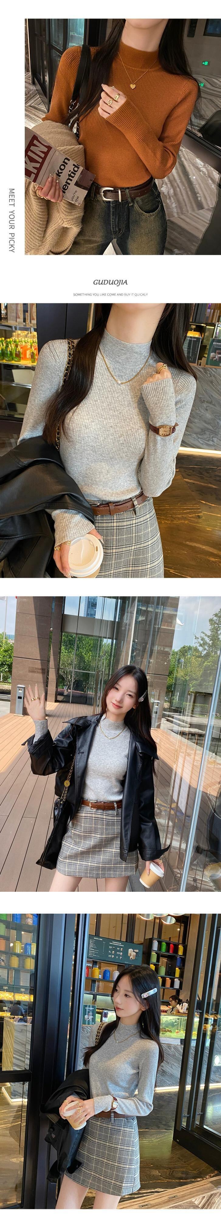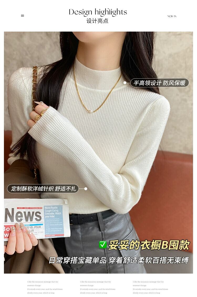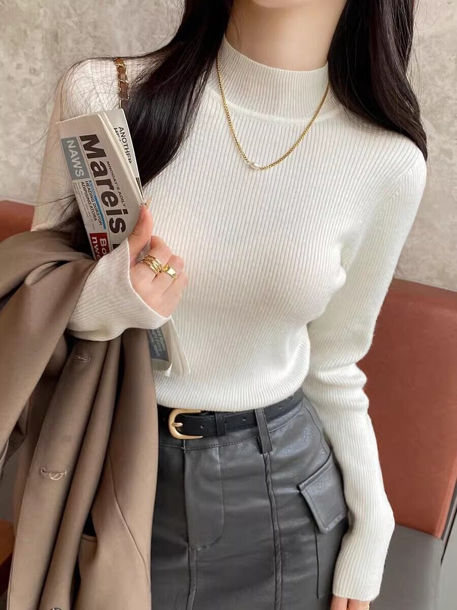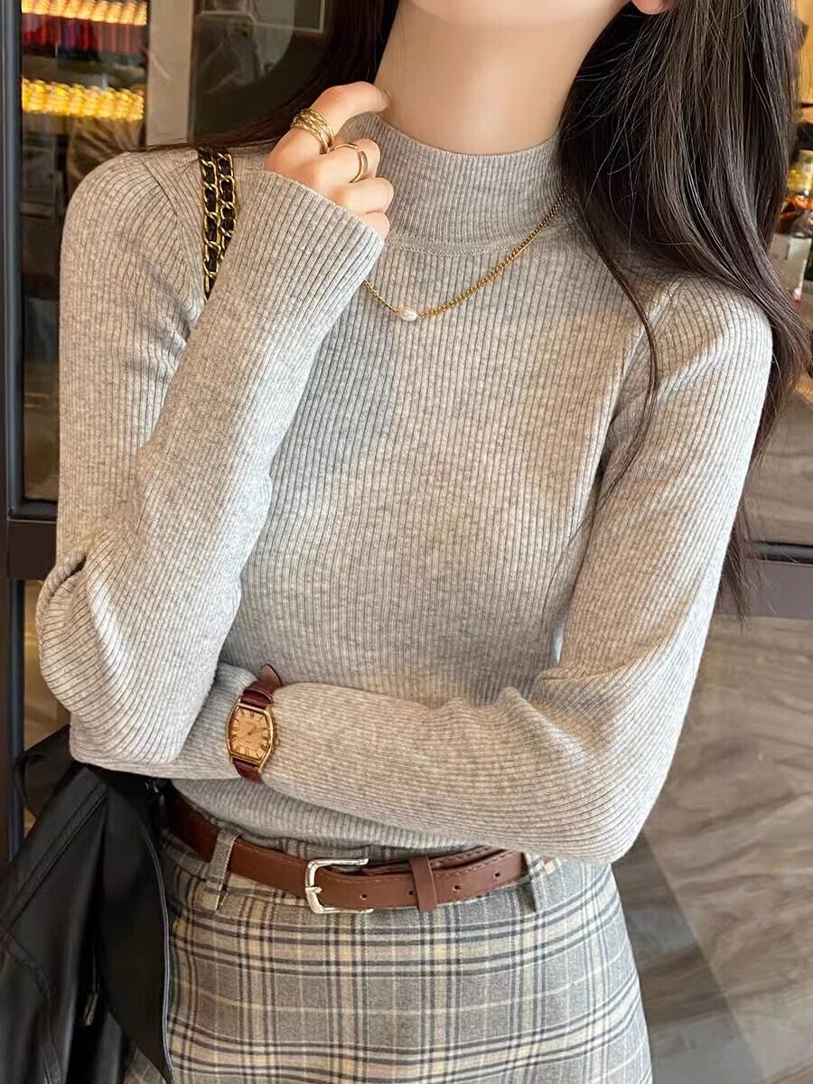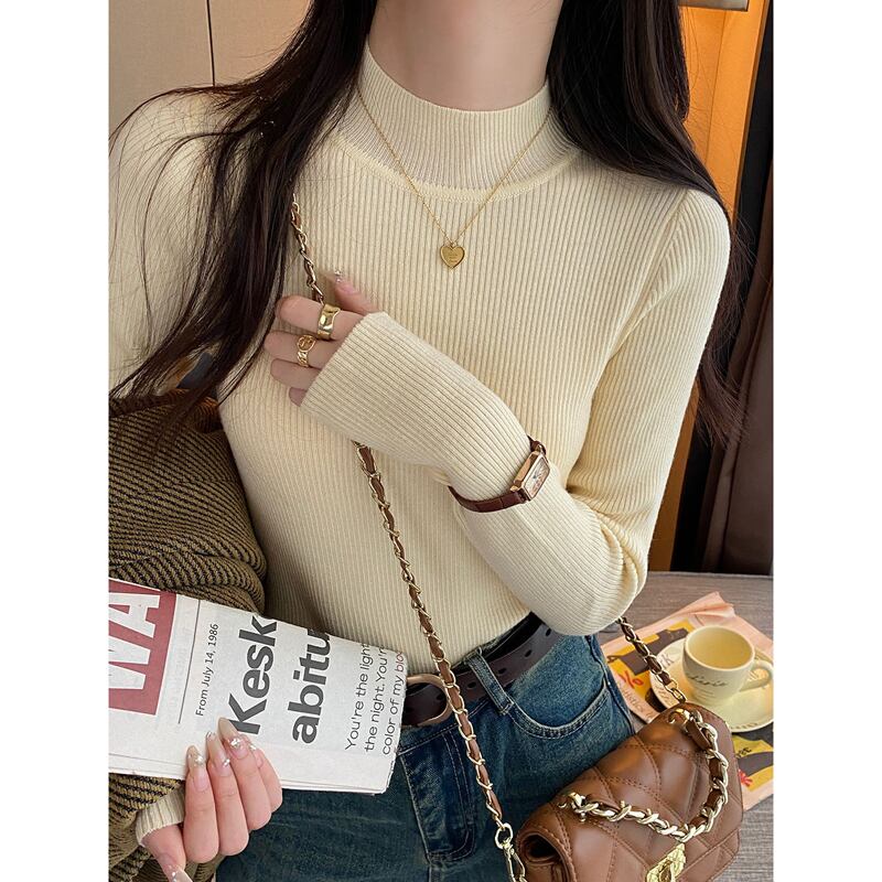 秋と冬のハーフタートルネックニットボトムシャツレディース、スリムな長袖トップが付いたファッショナブルでファッショナブルなミッドカラーセーター ロング オータム 秋物 ウィンター 冬物 7460041457749528 | framboise21
